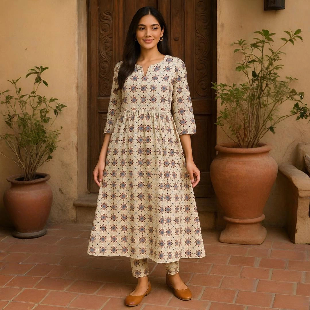 Sister : Fabric: 100% Cotton Sleeve : Sleeveless Neckline: Round-Neck Kurta Length: Knee Length Closure: Pull...