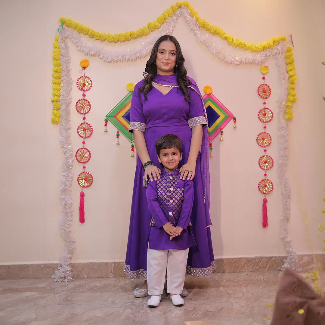 Purple Riza Anarkali Suit Set With Matching Kurta Payjama Mother and Son Twin Set