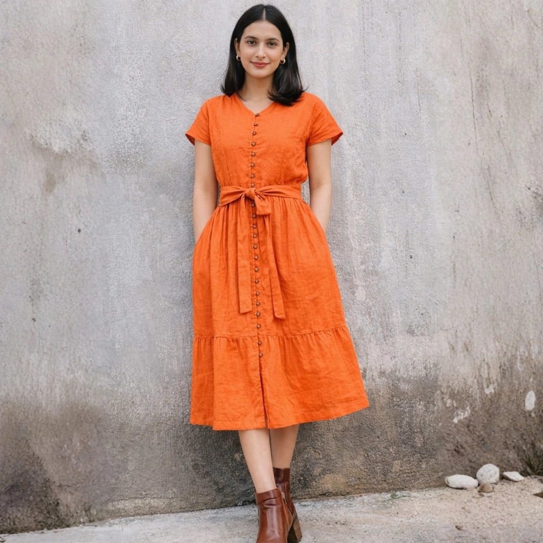 Cute and Cozy: Matching Mommy and Me Orange Printed Tiered Dress Duo