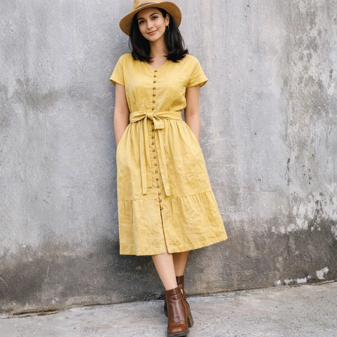 Women : Fabric: 100% Cotton Sleeve : Small Sleeves Neckline: V - Neck Closure: Button ...