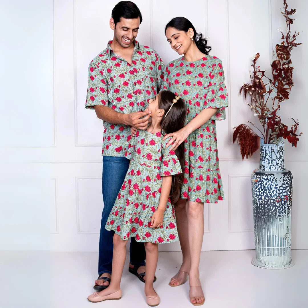 Green & Red Tiered Dress With Matching Shirt Couple Twin Set