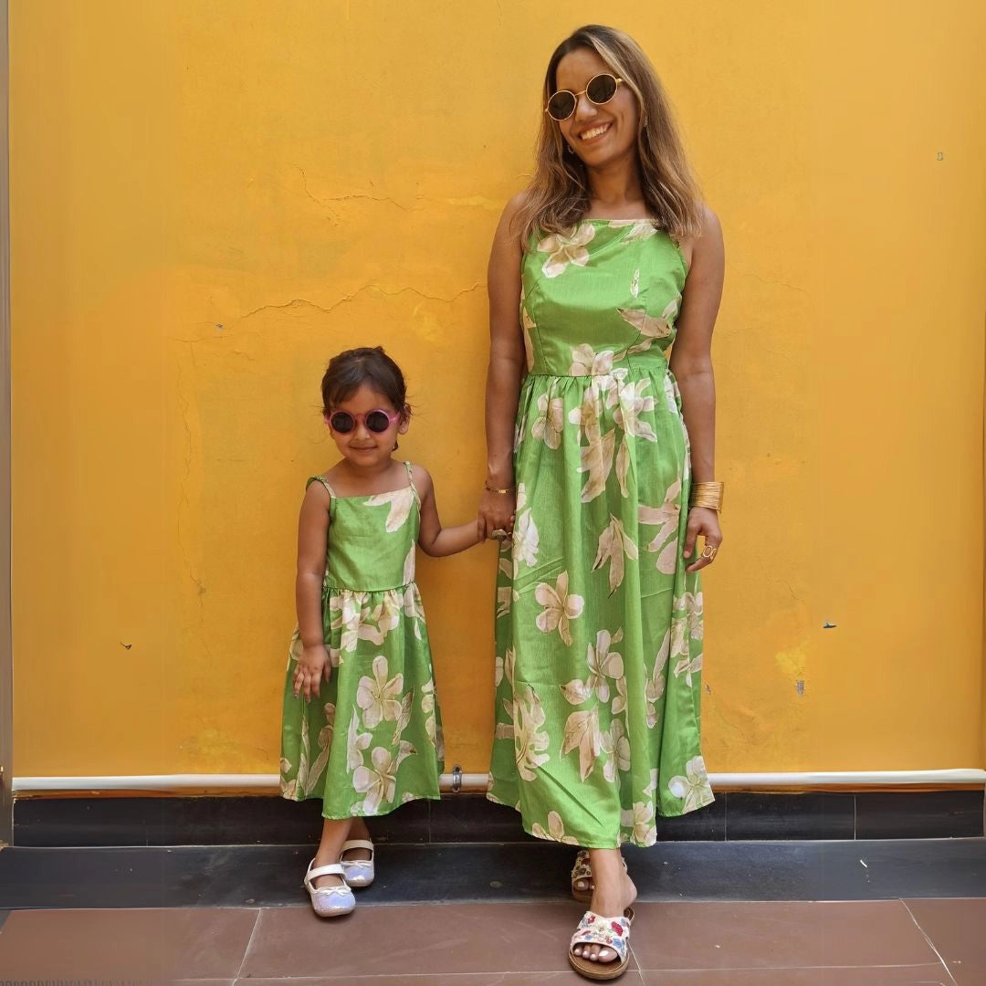 Green Floral Maxi Dress For Mom And Daughter Set