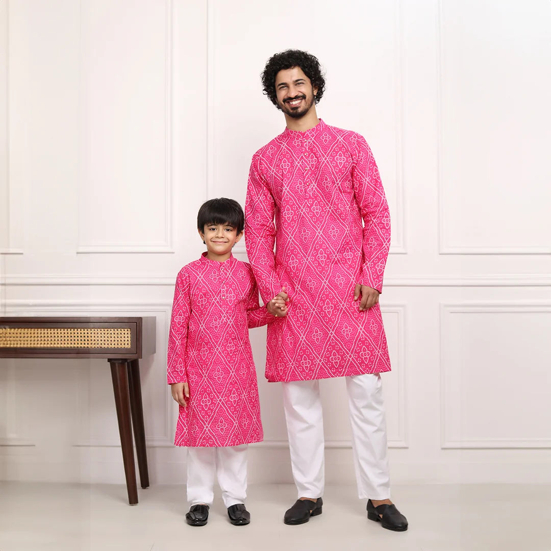 Like Father and Son : Matching Fuchsia Jaipuri Kurta Set for Father and Son