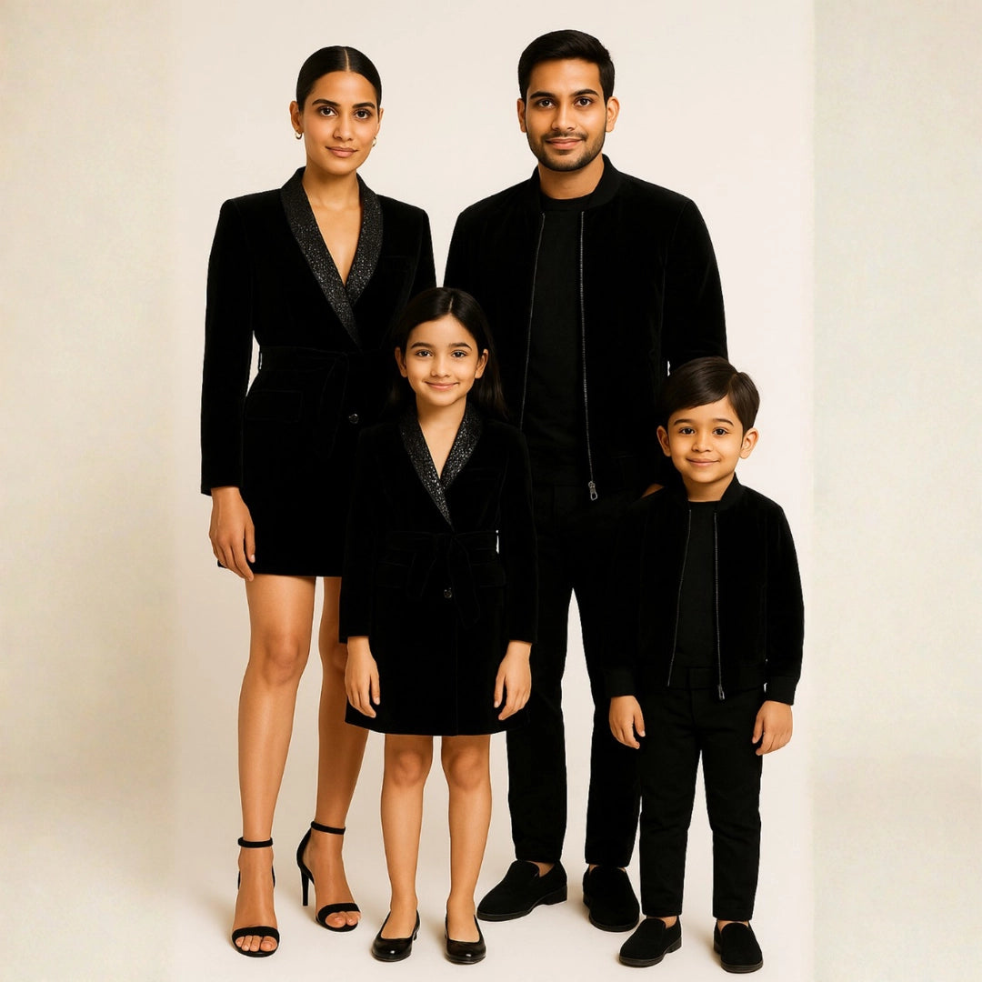 Matching Family Outfit: Black and White Gown with Sequins Kurta Pajama
