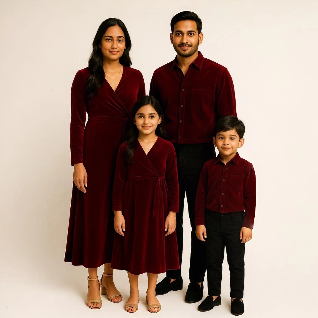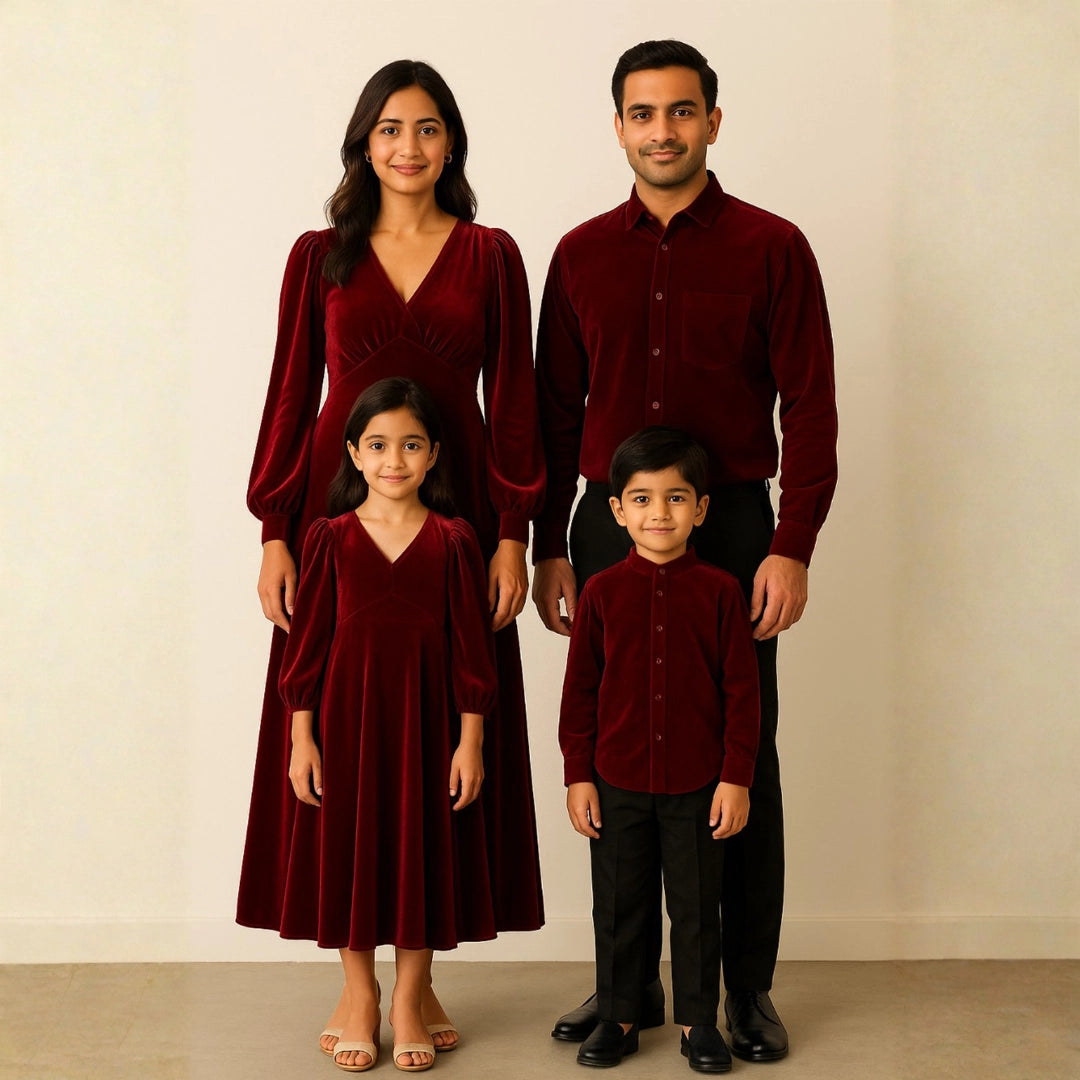 Rouge Matching Kurta Set – Family Pack (Men, Women & Kids)