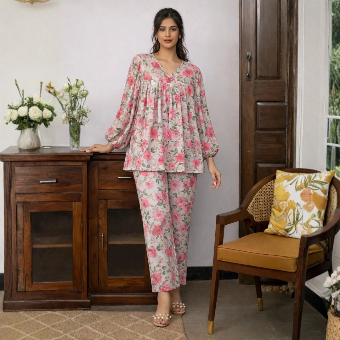 Pink Floral Co-ord Set For Women