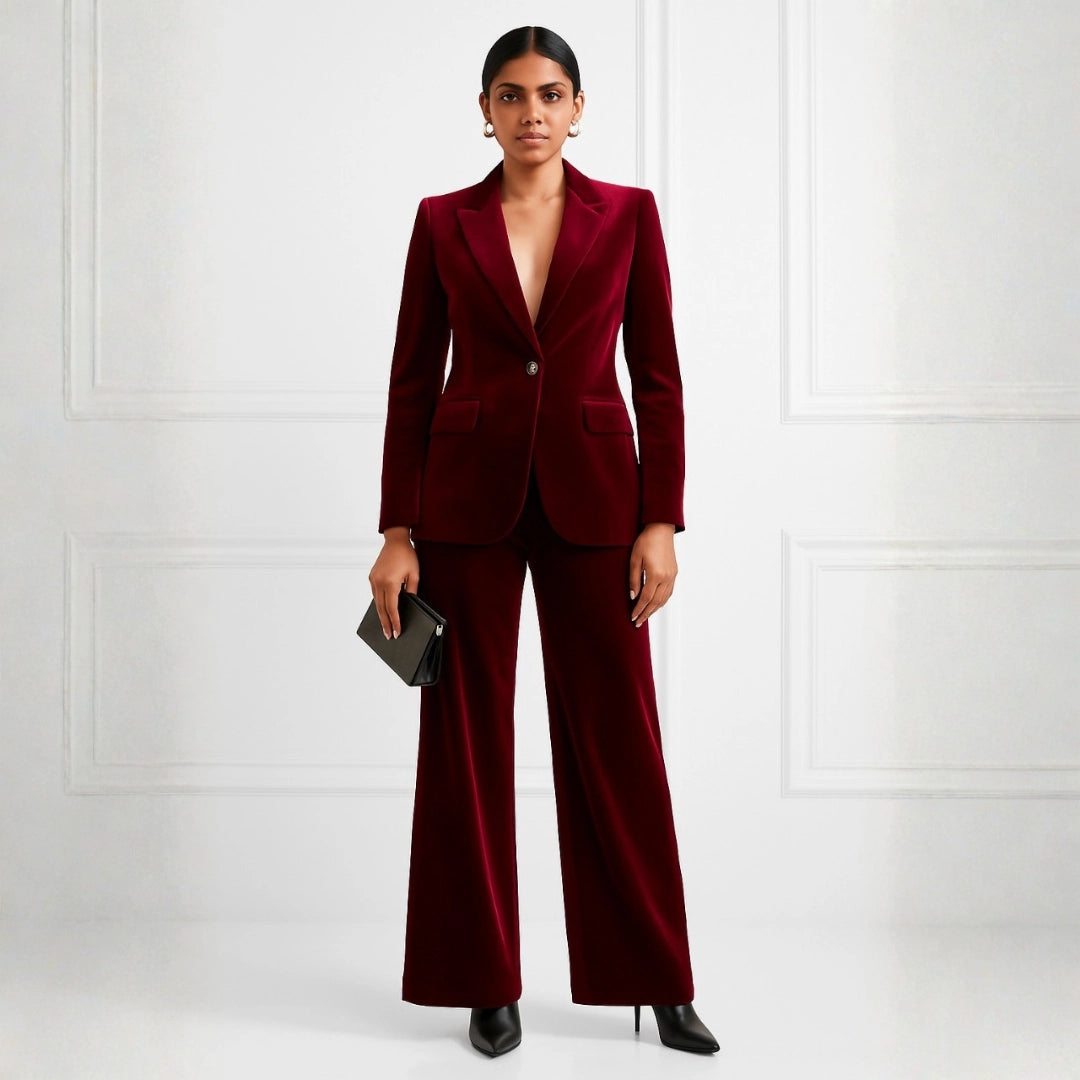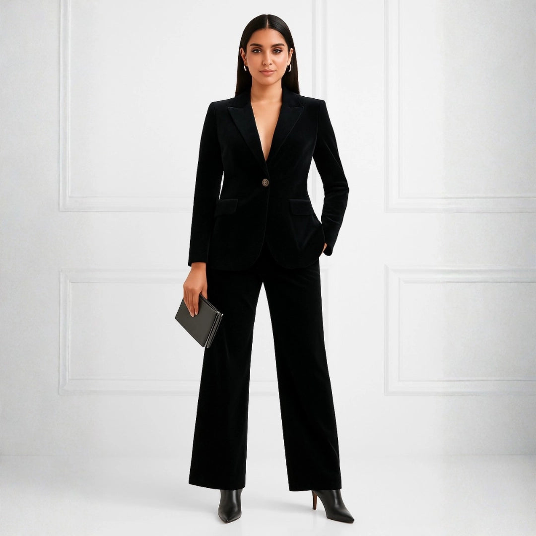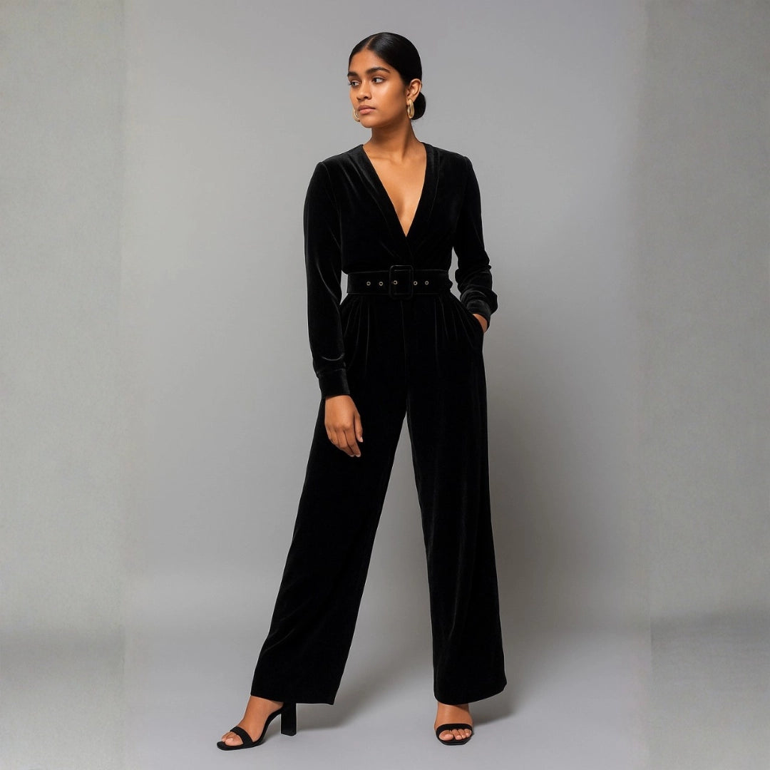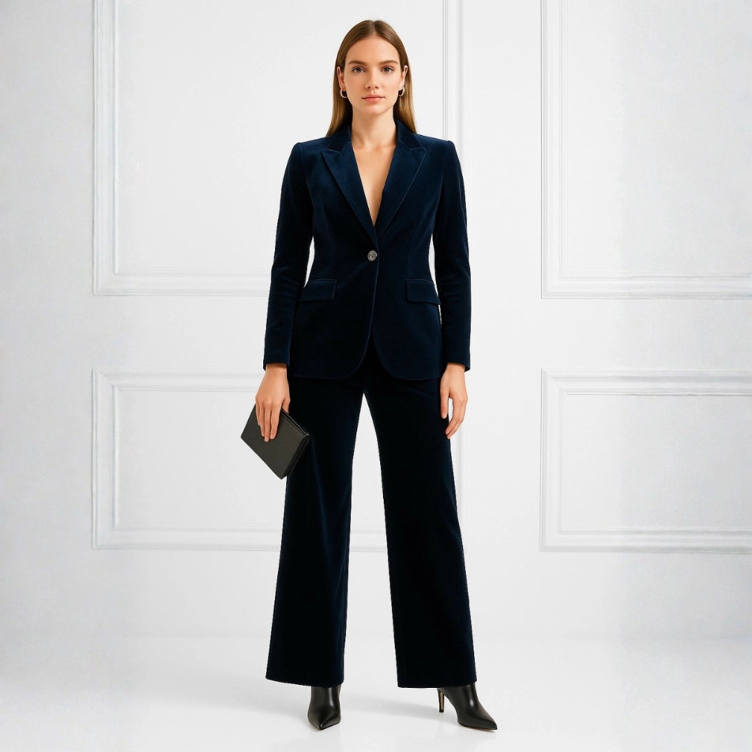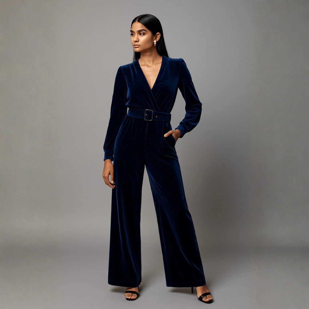 Navy Blue Luxe Velvet One-Piece Set For Women