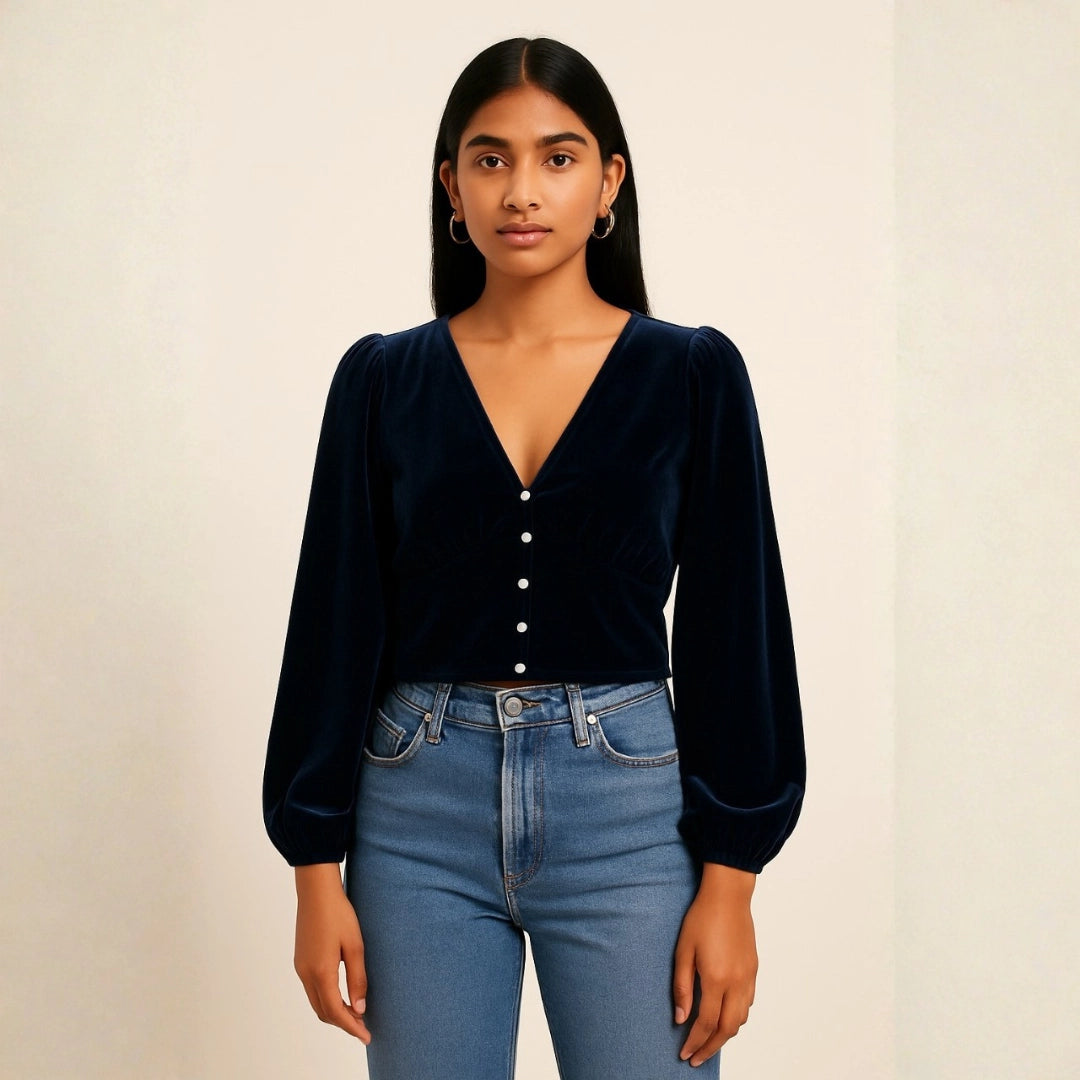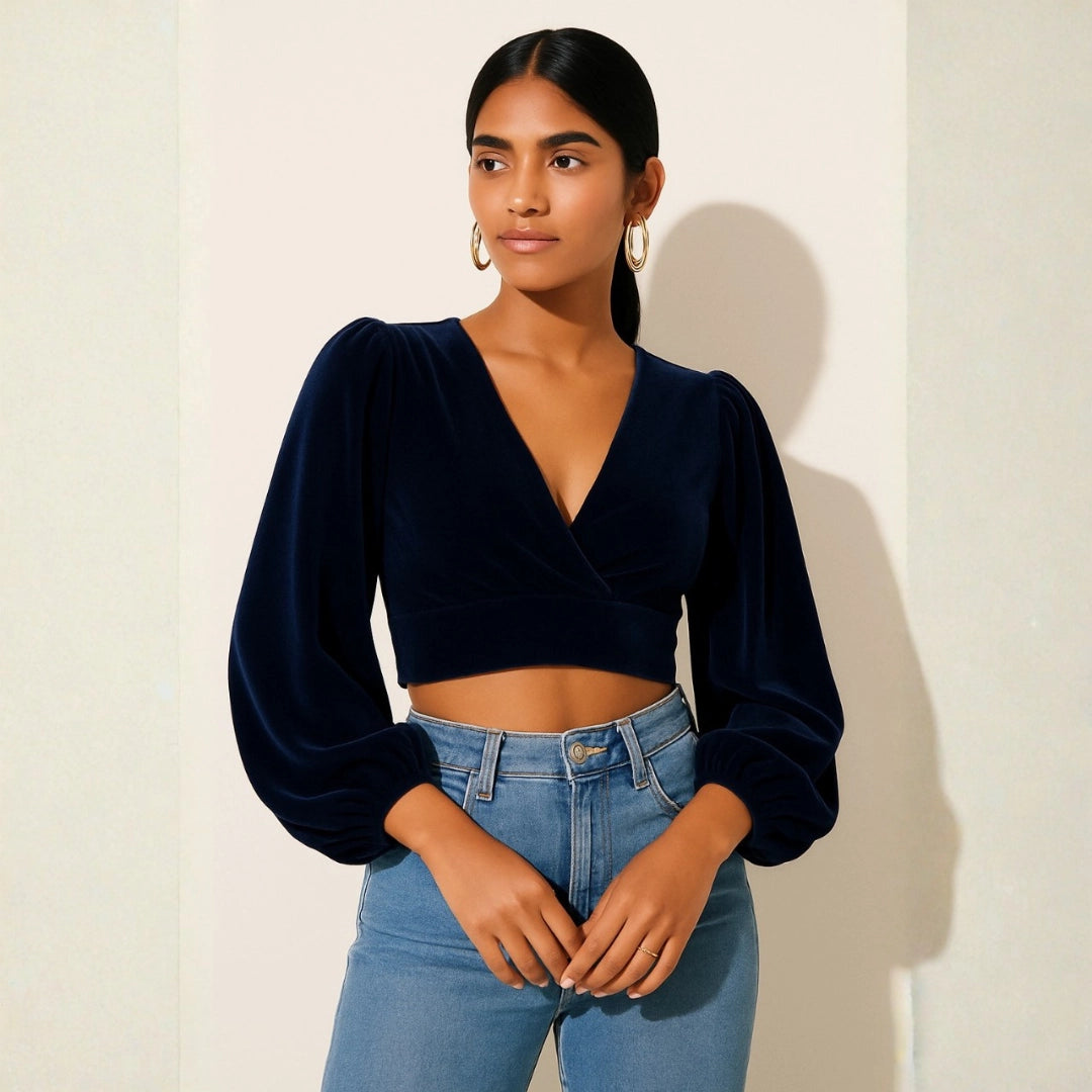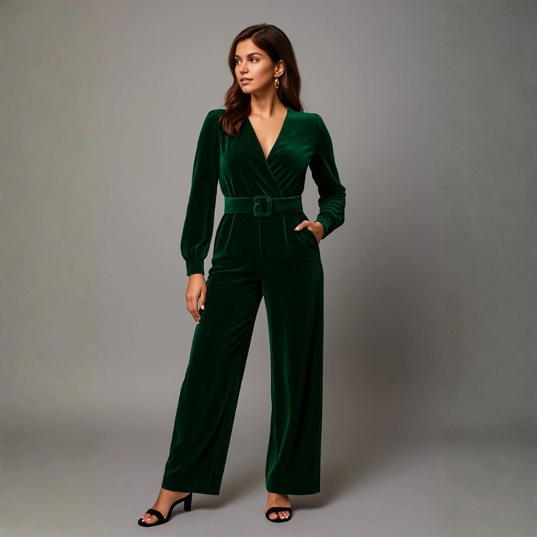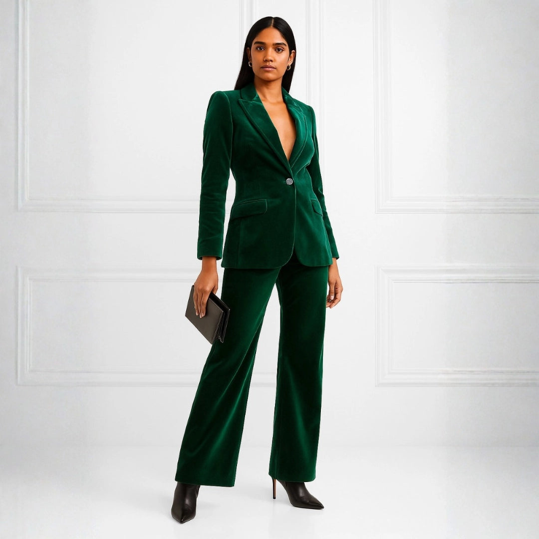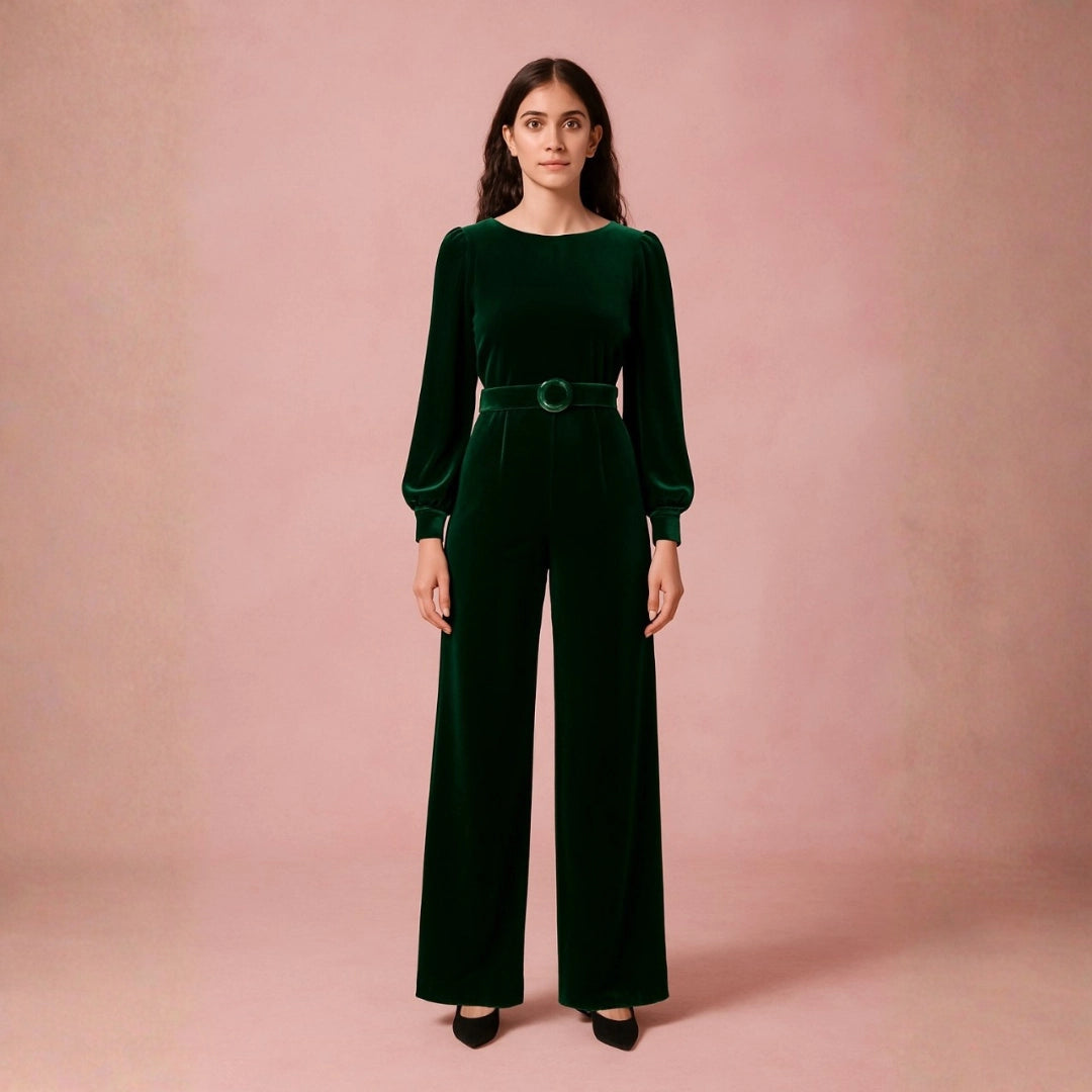 Navy Blue Luxe Velvet One-Piece Set For Women