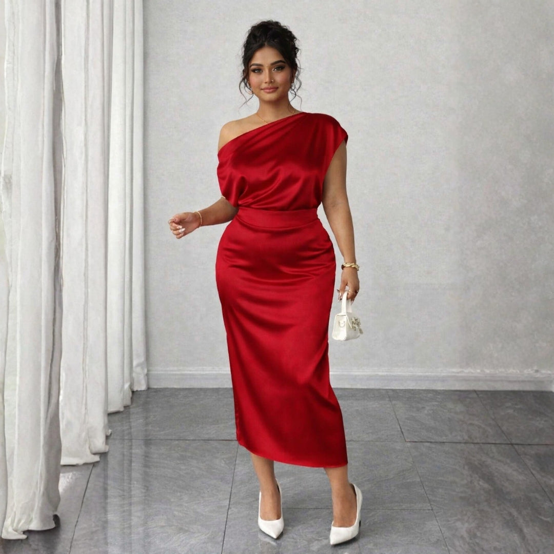 Women : Fabric: 100% Satin Sleeve : Sleevless Neckline: One-Shoulder Drape Closure: Pull On Quantity:...