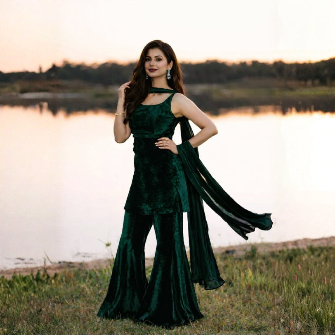 Women : Fabric: 100% Velvet Sleeve : Sleevless Neckline: Round - Neck Closure: Zipper (Kurta)...