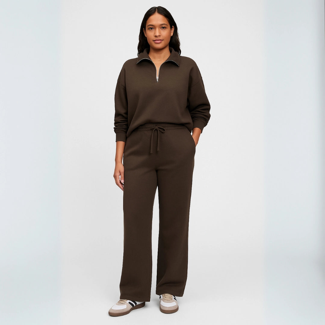 Casual Co-ord Set – Brown Half Zip Sweatshirt & Pants