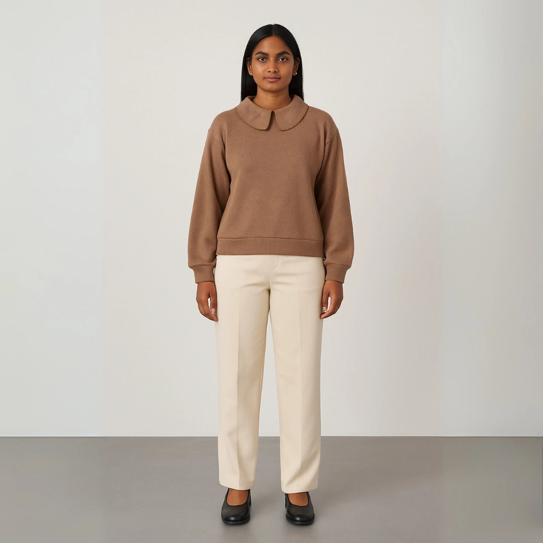 Casual Brown Sweatshirt – Peter Pan Collar Detail