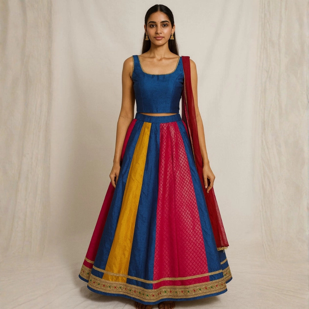 Traditional Blue and Multicolor Lehenga With Choli Set