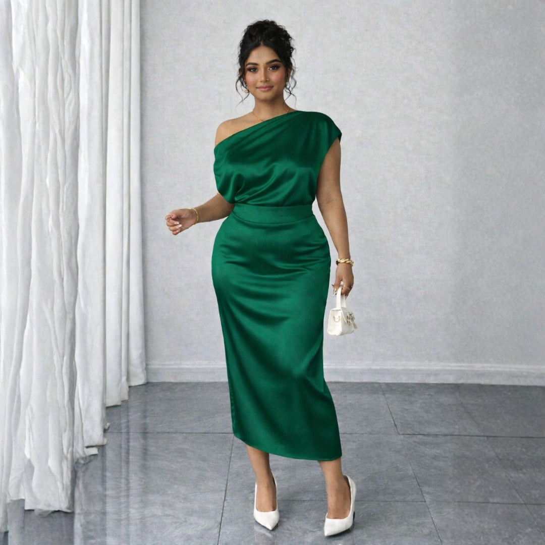 Women : Fabric: 100% Satin Sleeve : Sleevless Neckline: One-Shoulder Drape Closure: Pull On Quantity:...