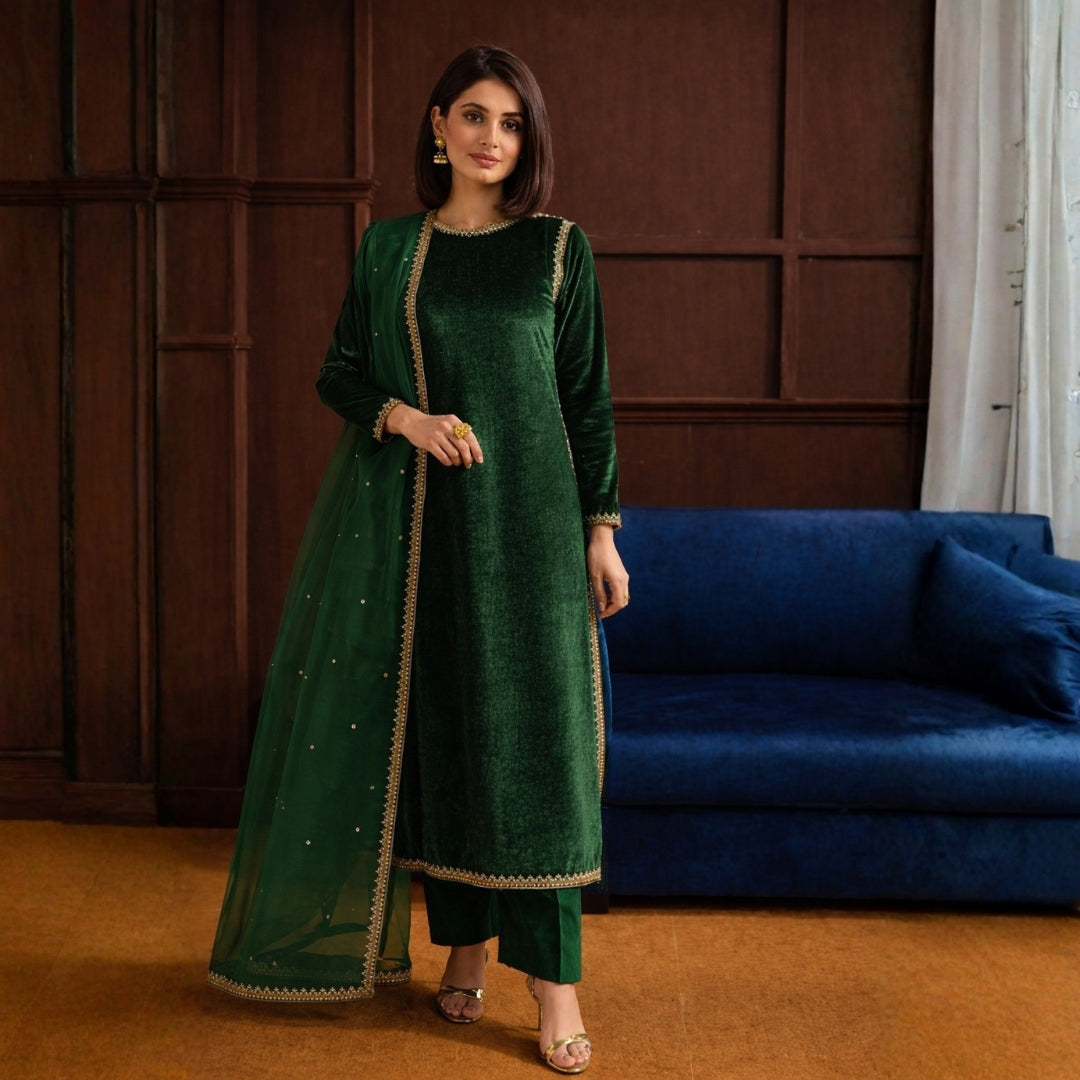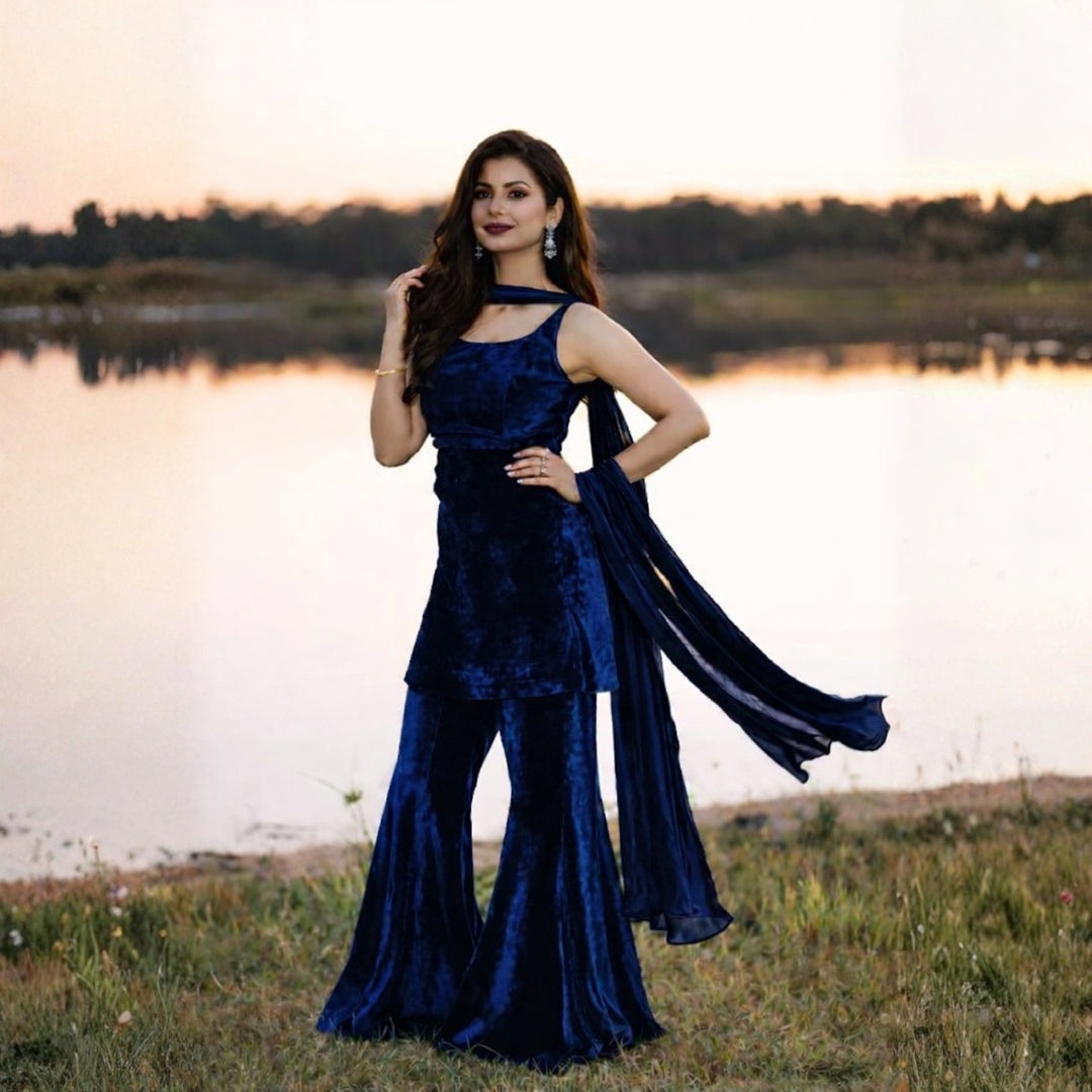 Women : Fabric: 100% Velvet Sleeve : Sleevless Neckline: Round - Neck Closure: Zipper (Kurta)...