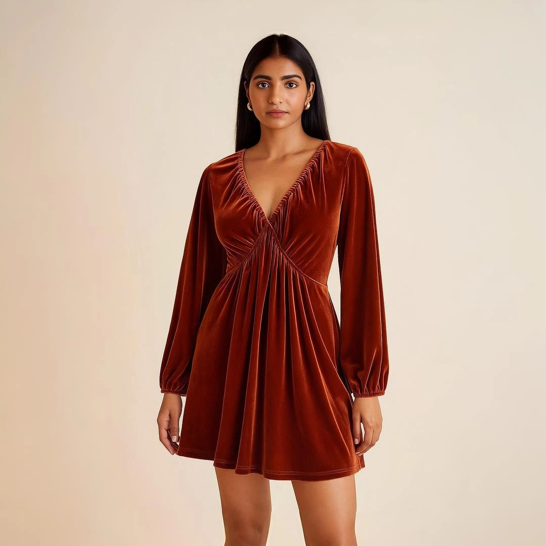 Rust fitted Velvet Dress