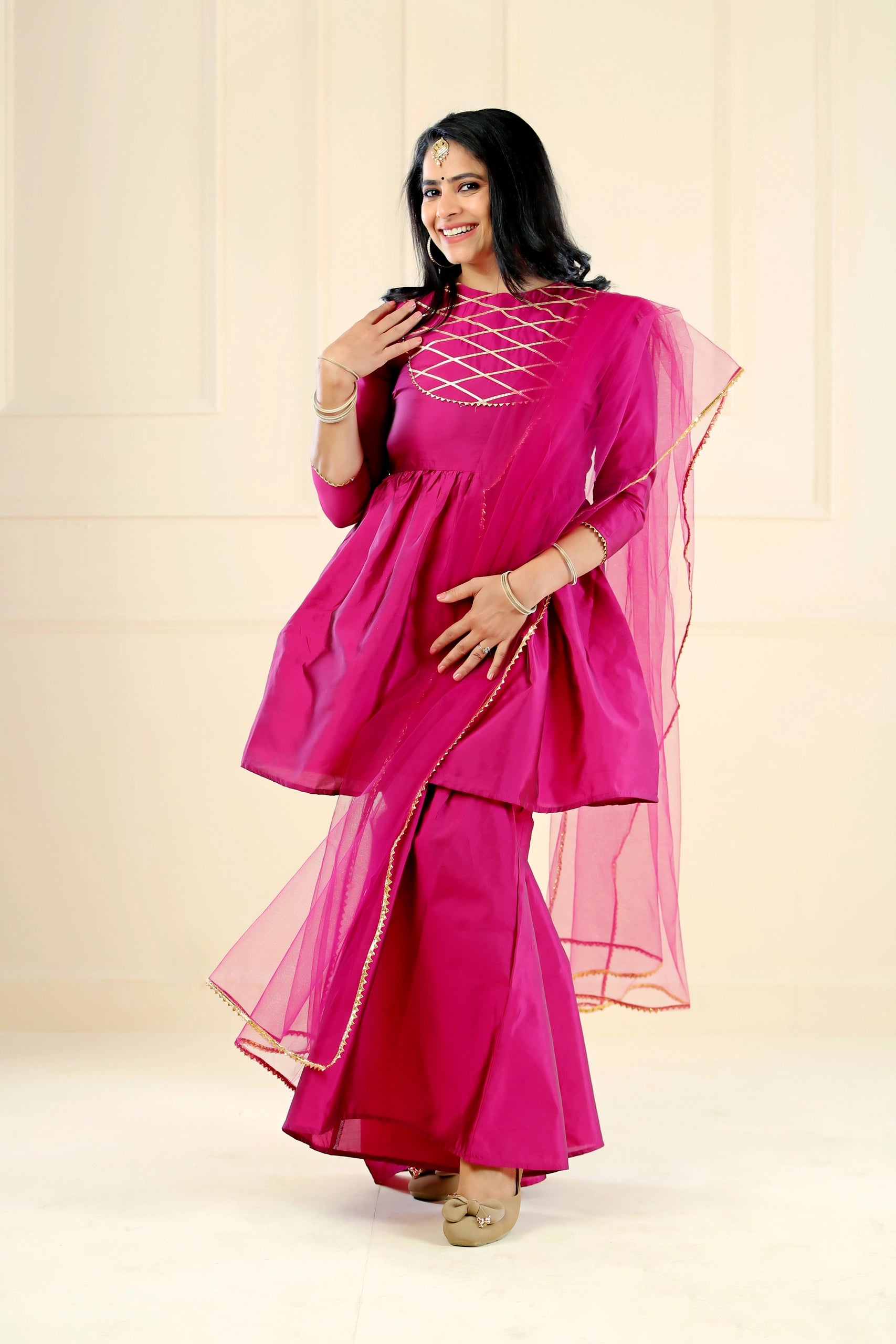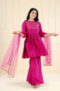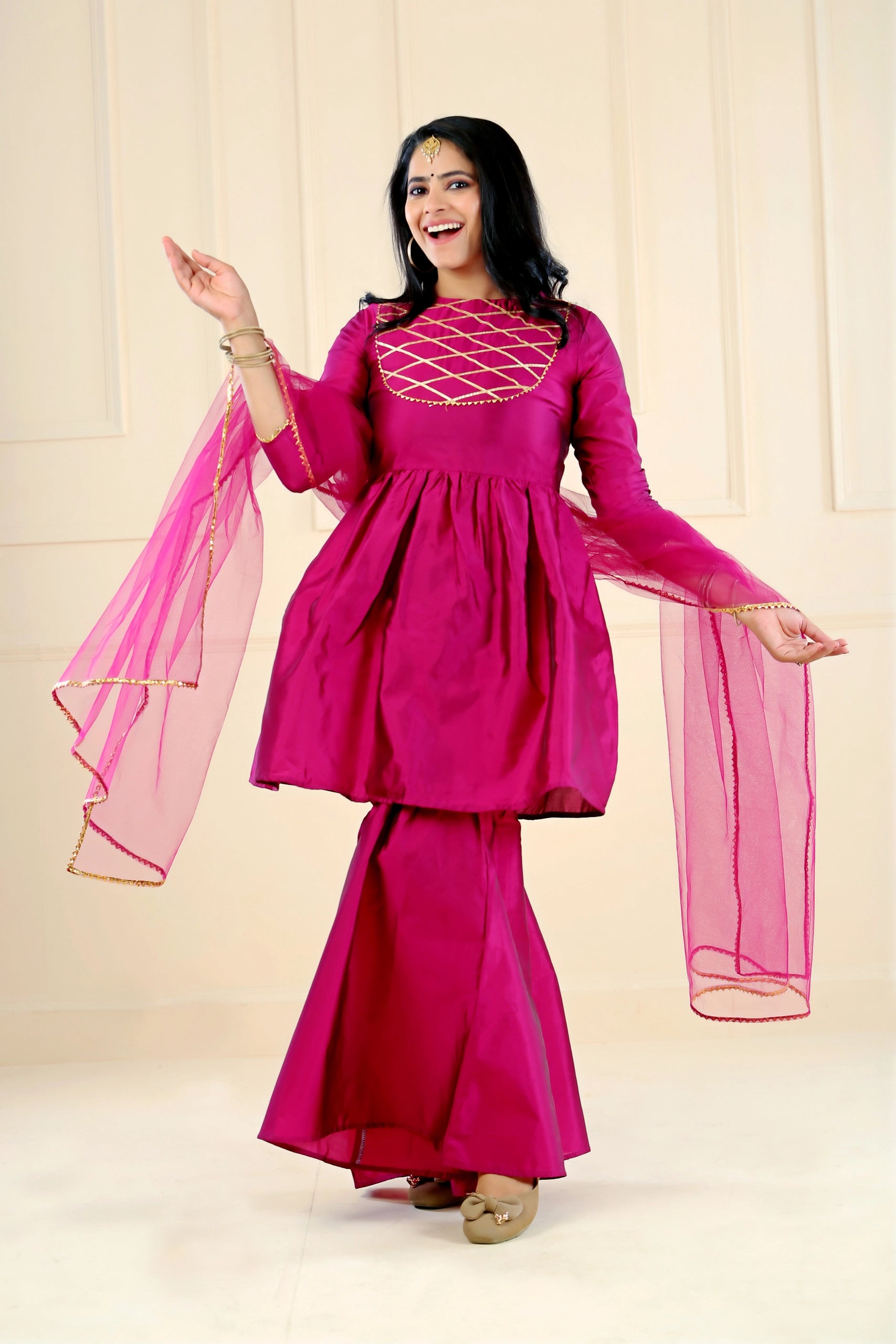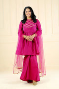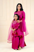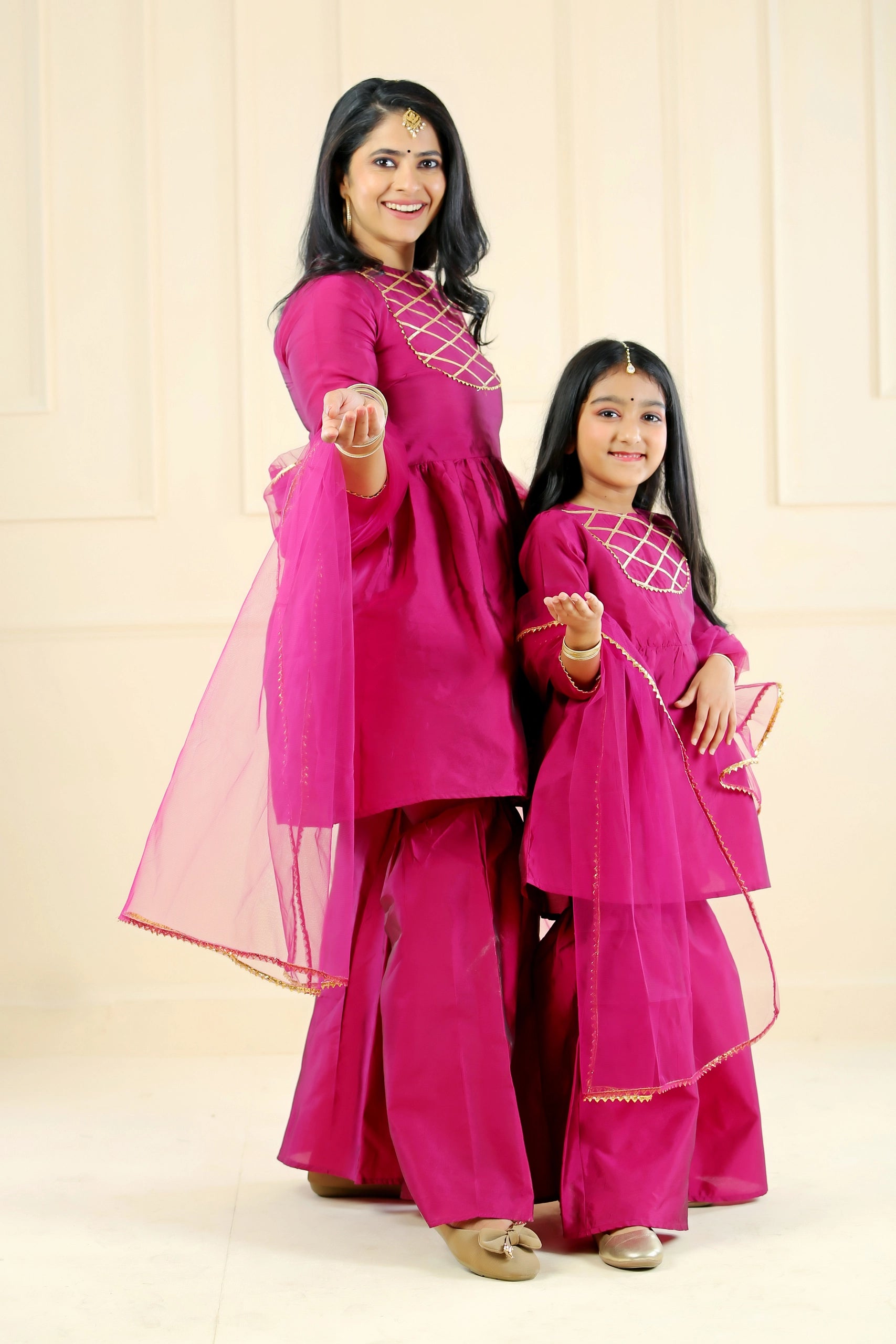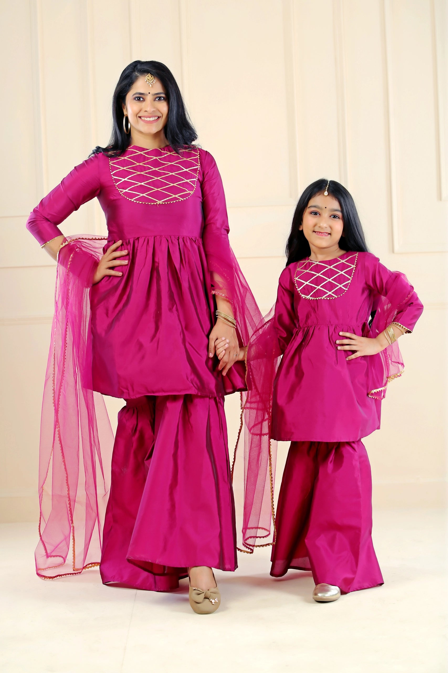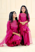 Matching Wine Noor Sharara Suit Set for Mom and Daughter