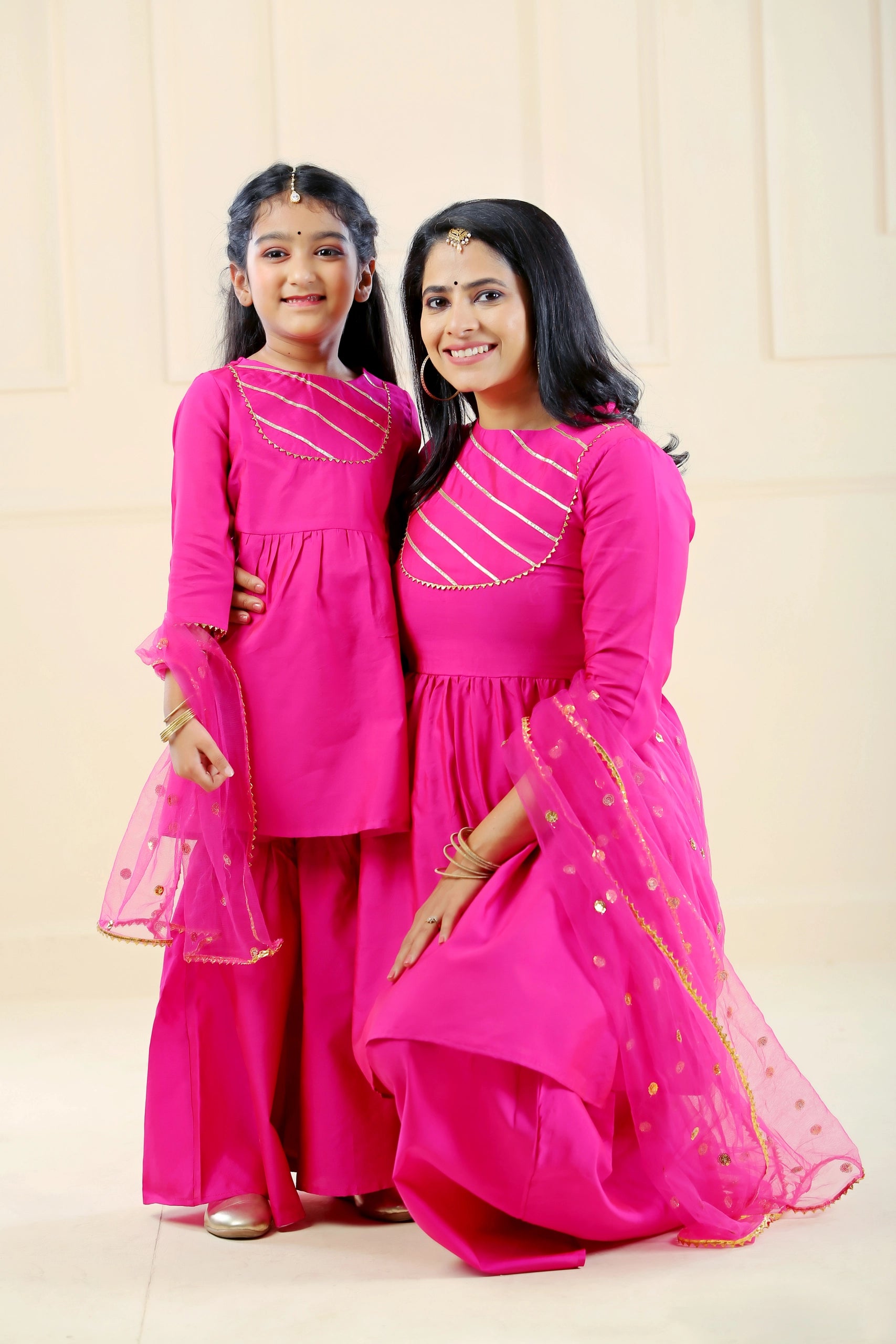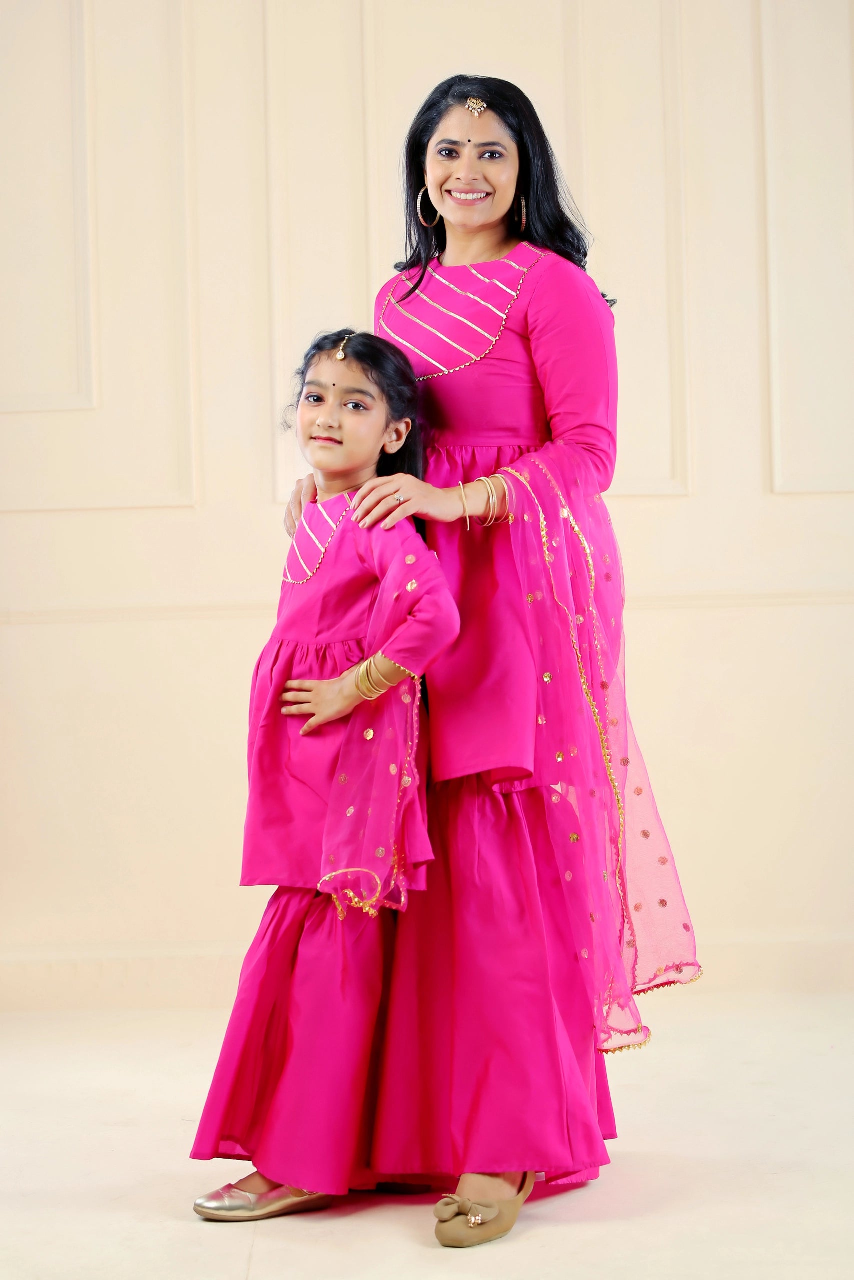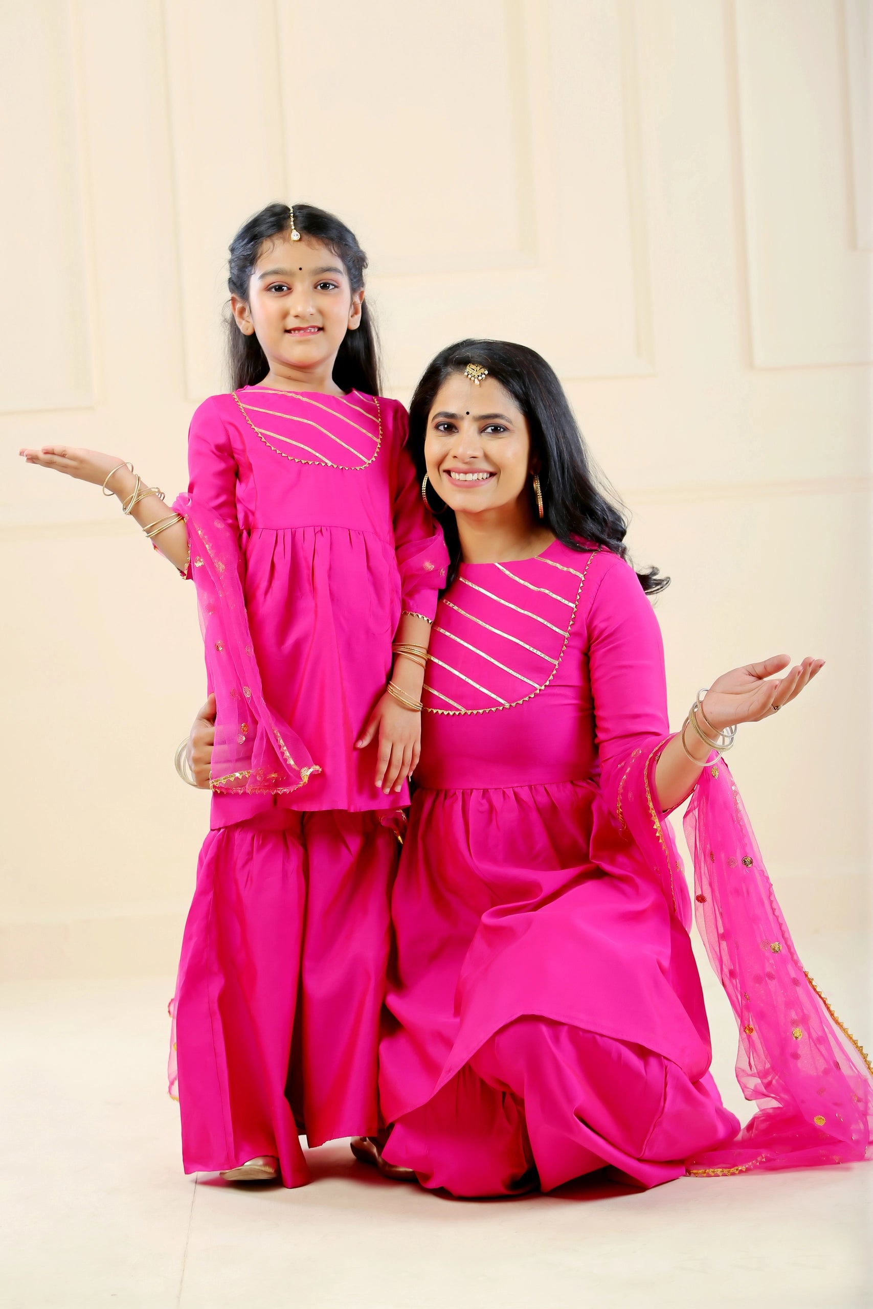Rani Pink Mom and Daughter Matching Sharara Suit Set