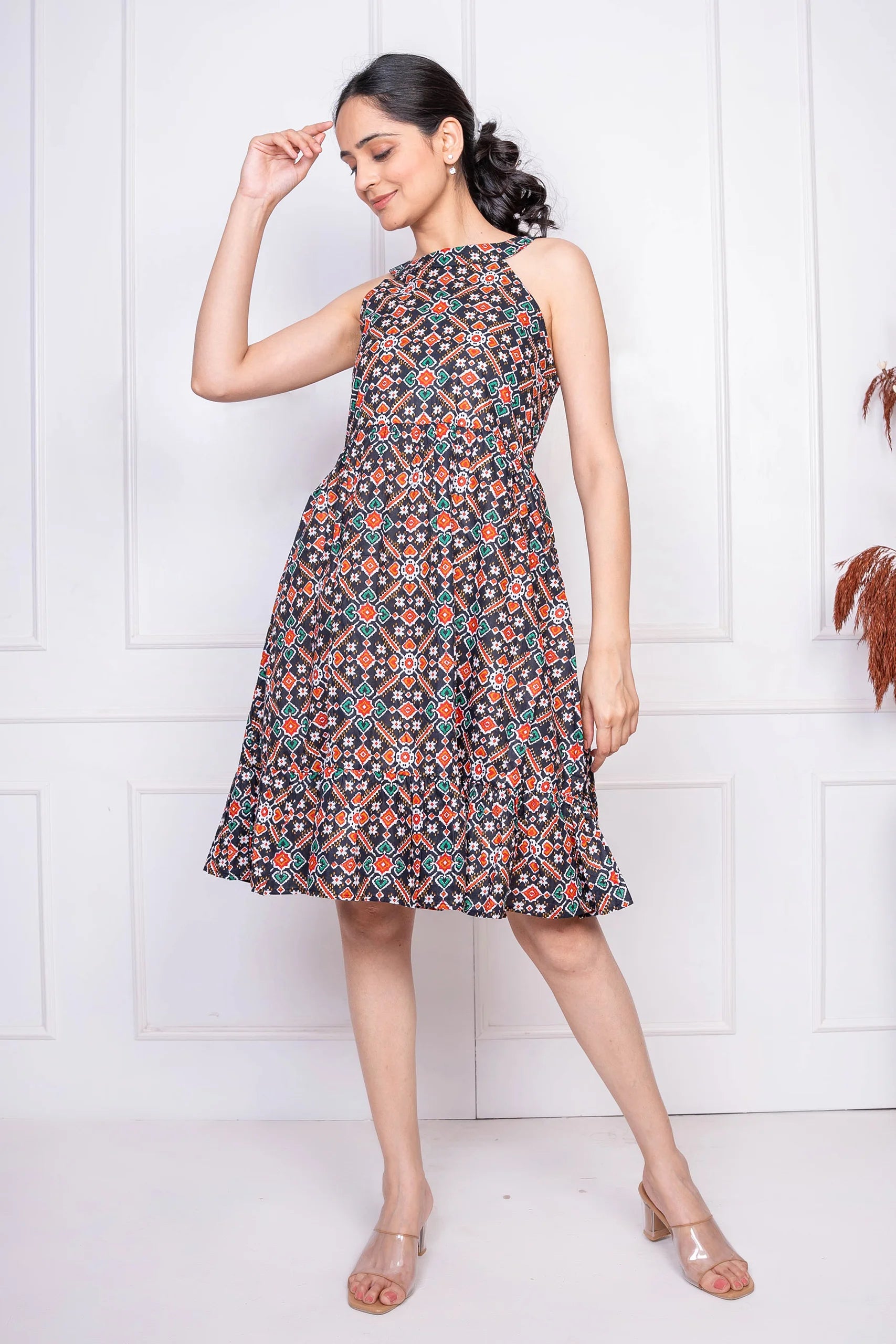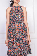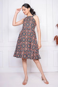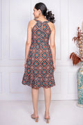 Black Geometric Printed Cotton Dress for Women