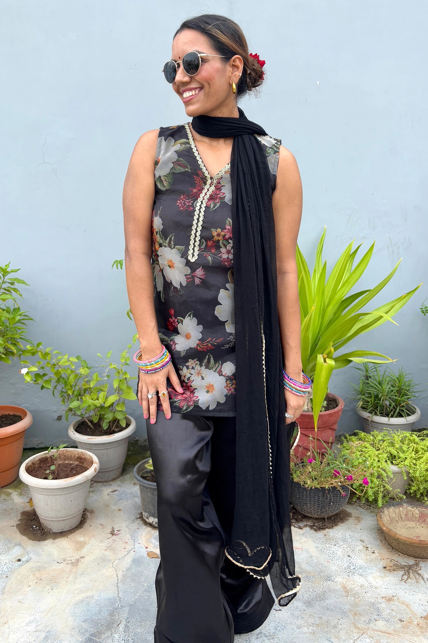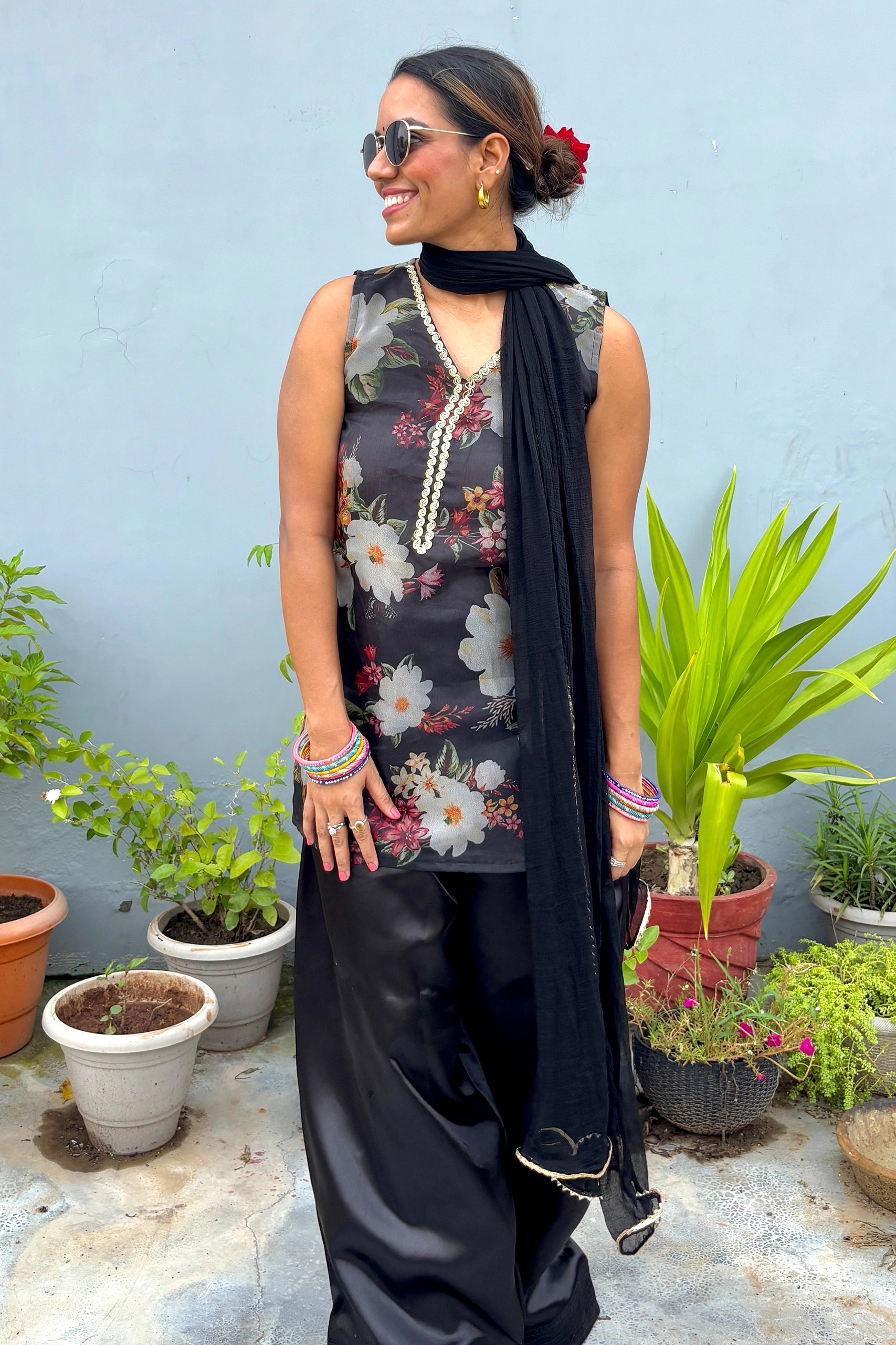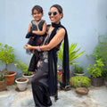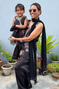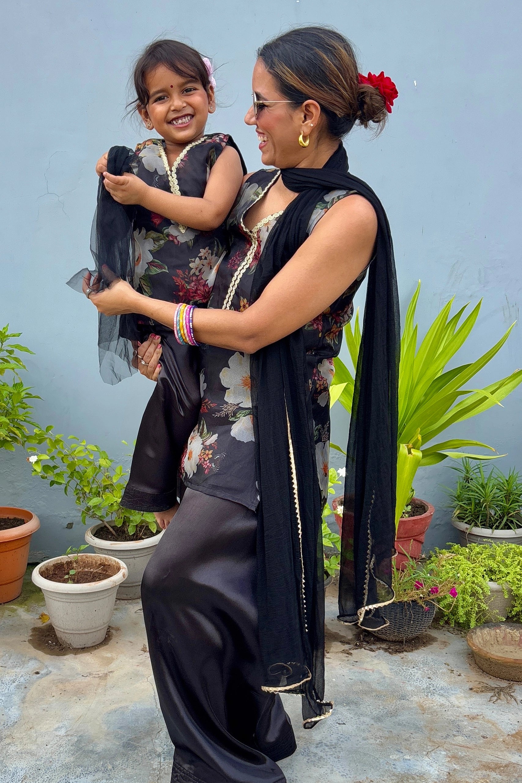 Black Organza Farshi Salwar Suit Set For Mom And Daughter