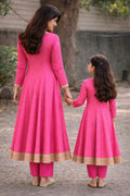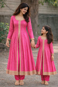 Royal Pink Matching Anarkali Set For Mom & Daughter