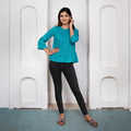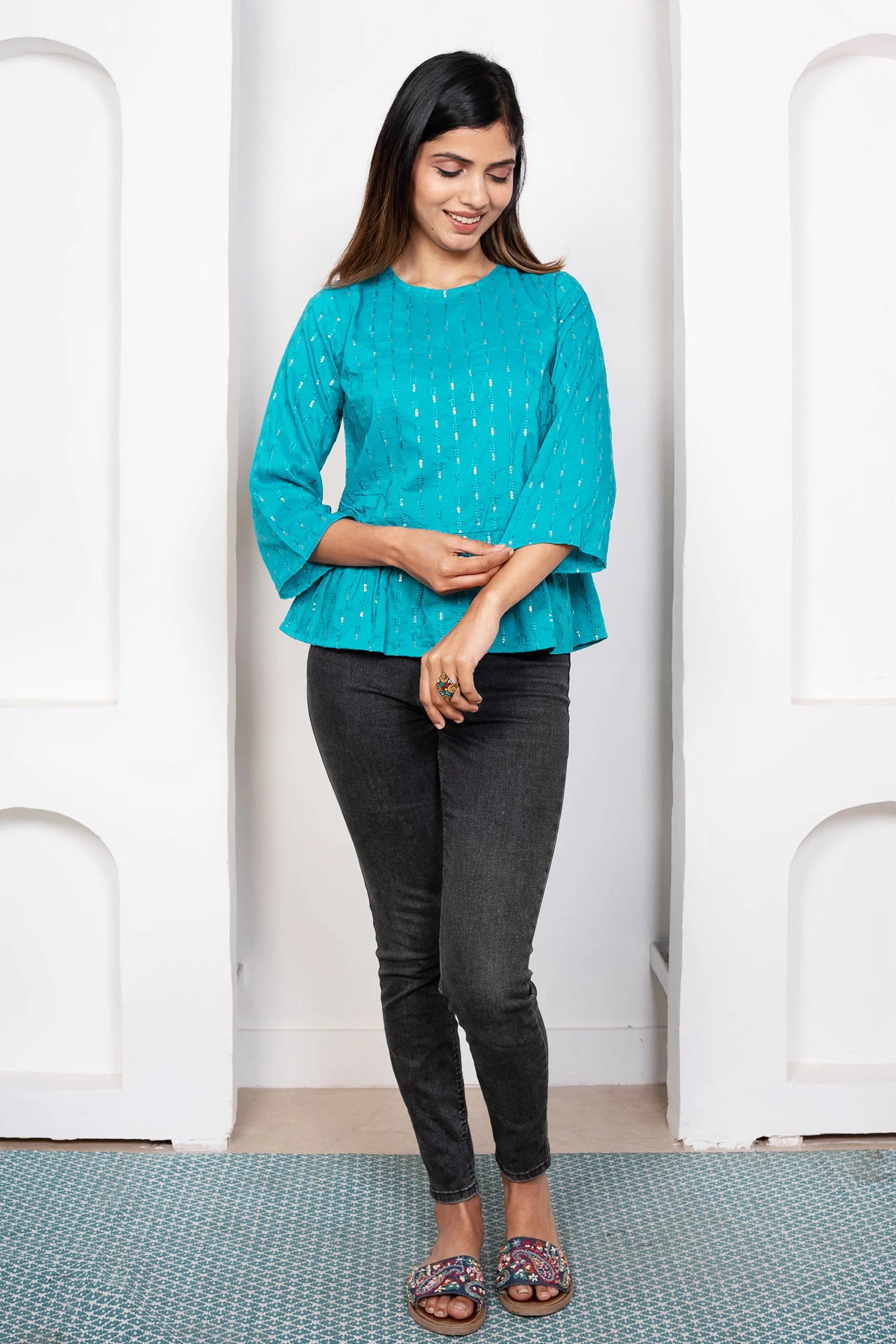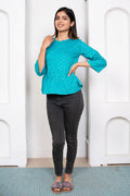 Blue & Silver Peplum Top: Cotton Comfort with Style