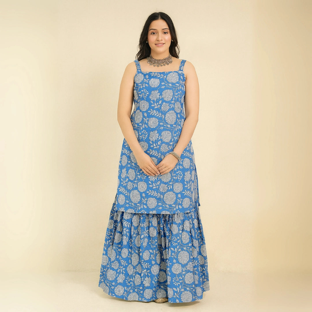 Blue Floral Cotton Suit Set