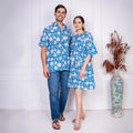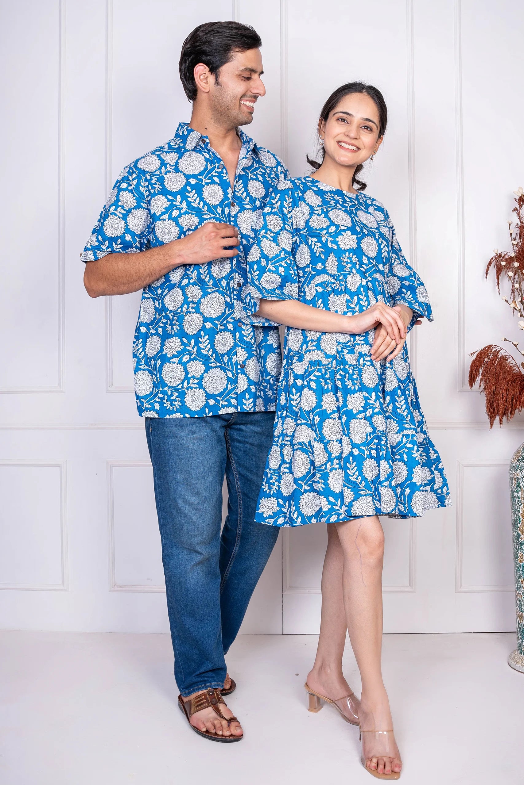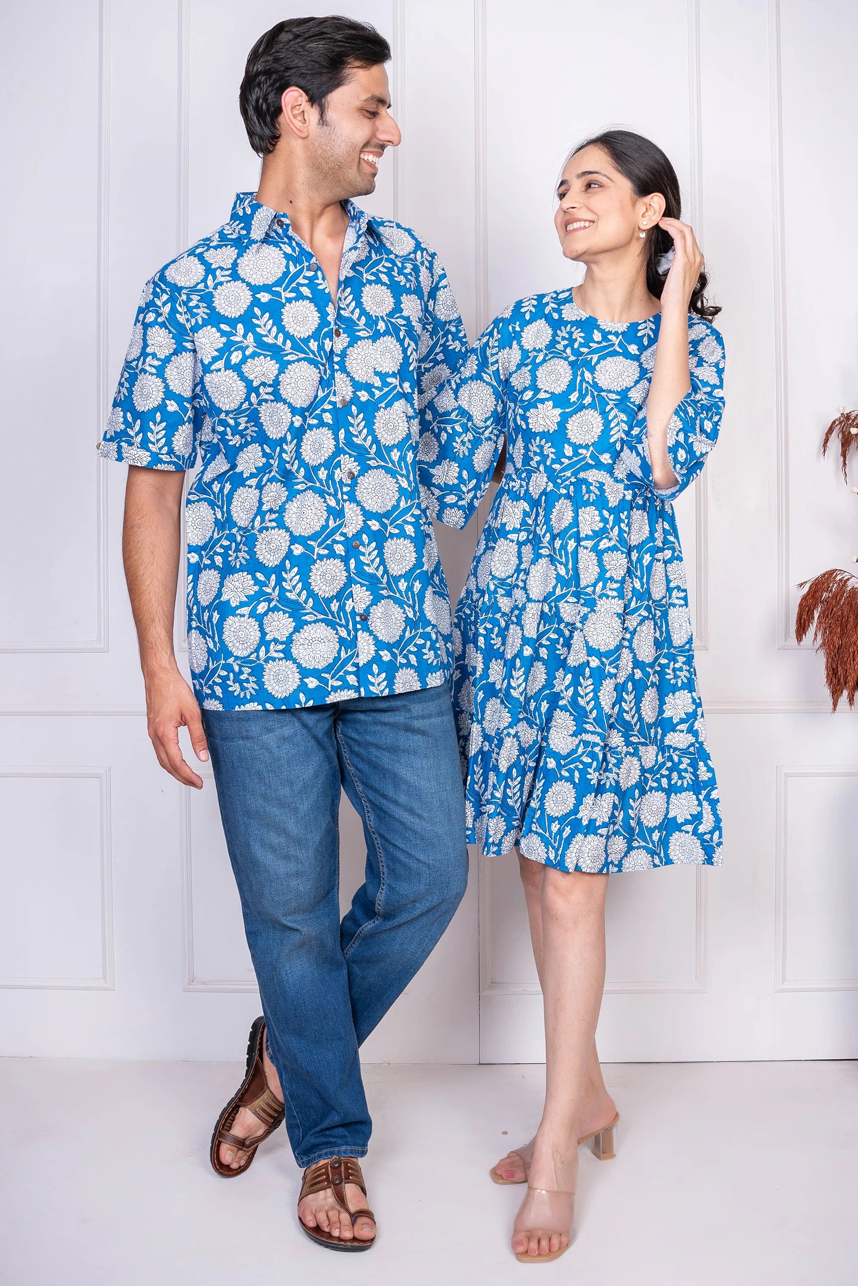 Blue Floral Printed Dress With Matching Shirt Couple Twin Set