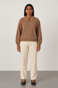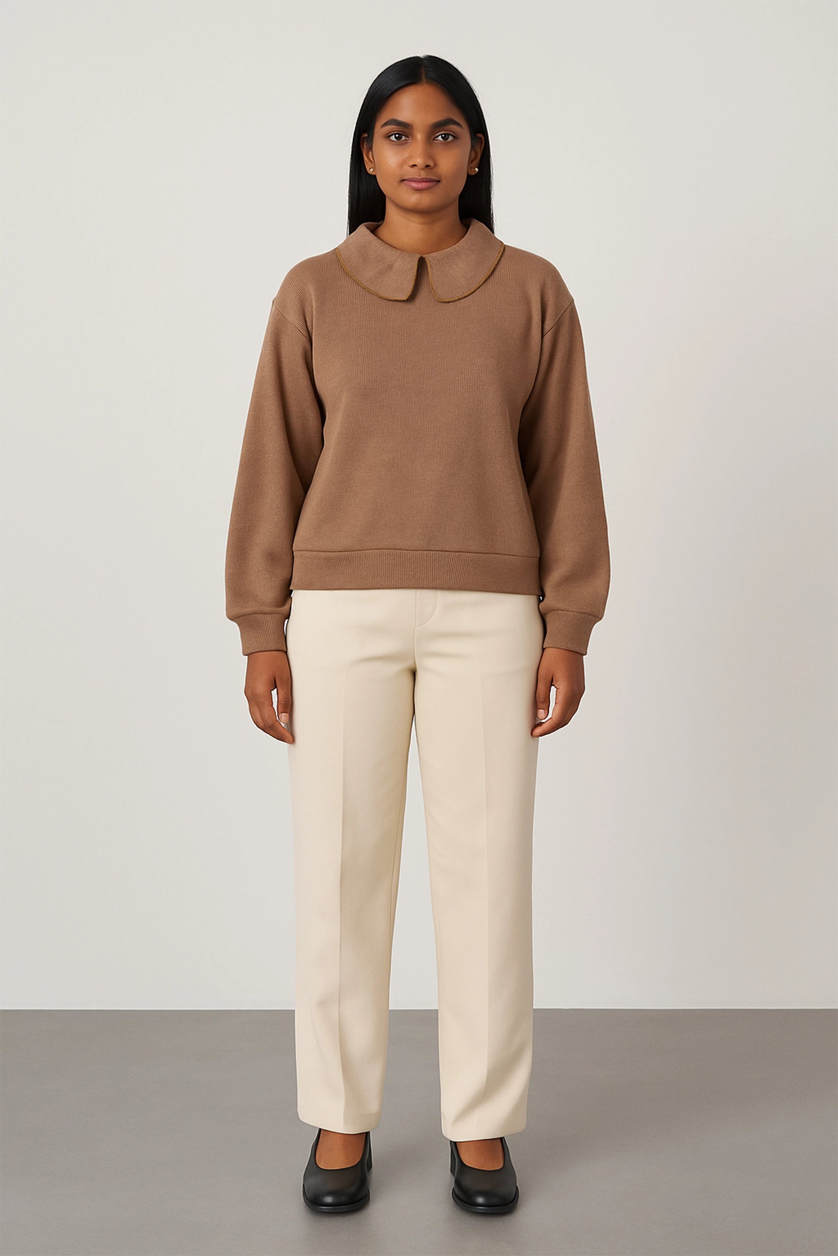 Casual Brown Sweatshirt – Peter Pan Collar Detail