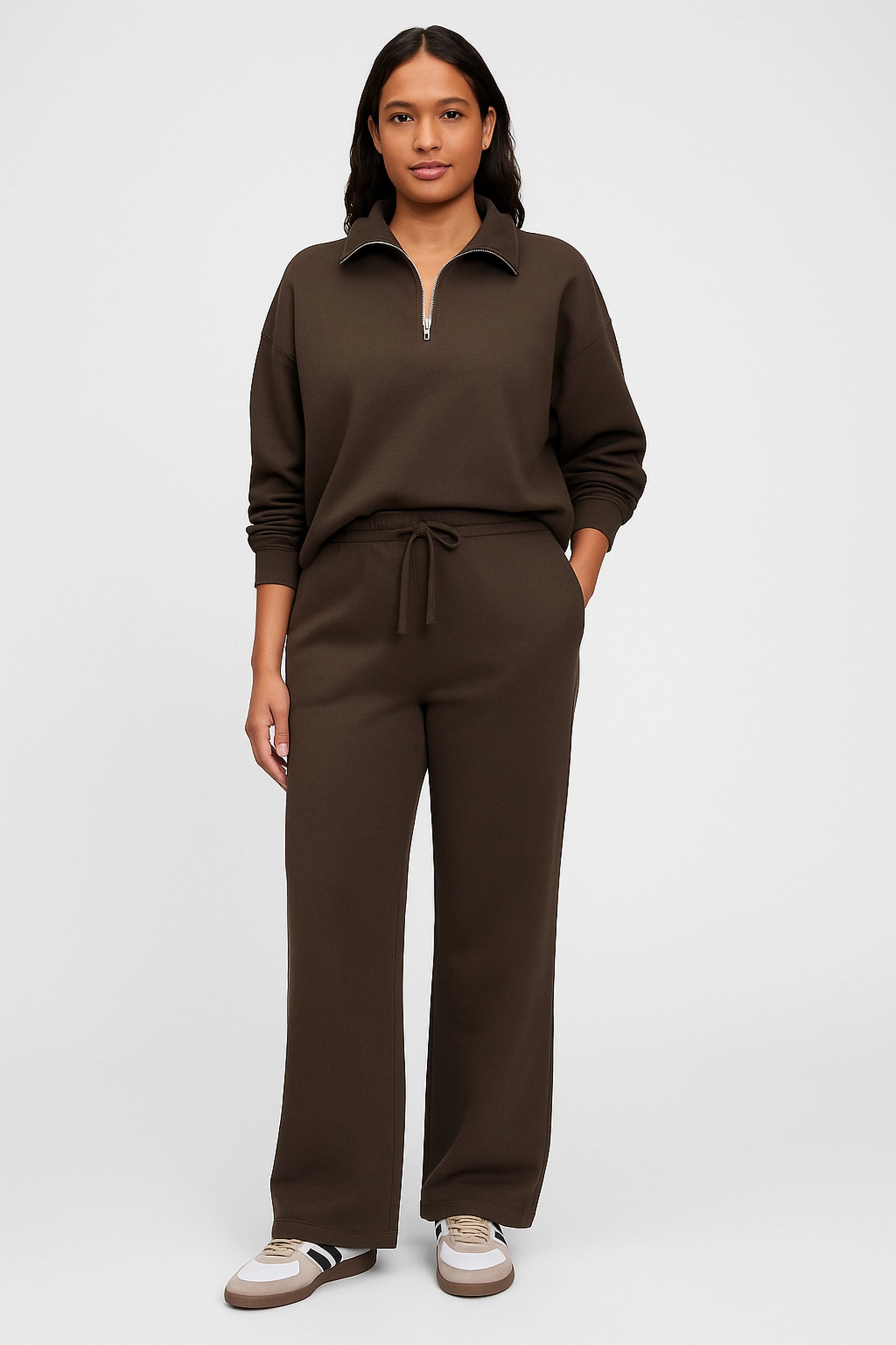 Casual Co-ord Set – Brown Half Zip Sweatshirt & Pants