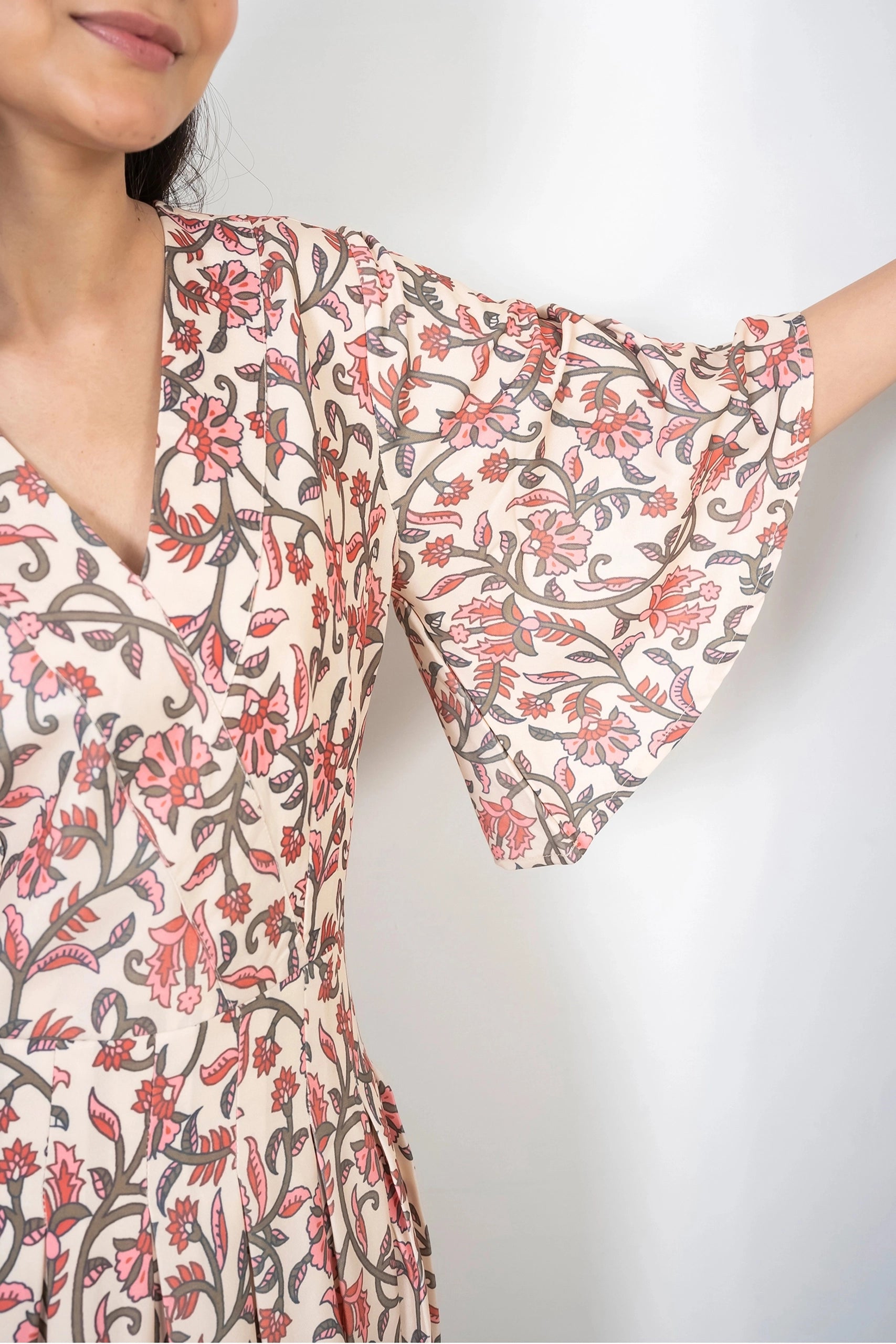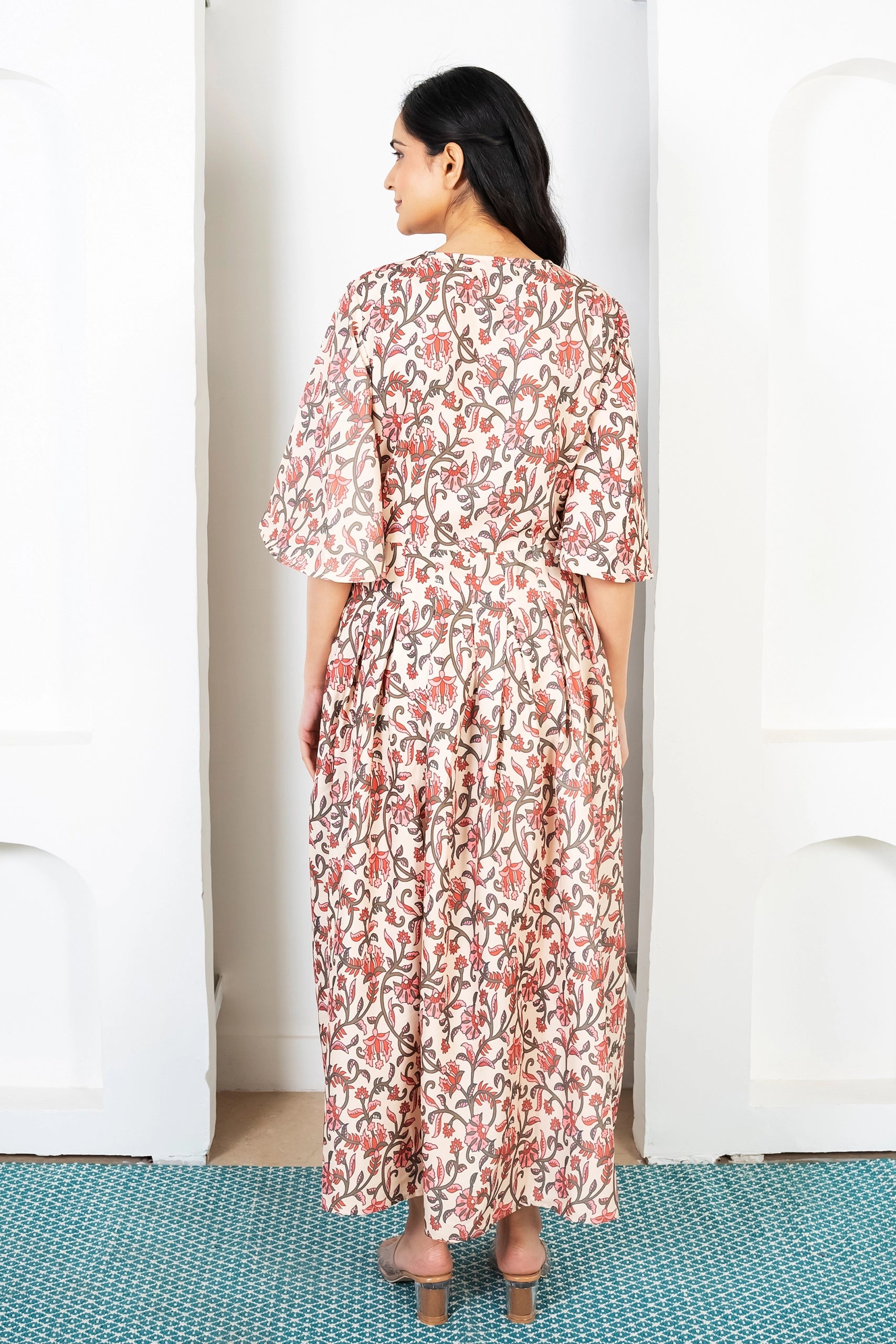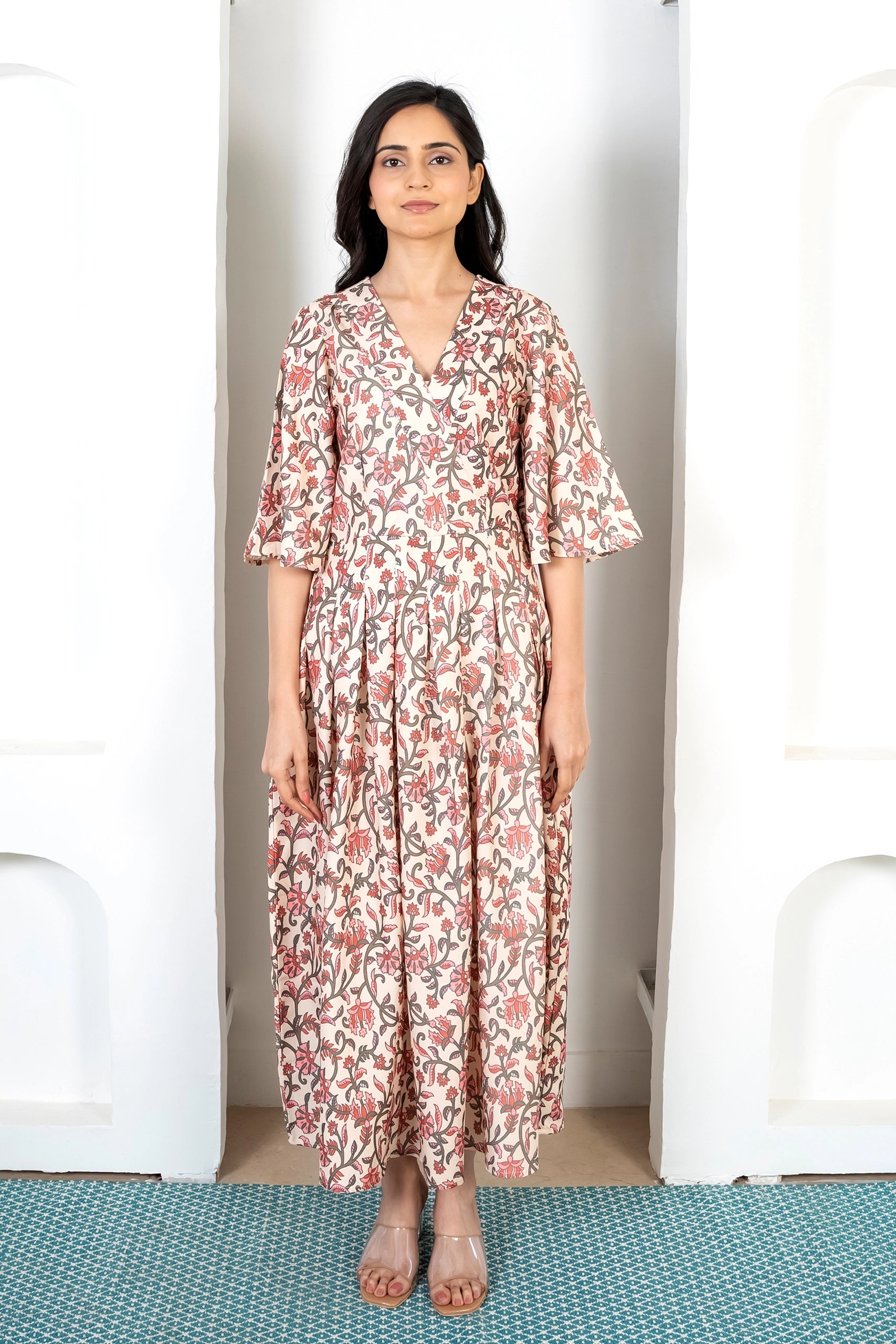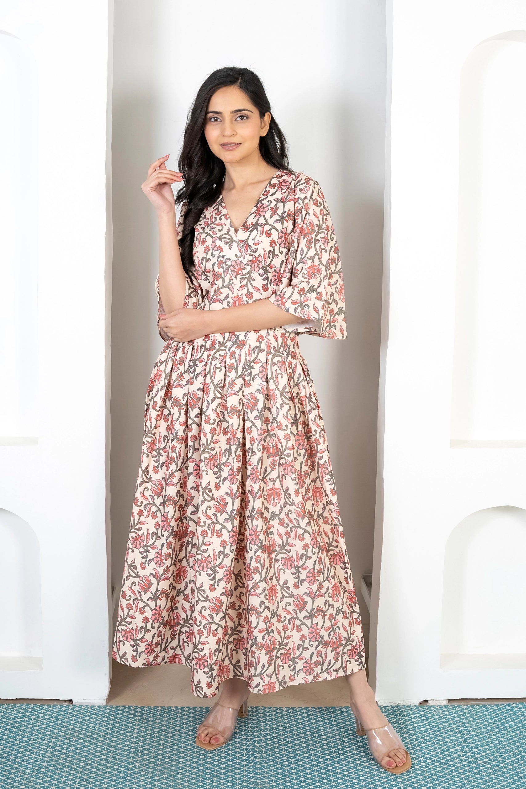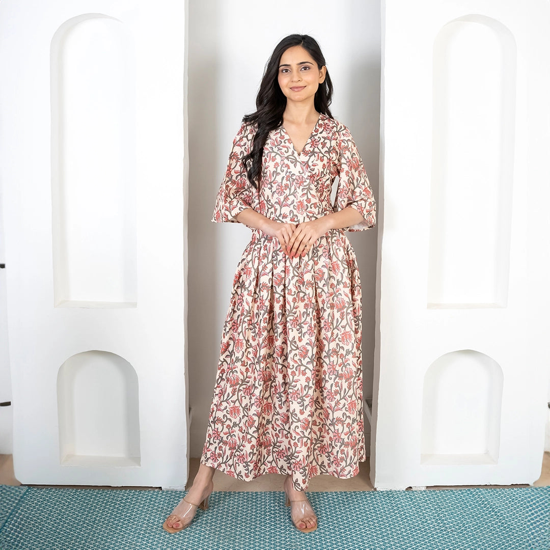 Comfy Cream and Red Floral Printed Maxi Dresses for Women