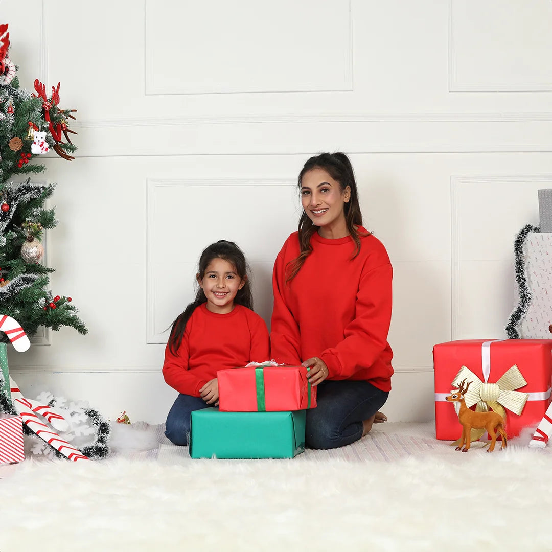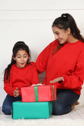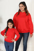 Cozy Red Matching Mom and Daughter Sweatshirt Set – Twinning in Style