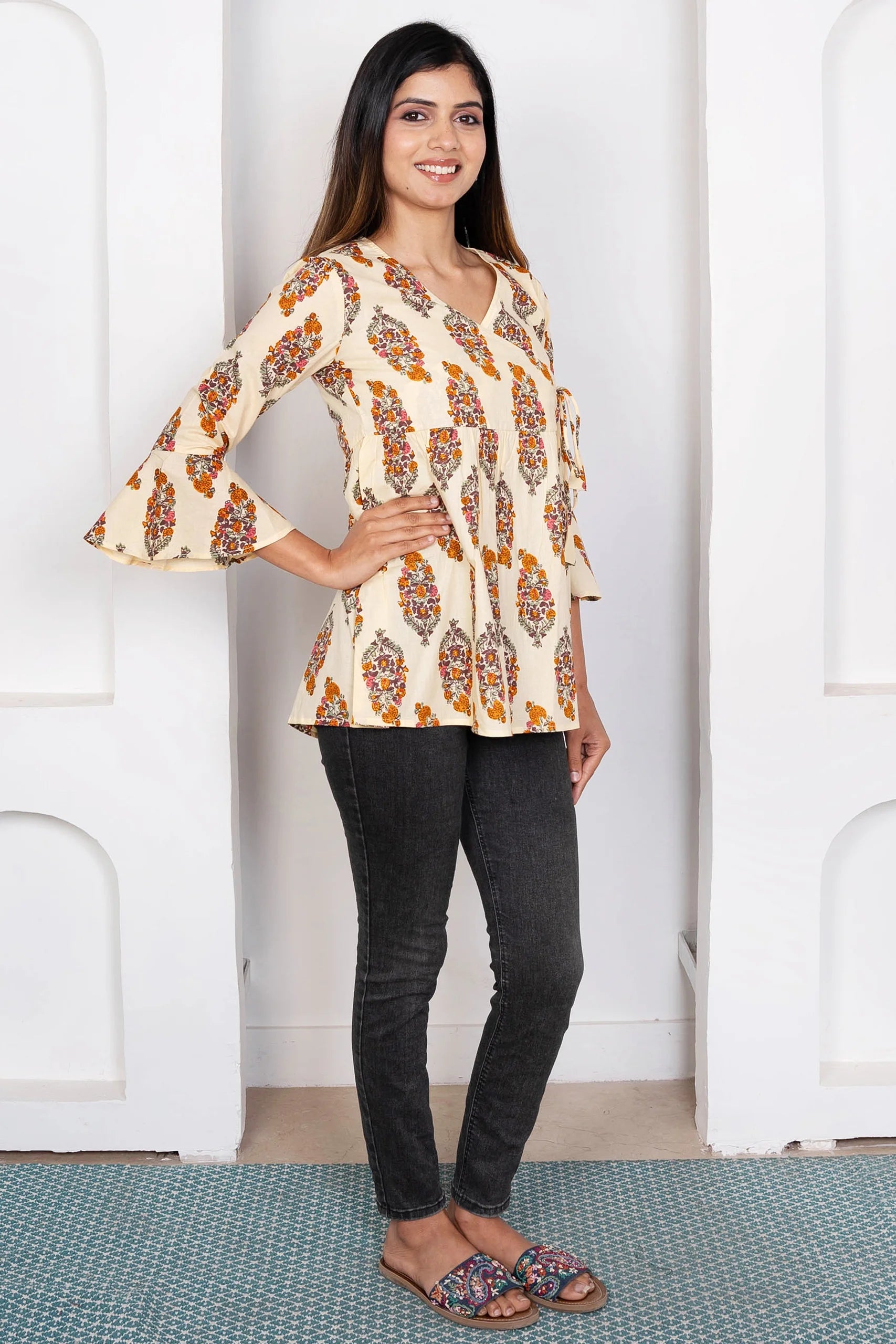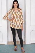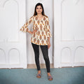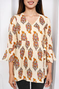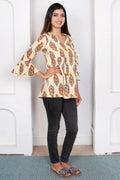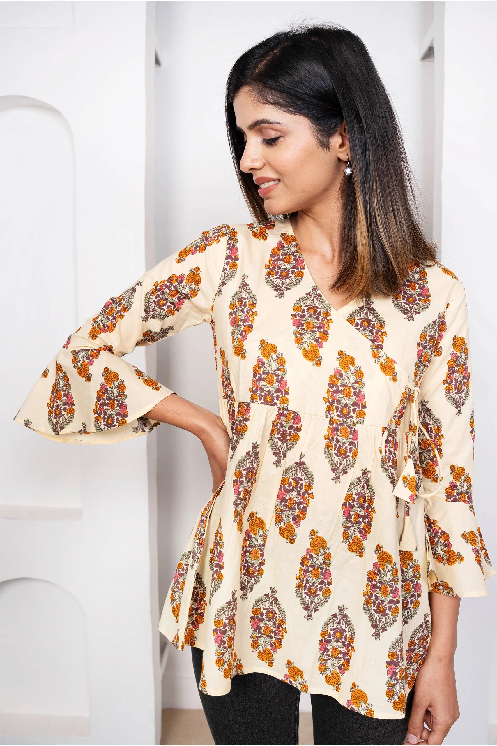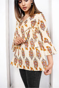 Printed Angrakha Style Top: Cotton Comfort in Cream & Mustard