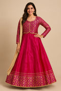 Fuchsia Brocade Anarkali Set For Women
