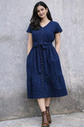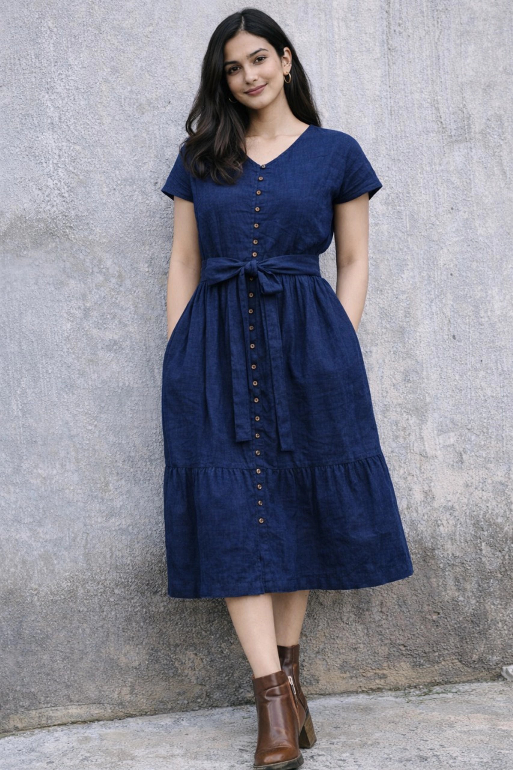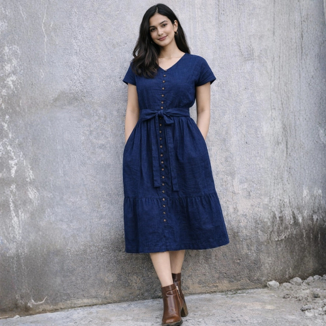 Elara Button Midi – Navy Blue
