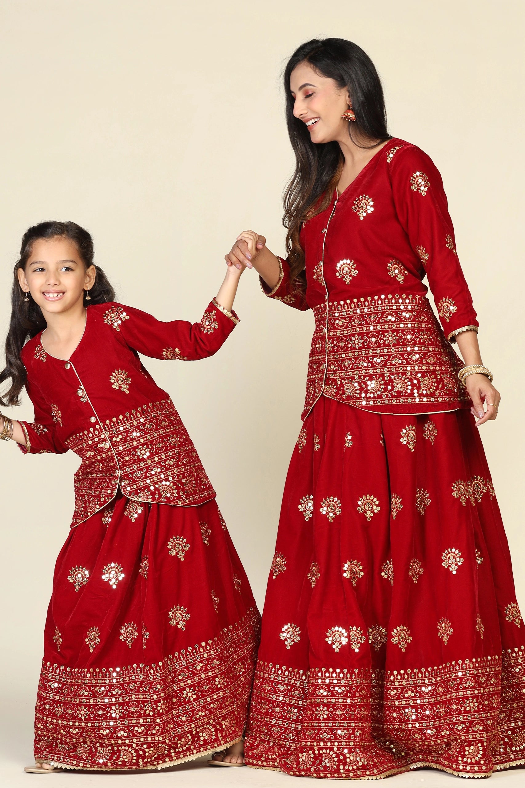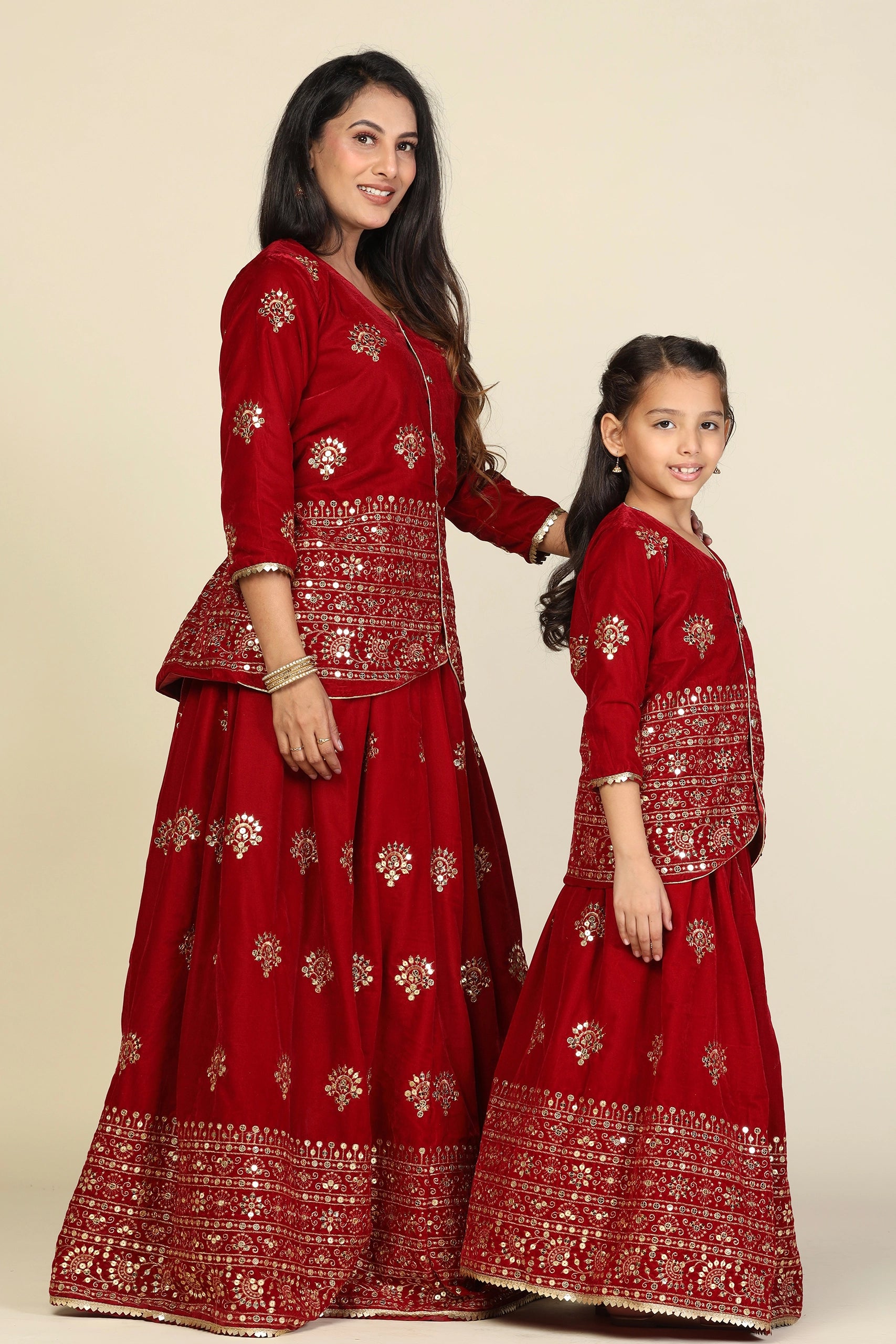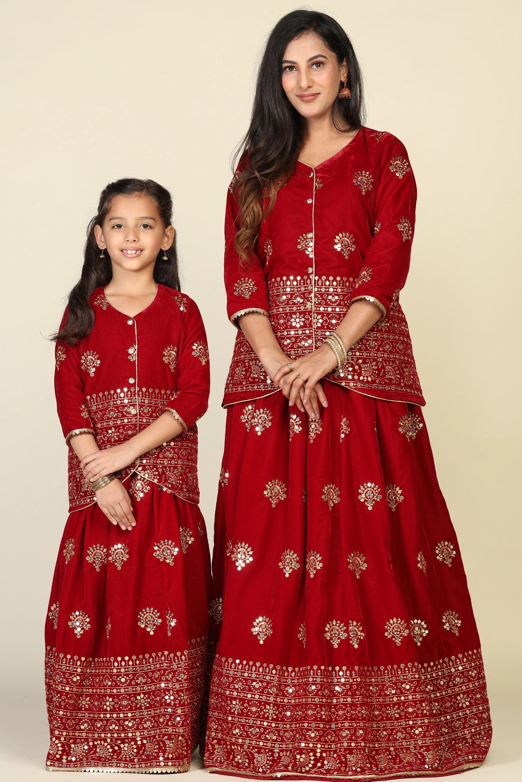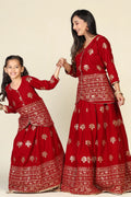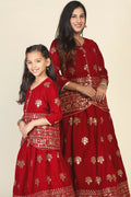 Elegant Maroon Duo: Mom and Daughter Matching Jacket Lehenga Set