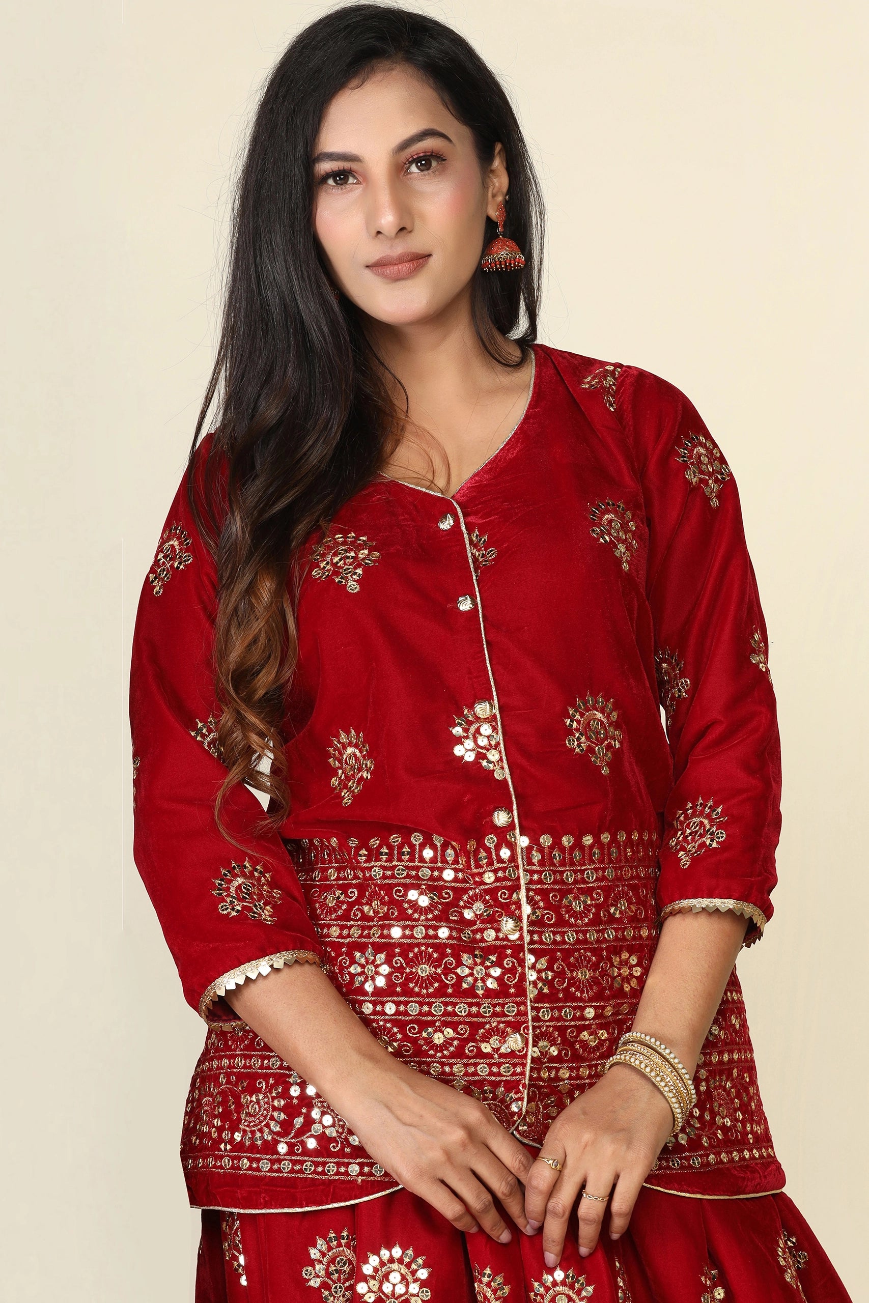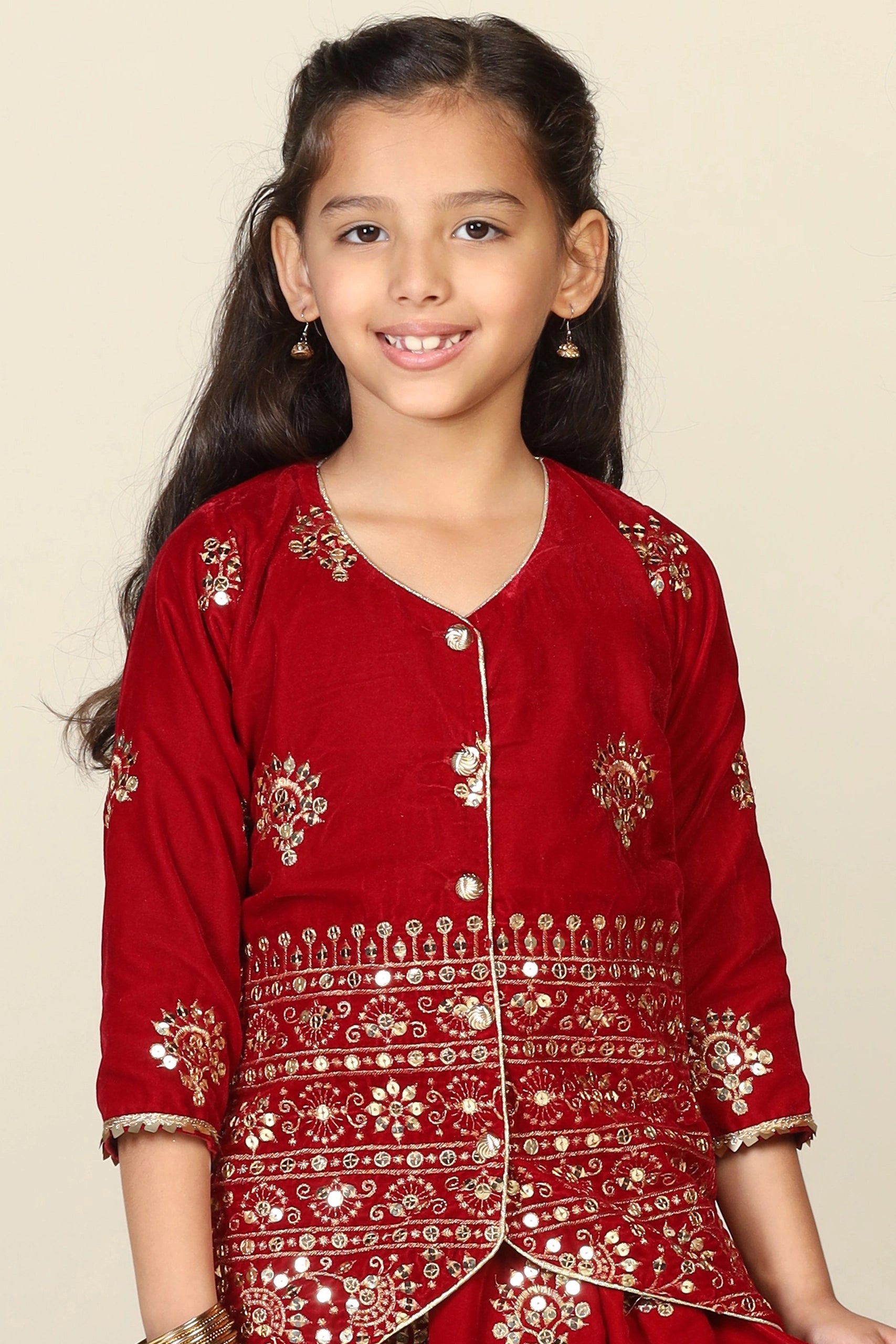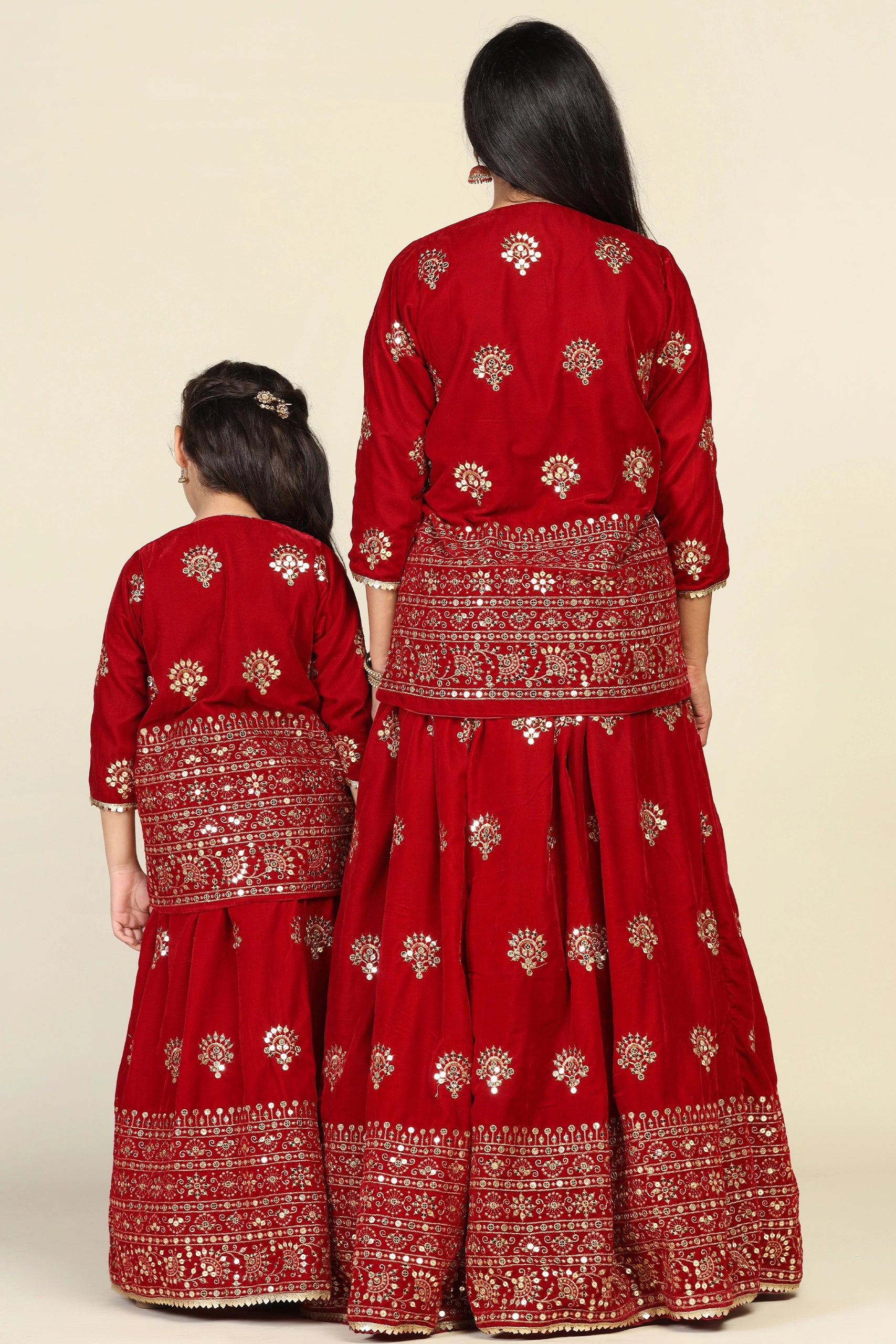 Elegant Maroon Duo: Mom and Daughter Matching Jacket Lehenga Set