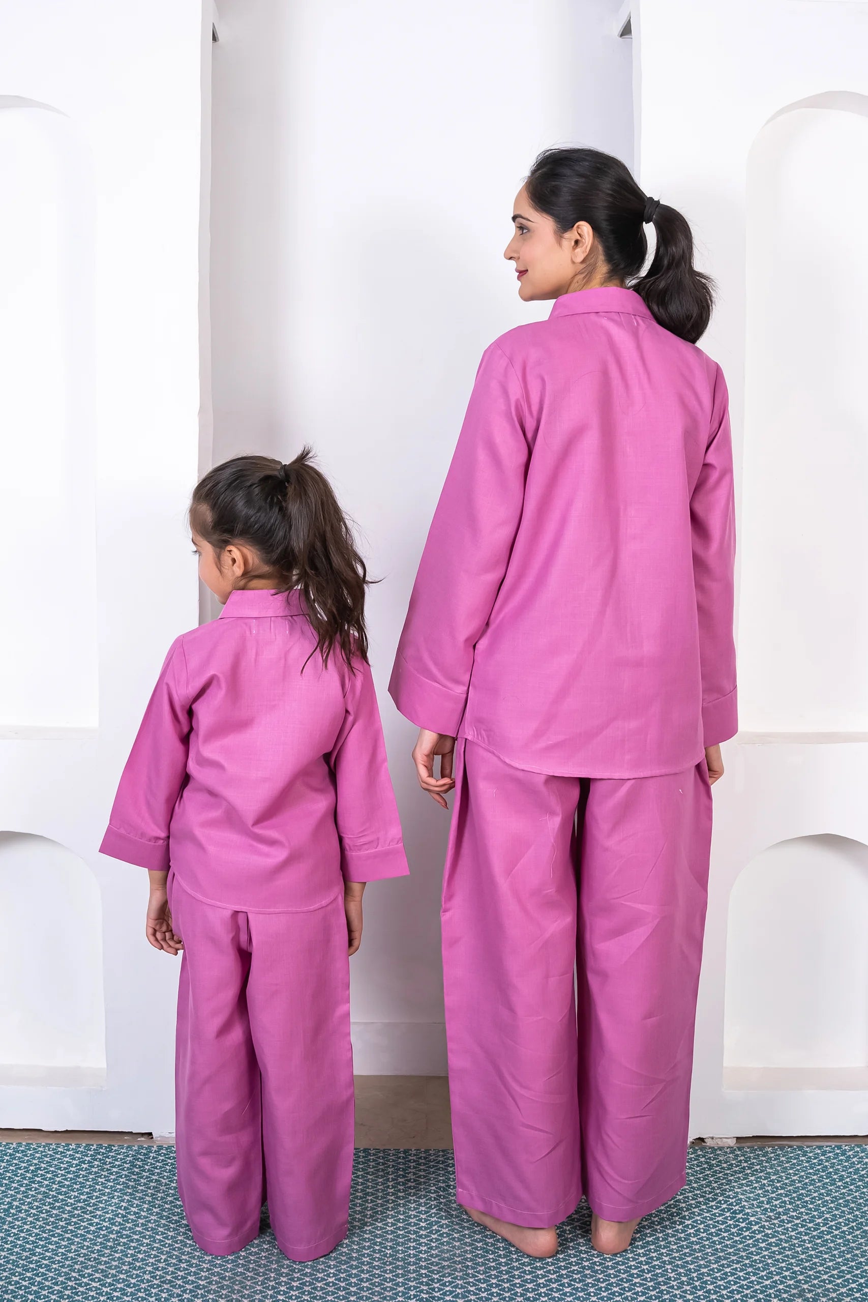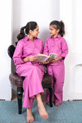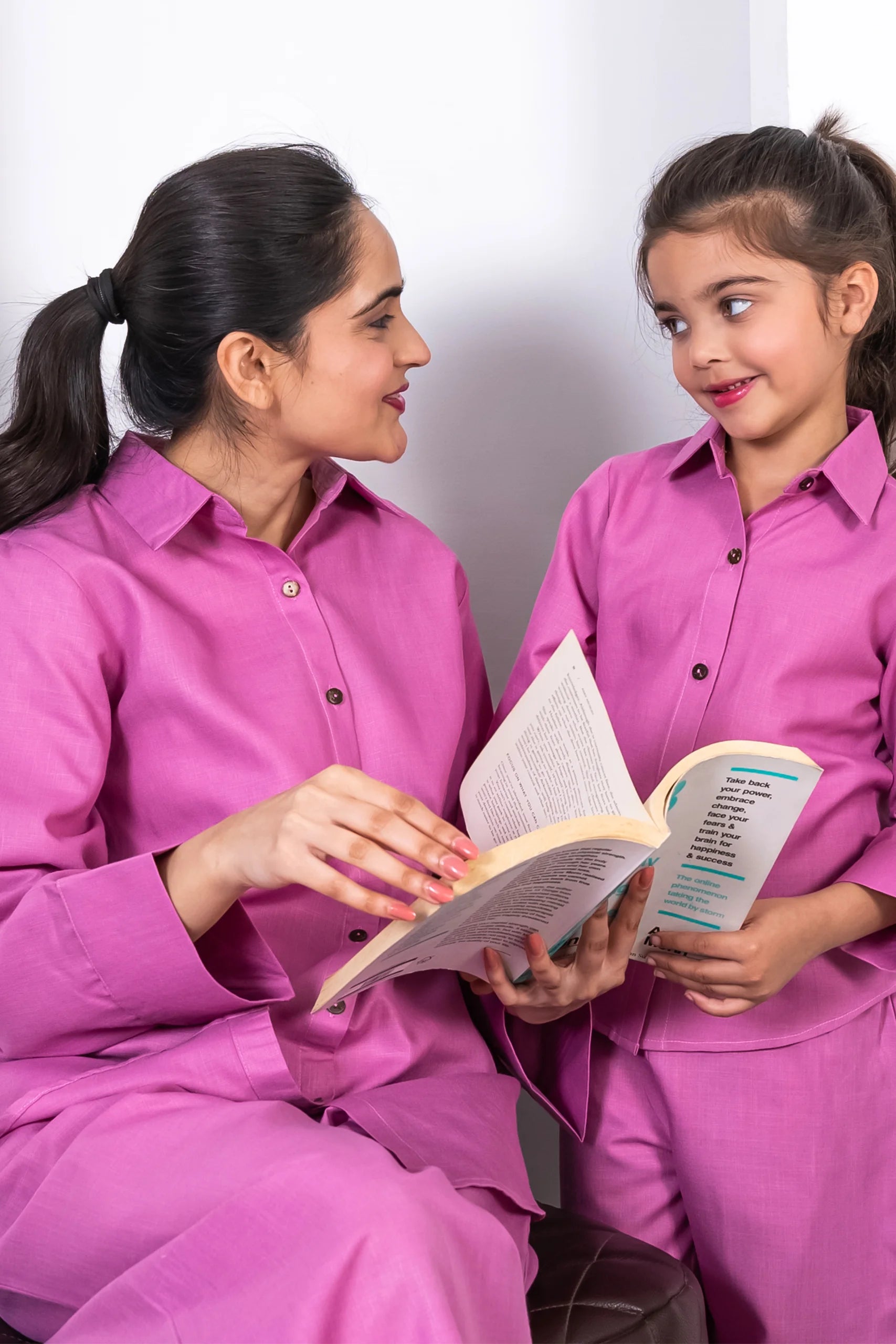 Summer Vacation Essentials: Purple Cotton Matching Outfits for Mom and Daughter: Pant and Shirt Co-Ord Set