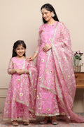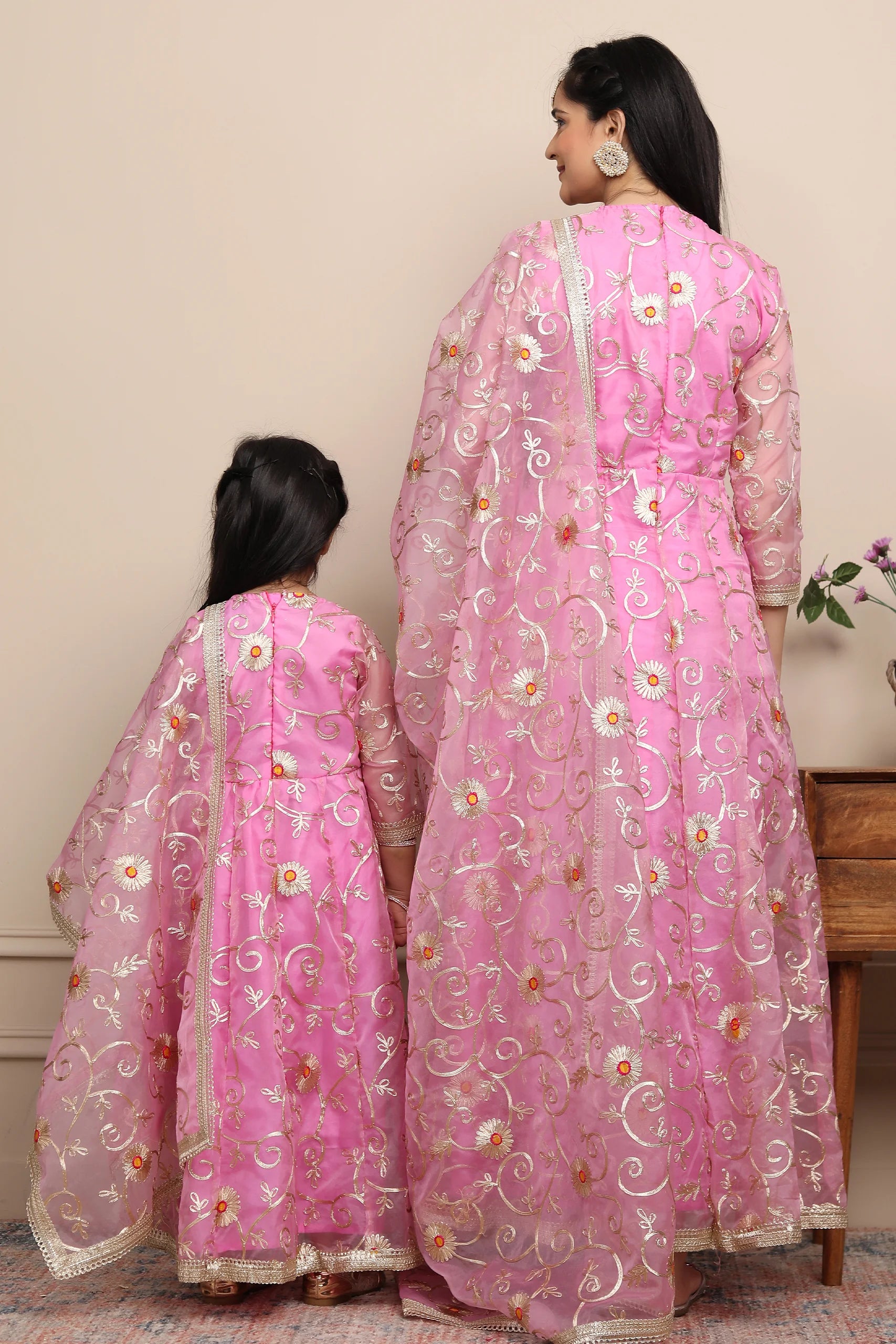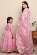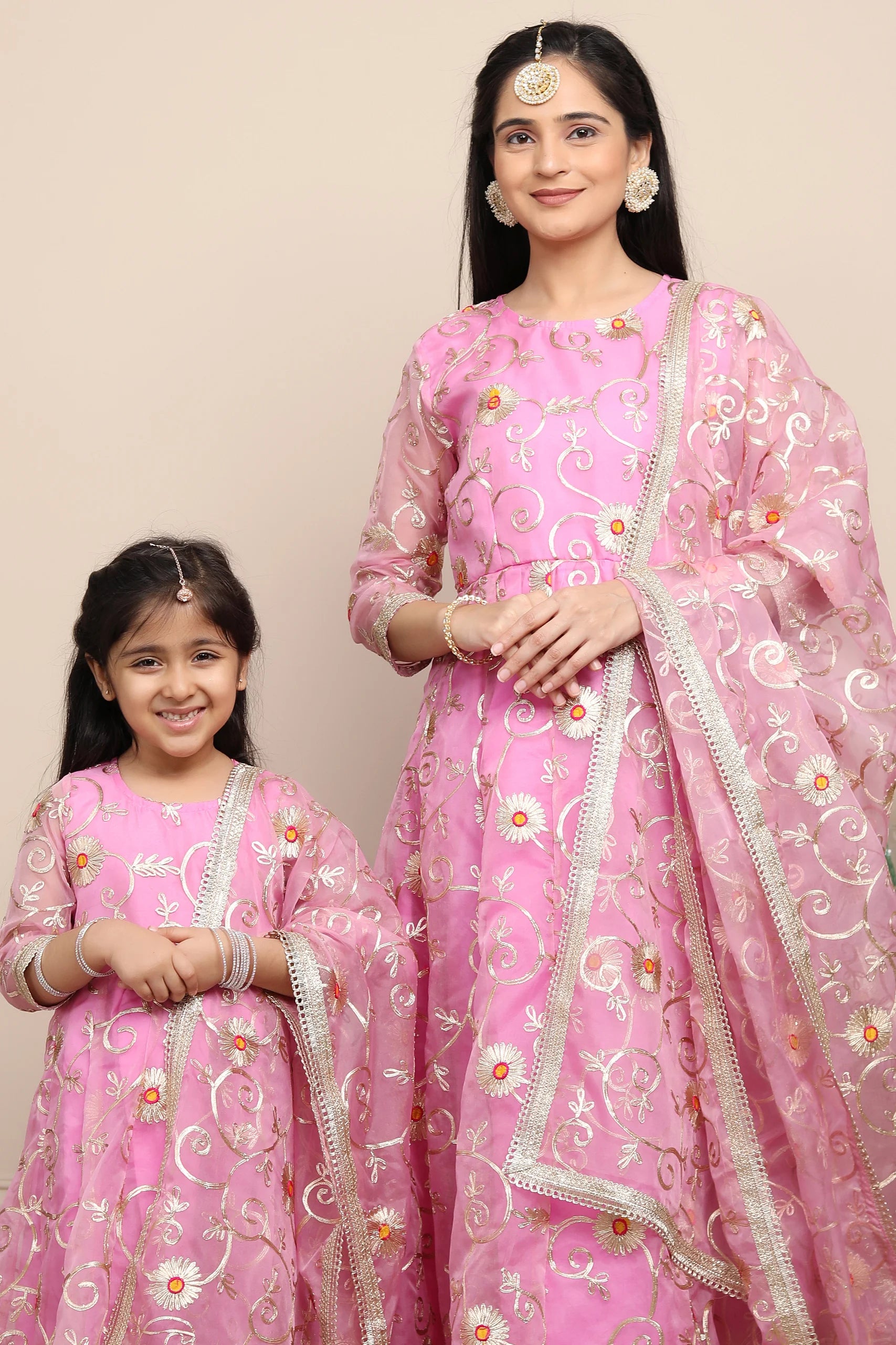 Elegant Ethnic Rouge & Silver Gota Patti Mom-Daughter Gown Set