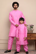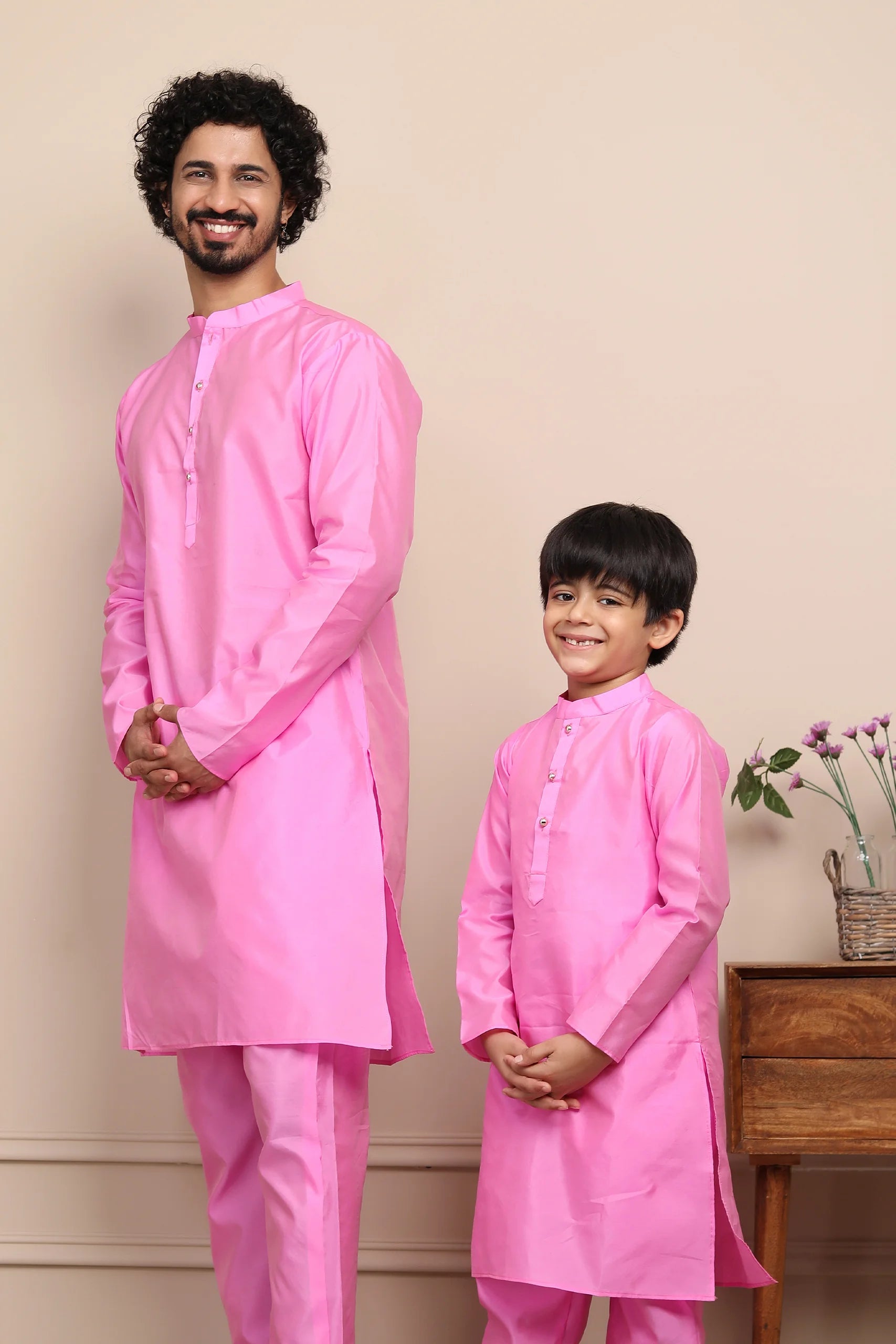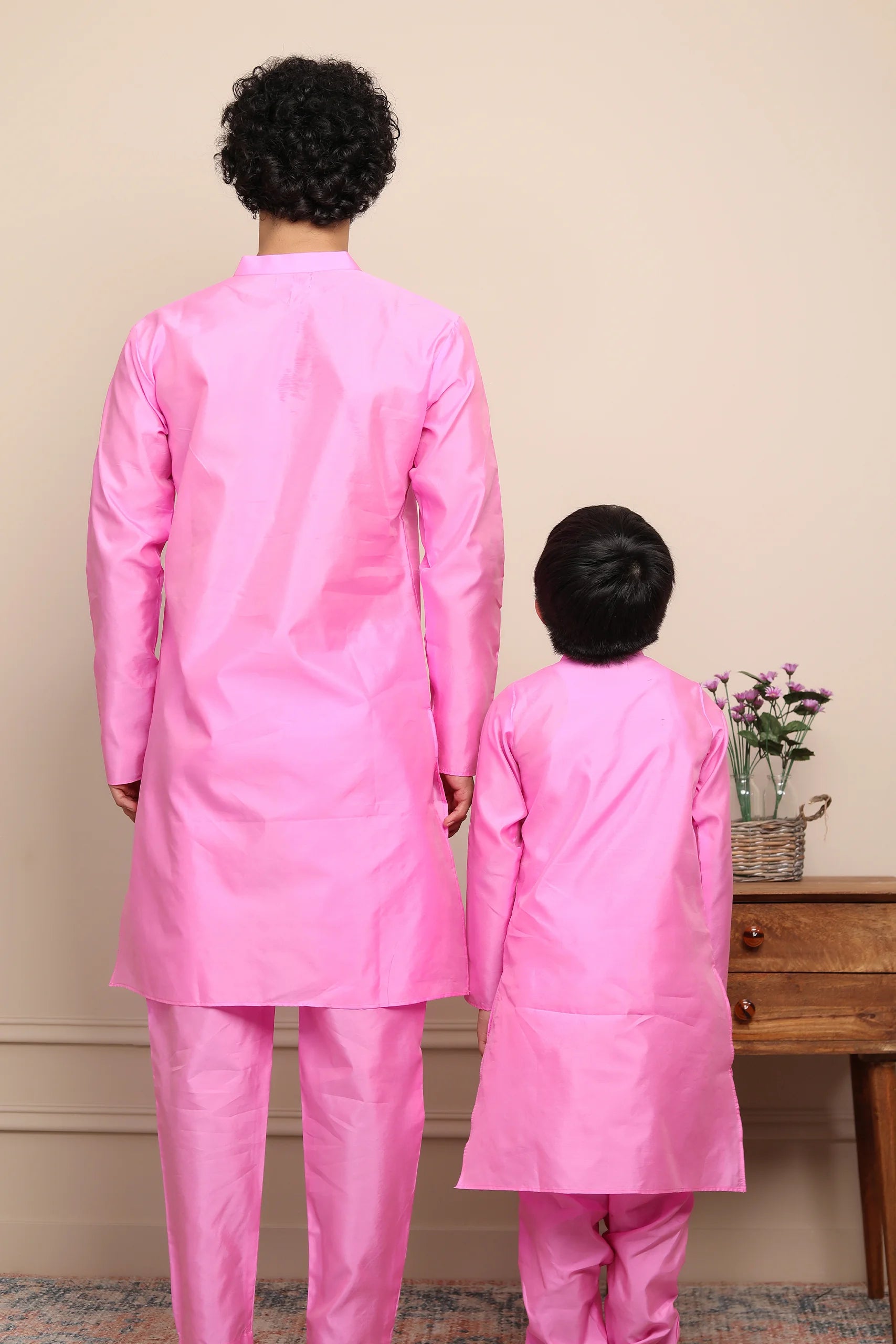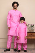 Ethnic Rouge Silk Kurta Pyjama Father & Son Set