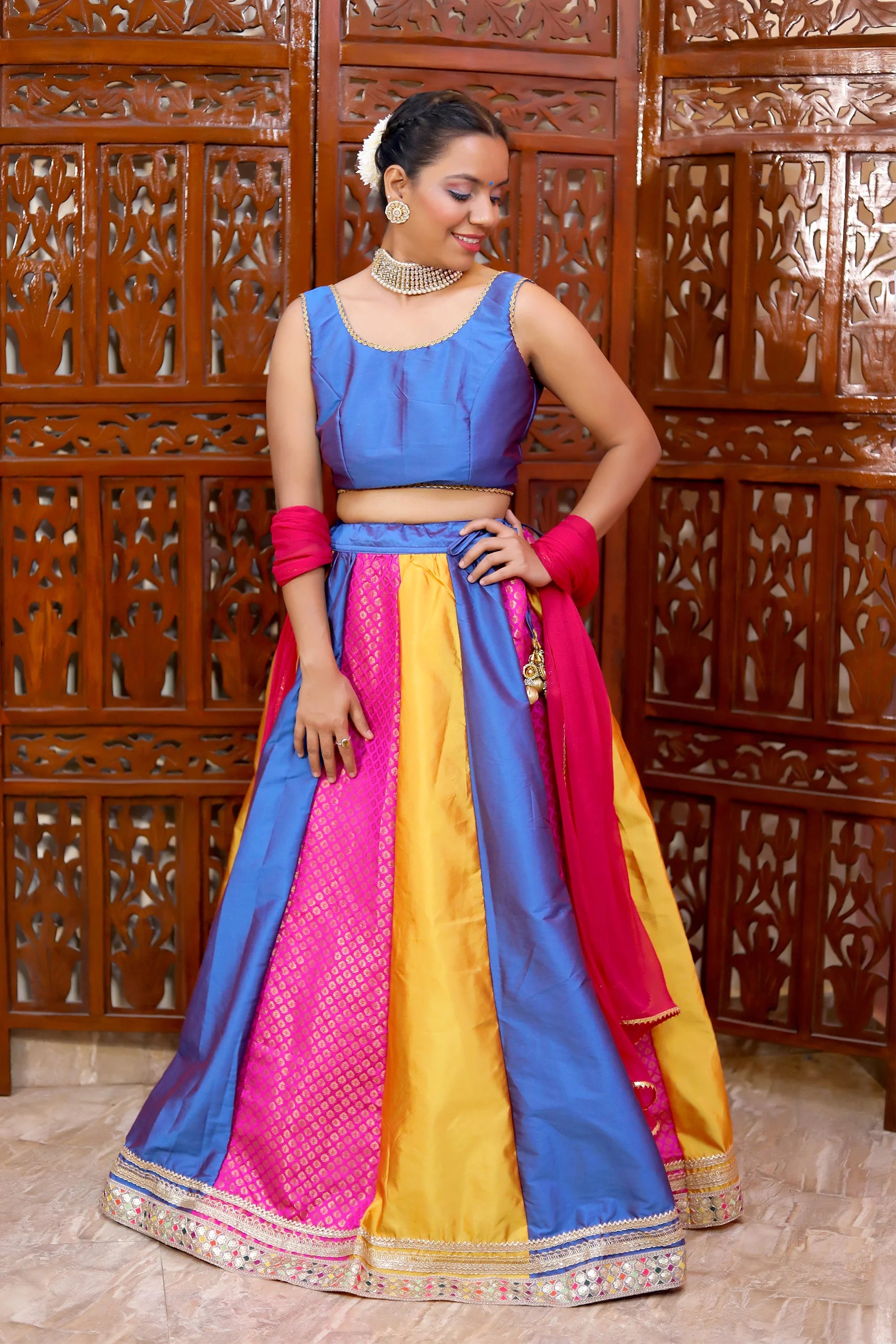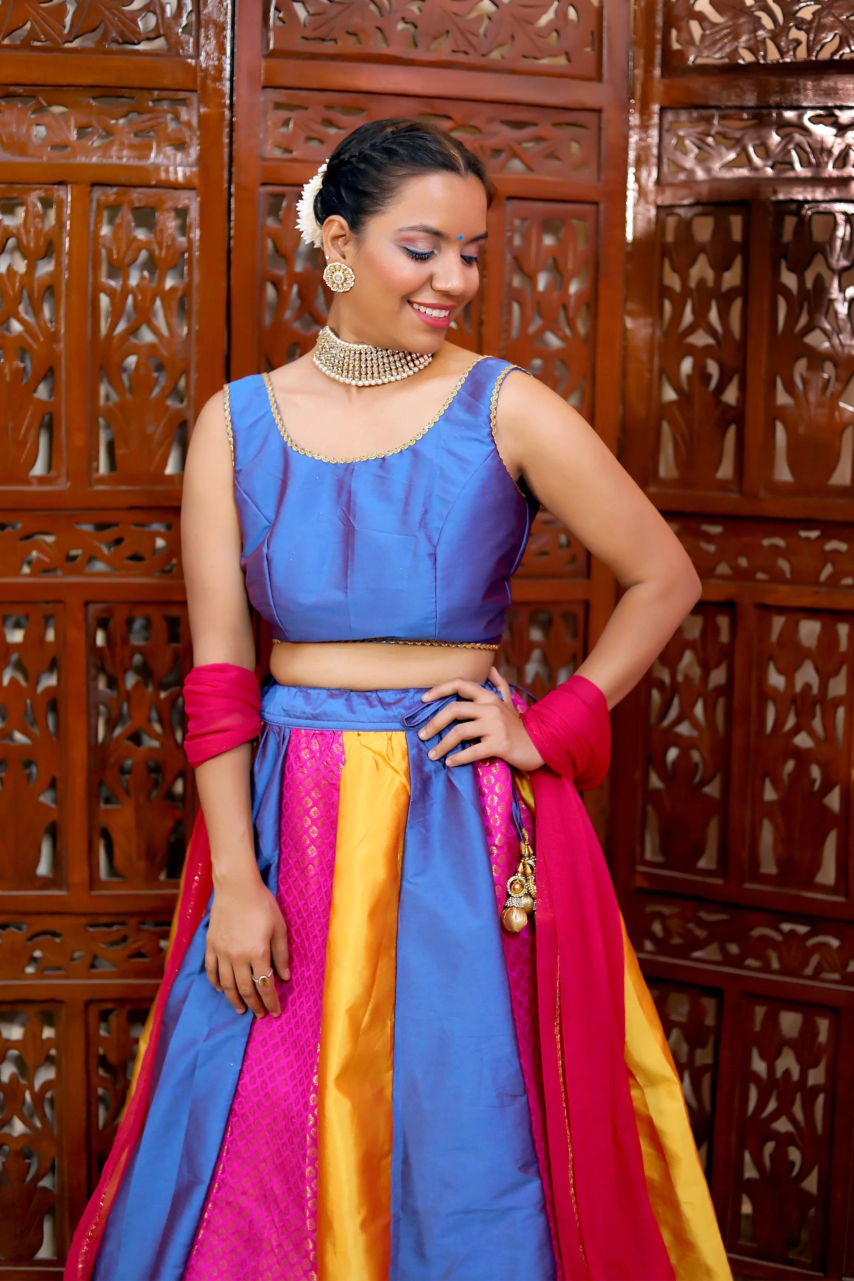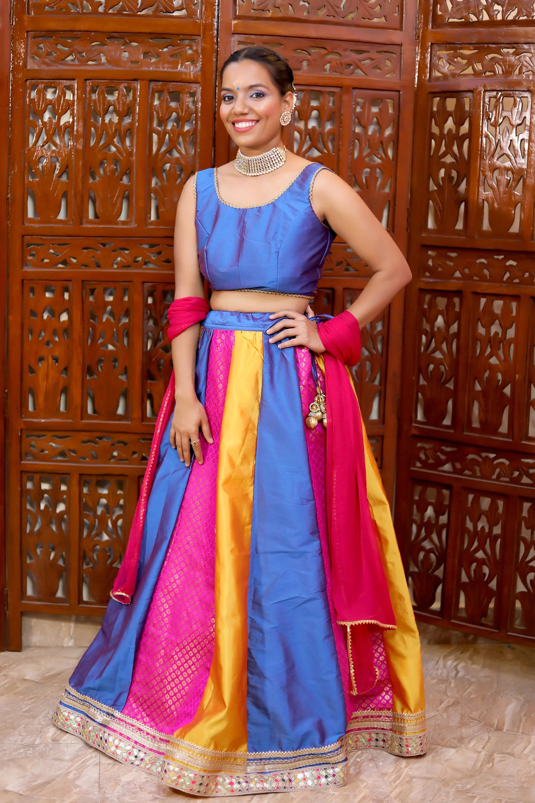 - Closure : Button (Choli), Elasticated waistband (Lehenga)