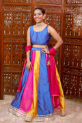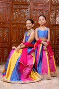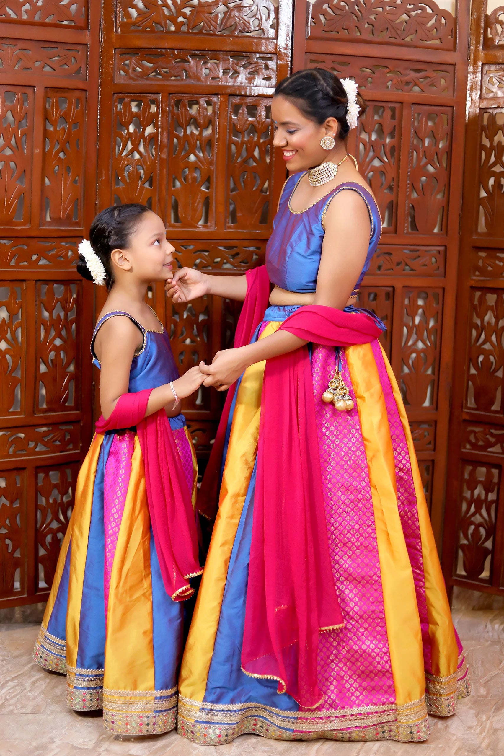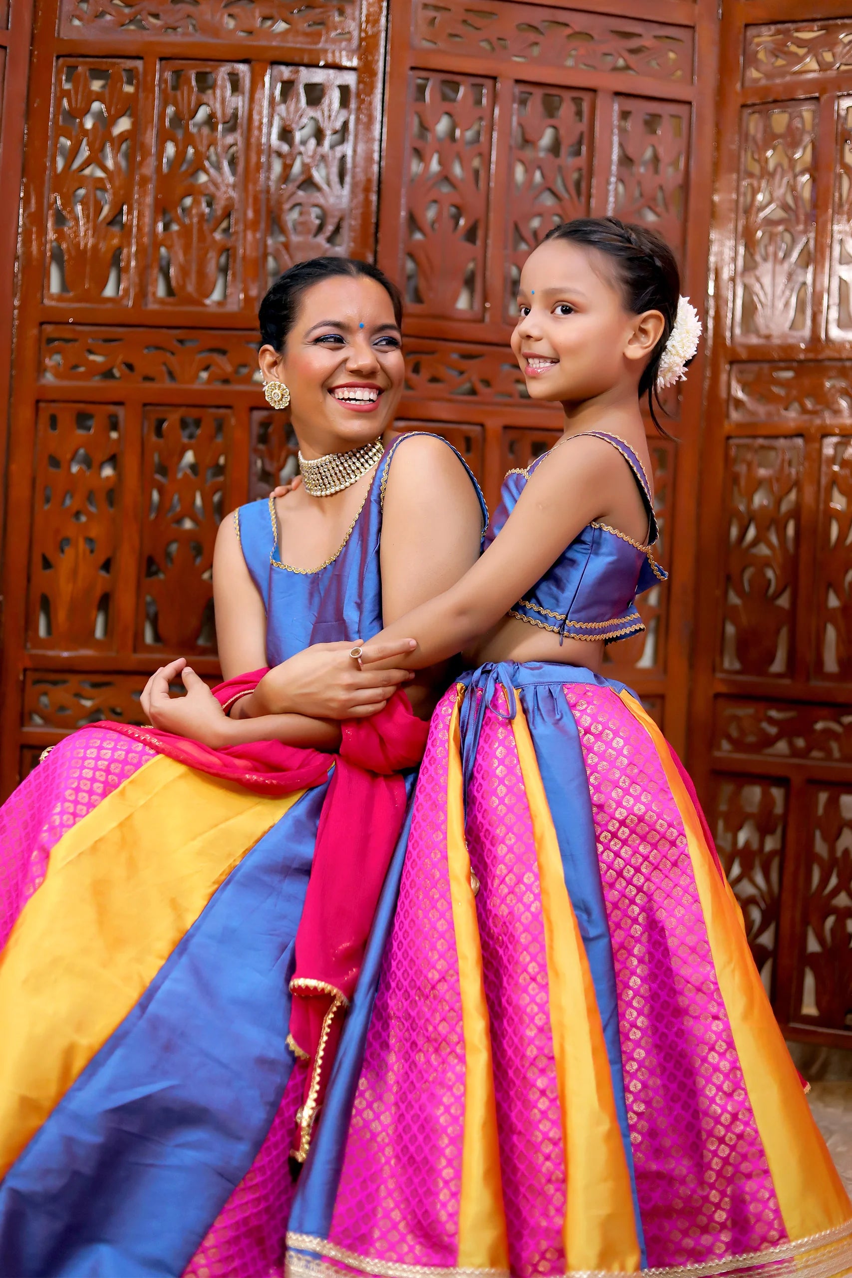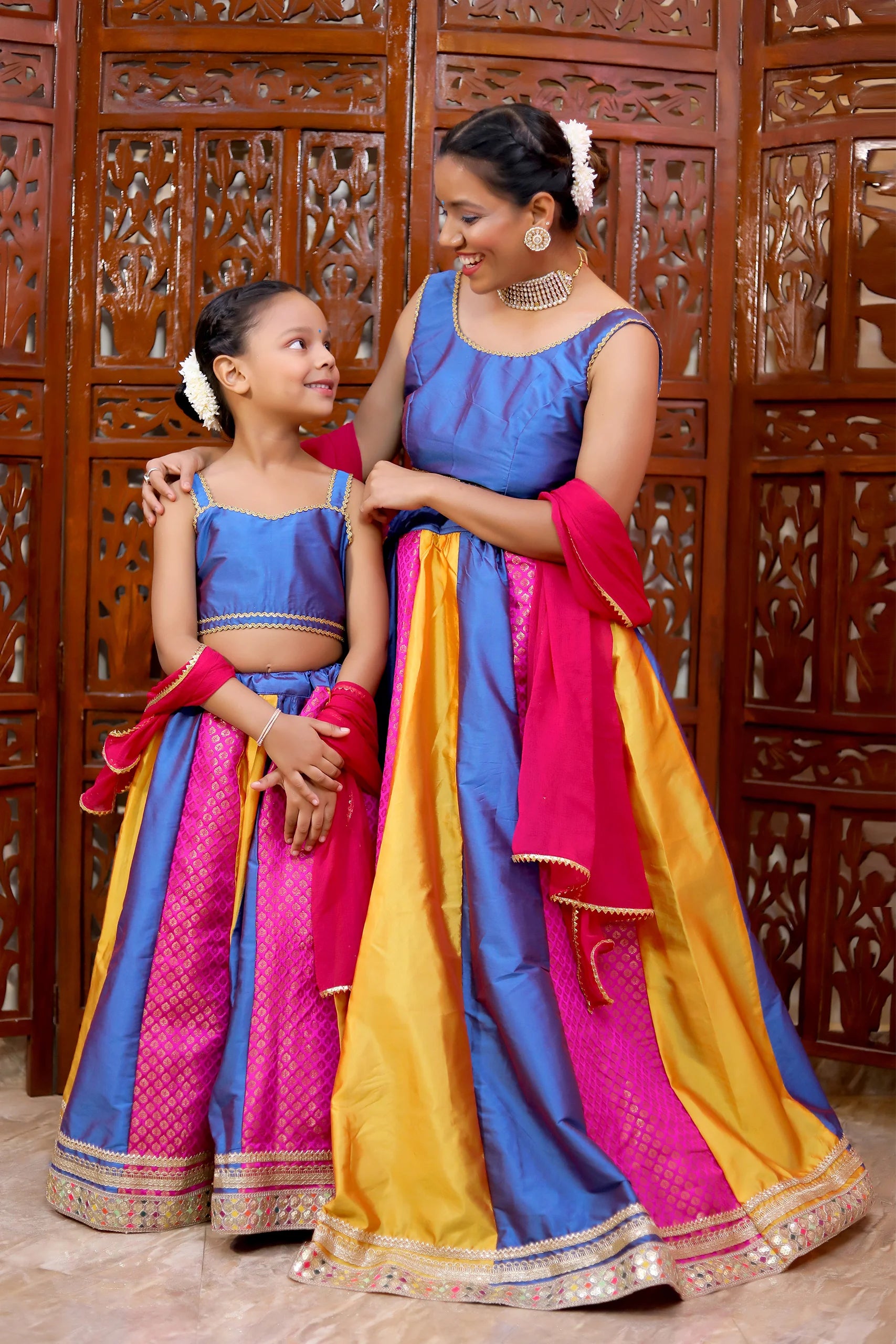Traditional Blue and Multicolor Lehenga With Choli Set With Matching Dupatta Mom and Daughter Twin Set