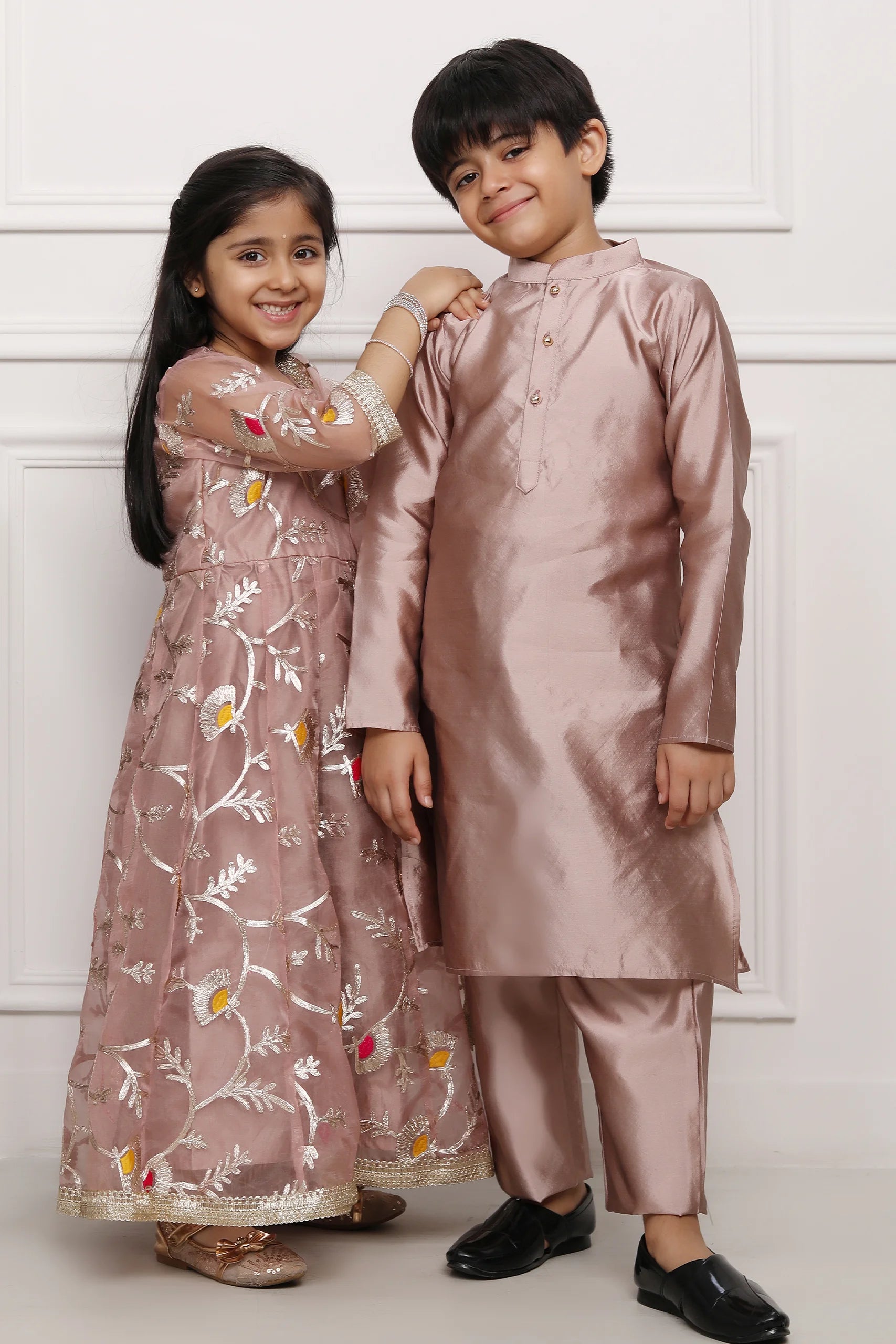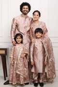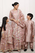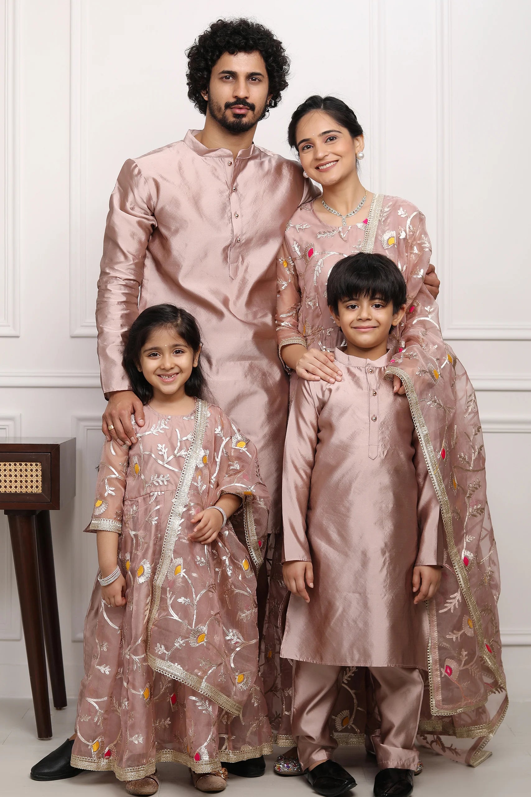 Ethnic Beige Gota Patti Gown with Matching Kurta Pyjama Family Set