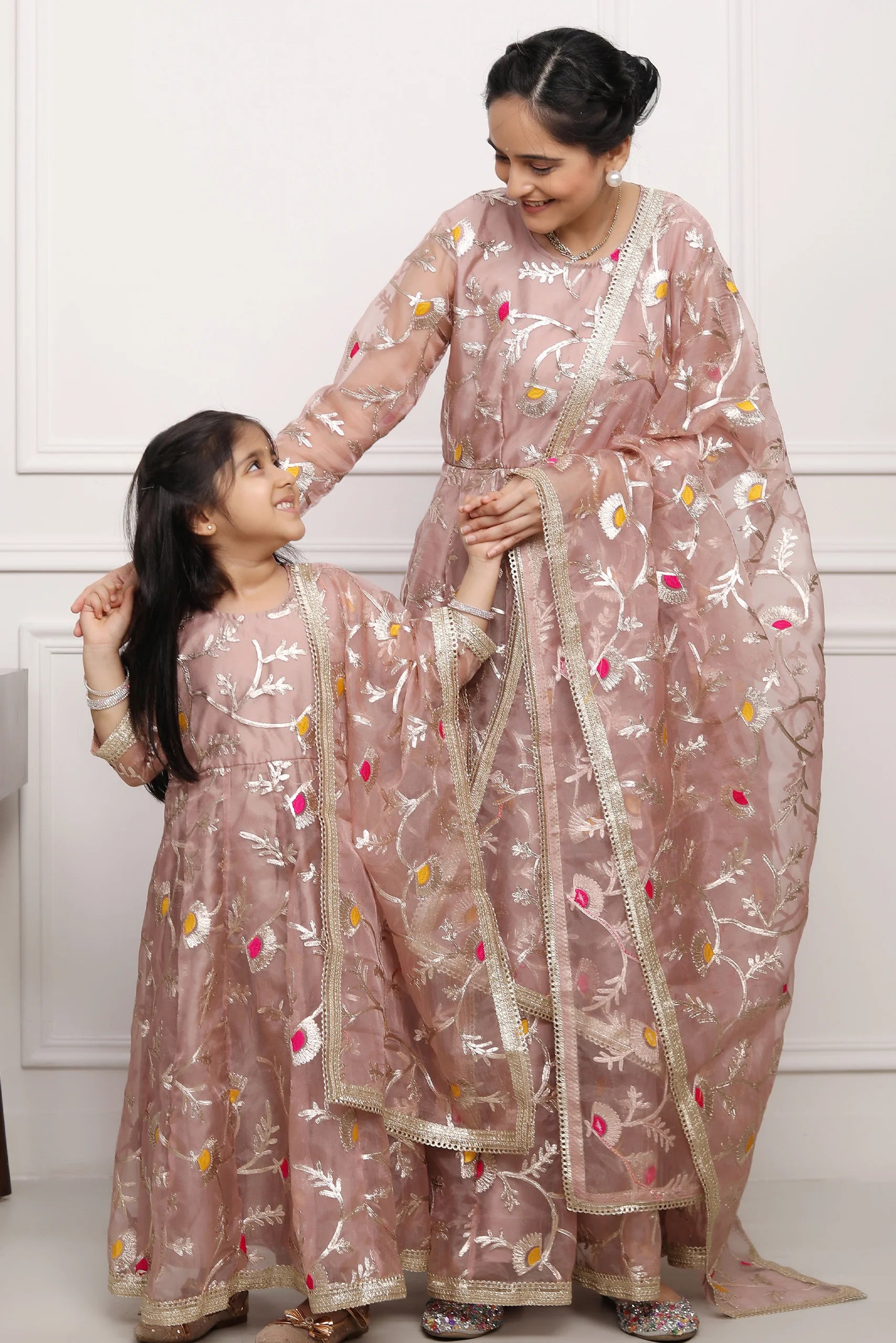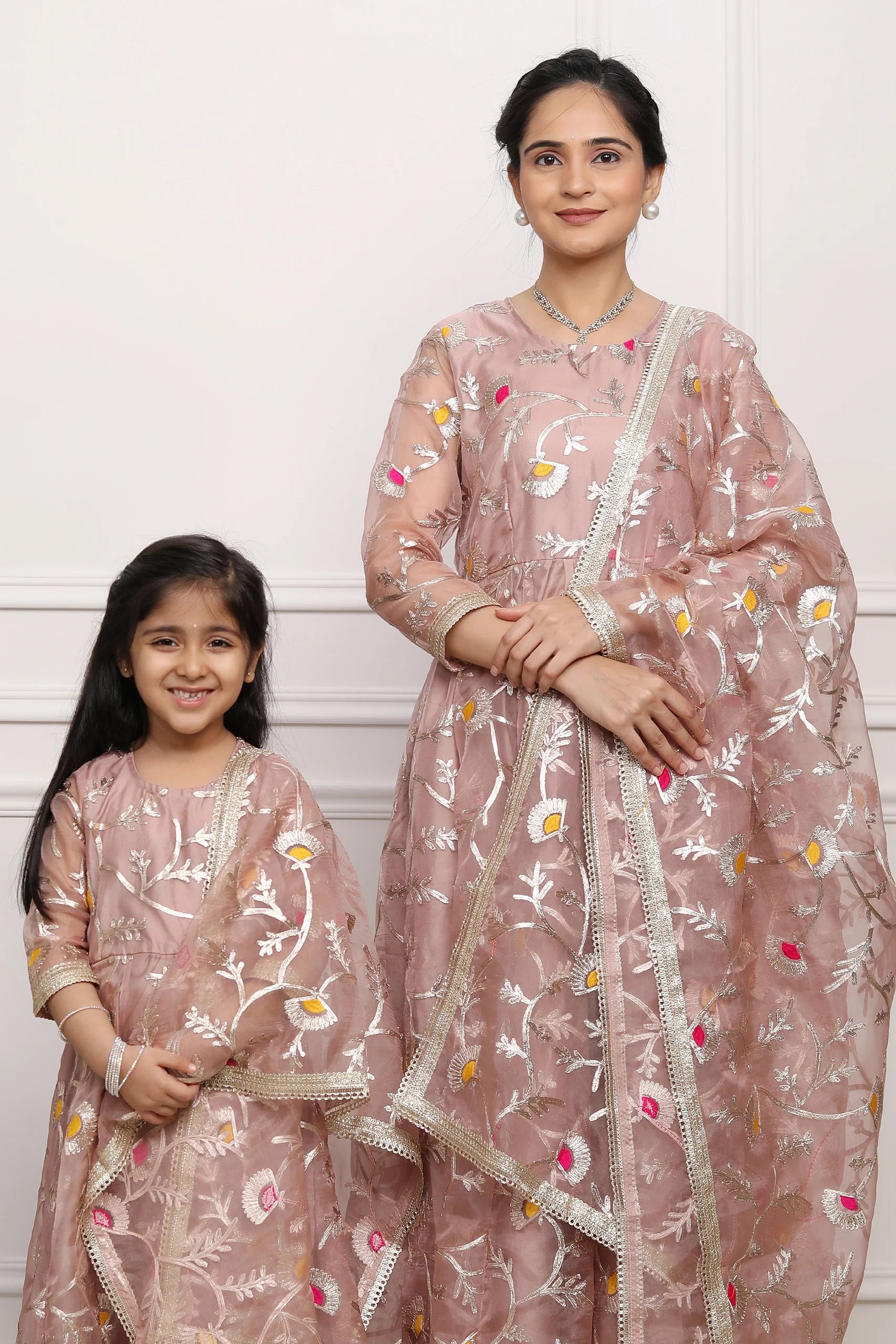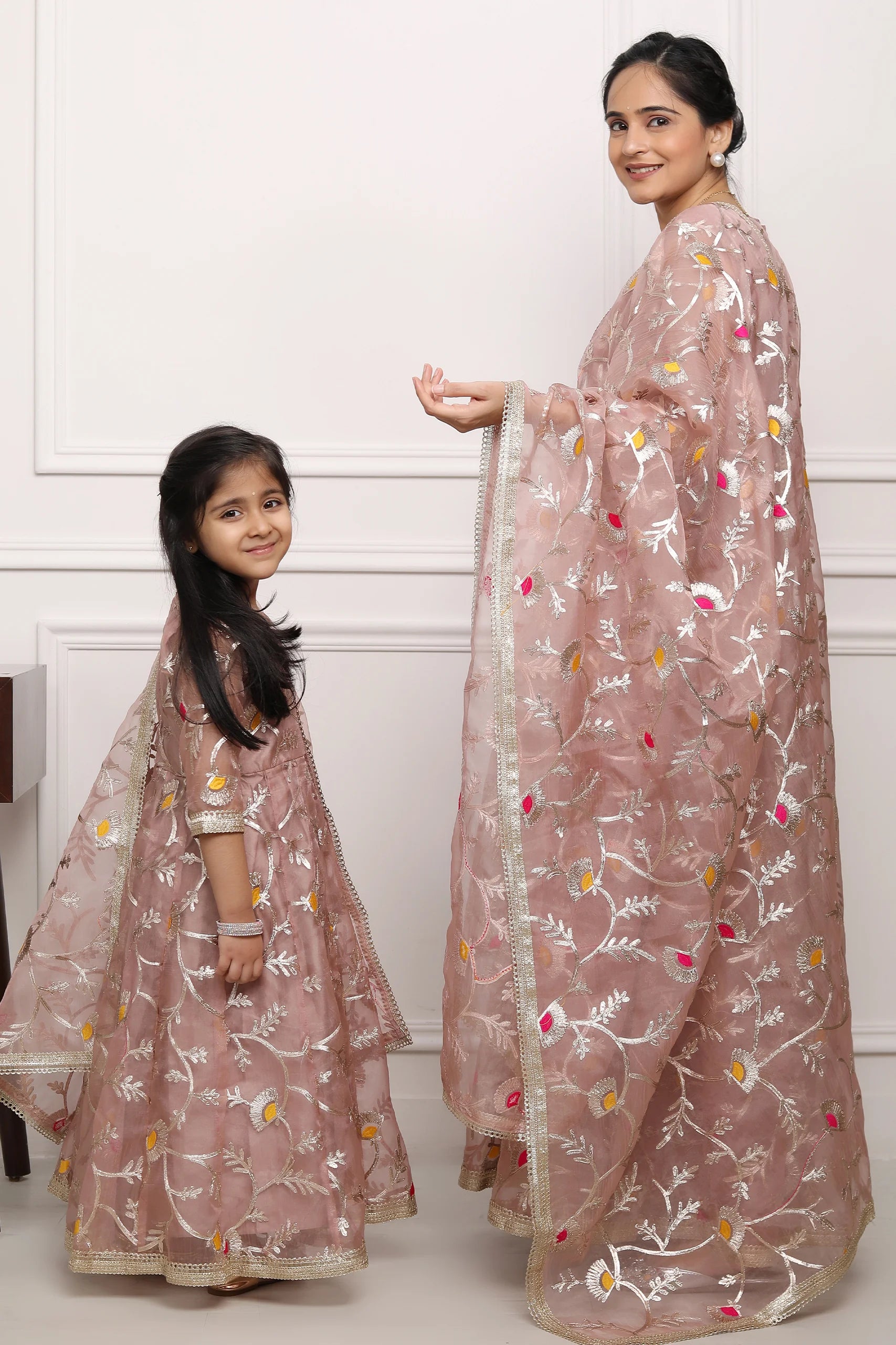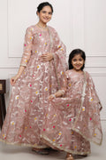 Ethnic Beige Gota Patti Gown : Mom & Daughter Twin Set