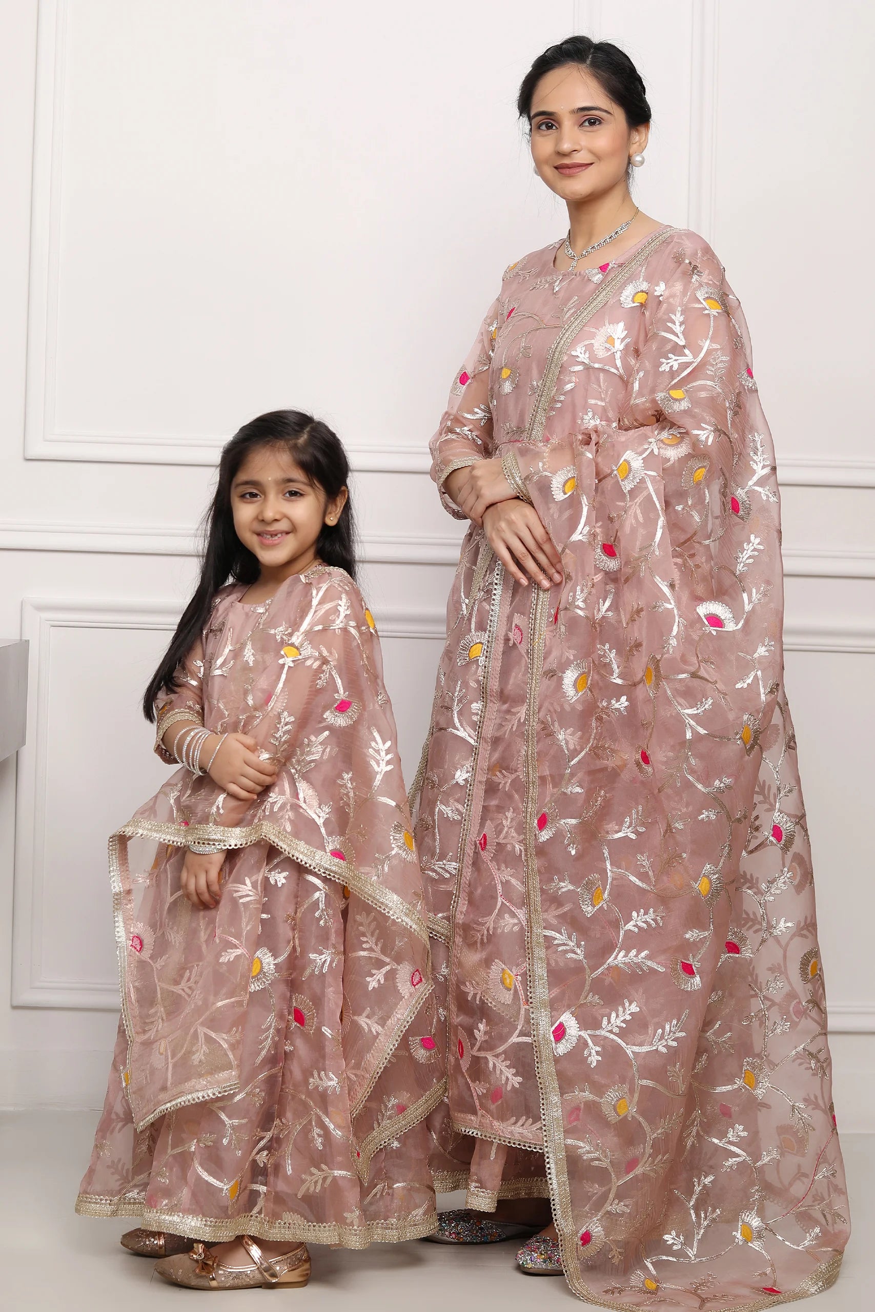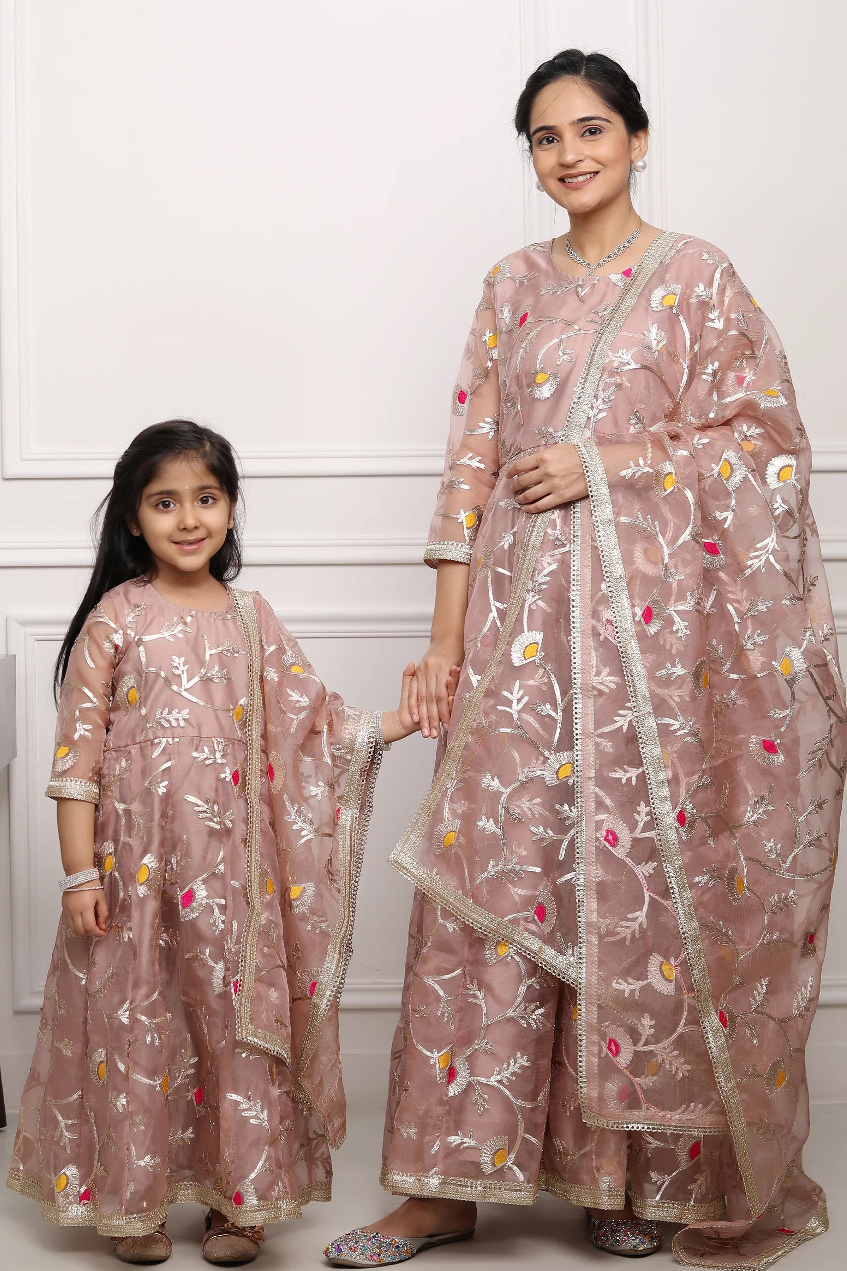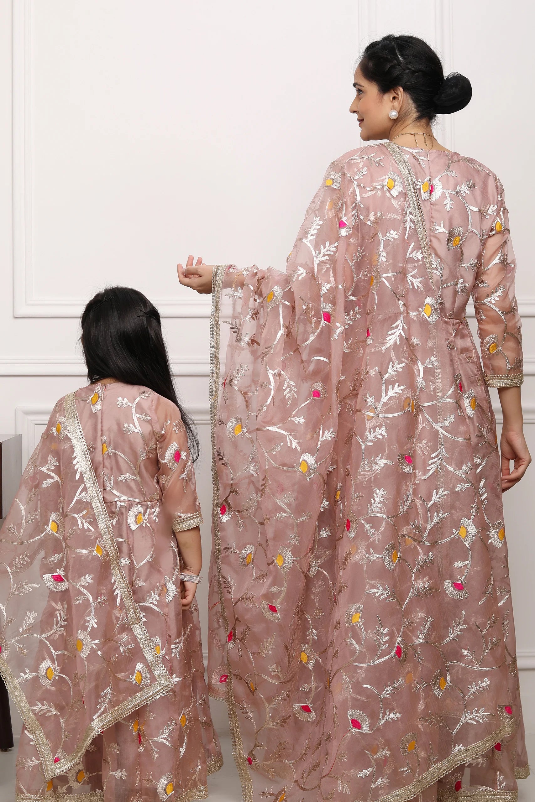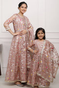 Ethnic Beige Gota Patti Gown : Mom & Daughter Twin Set