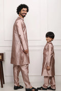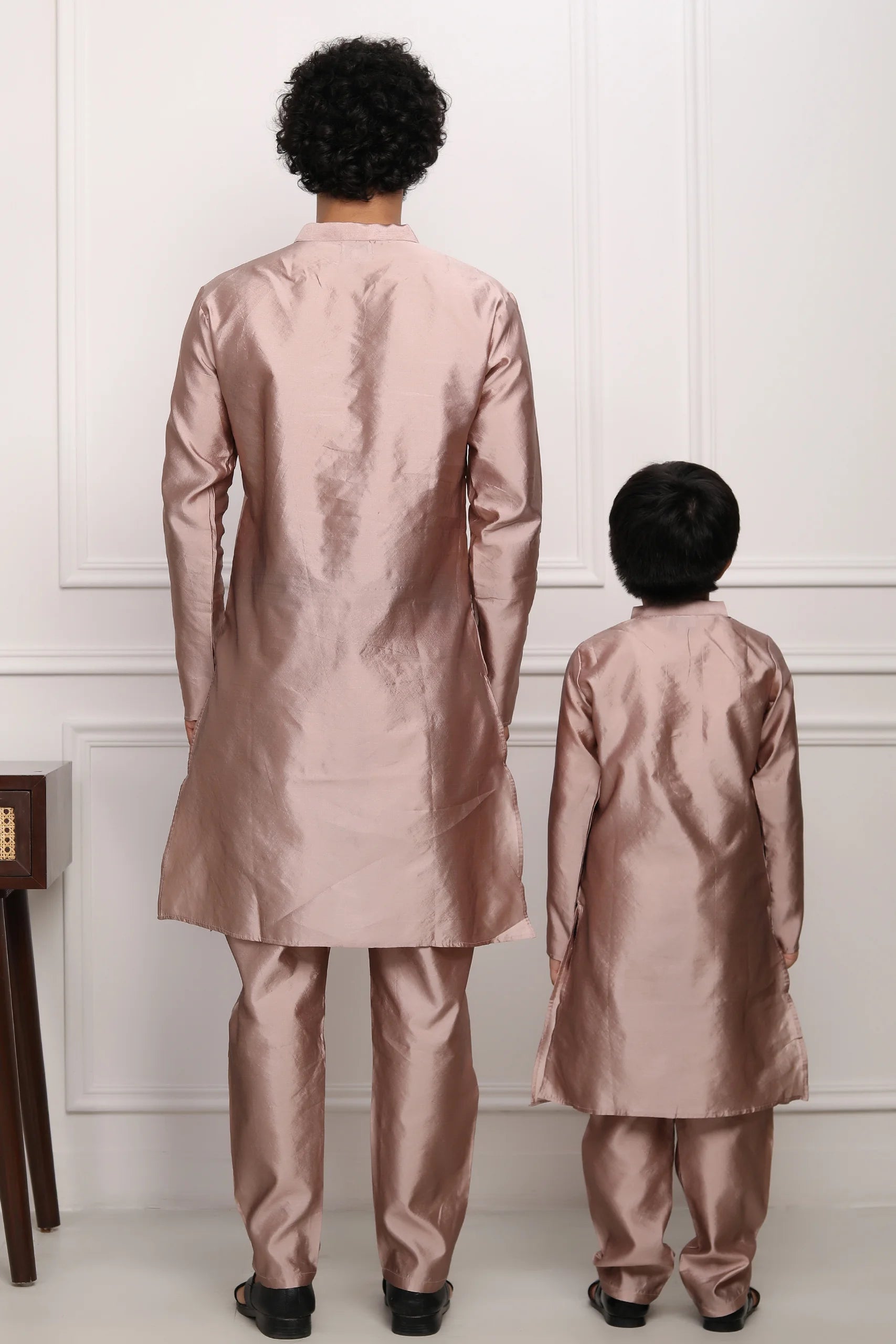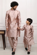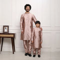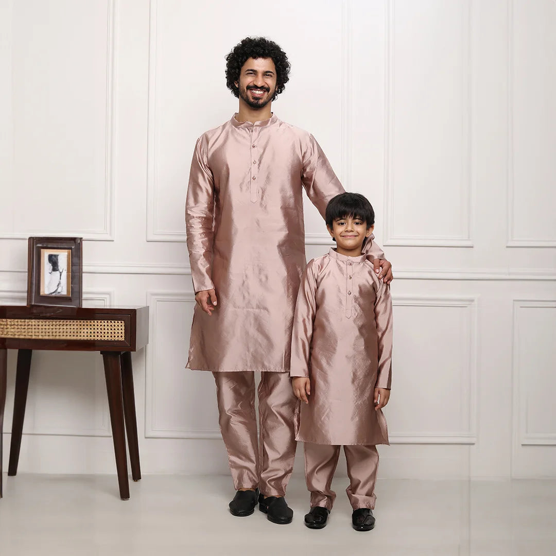 Exquisite Beige Silk Kurta Pyjama Father And Son Twin Set