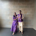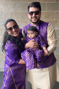 Exquisite Brocade Purple Plazzo Suit and Matching Kurta Pyjama with Jacket ( Family Twin Set )