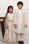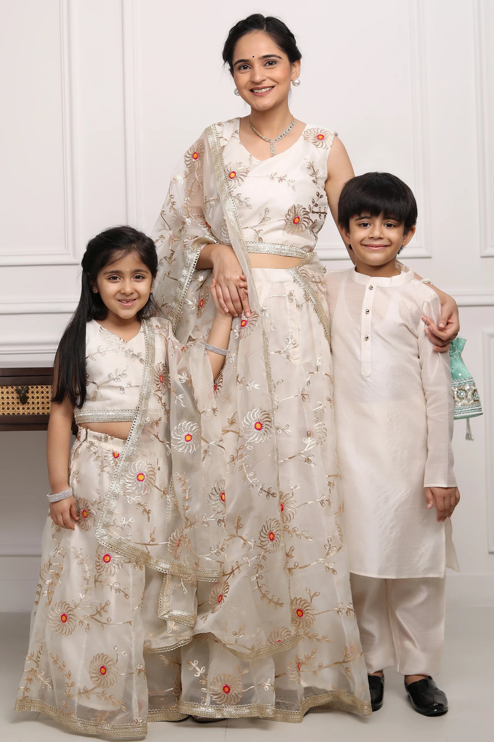 Ivory Gota Patti Lehenga Choli With Matching Kurta Pyjama Family Ensemble