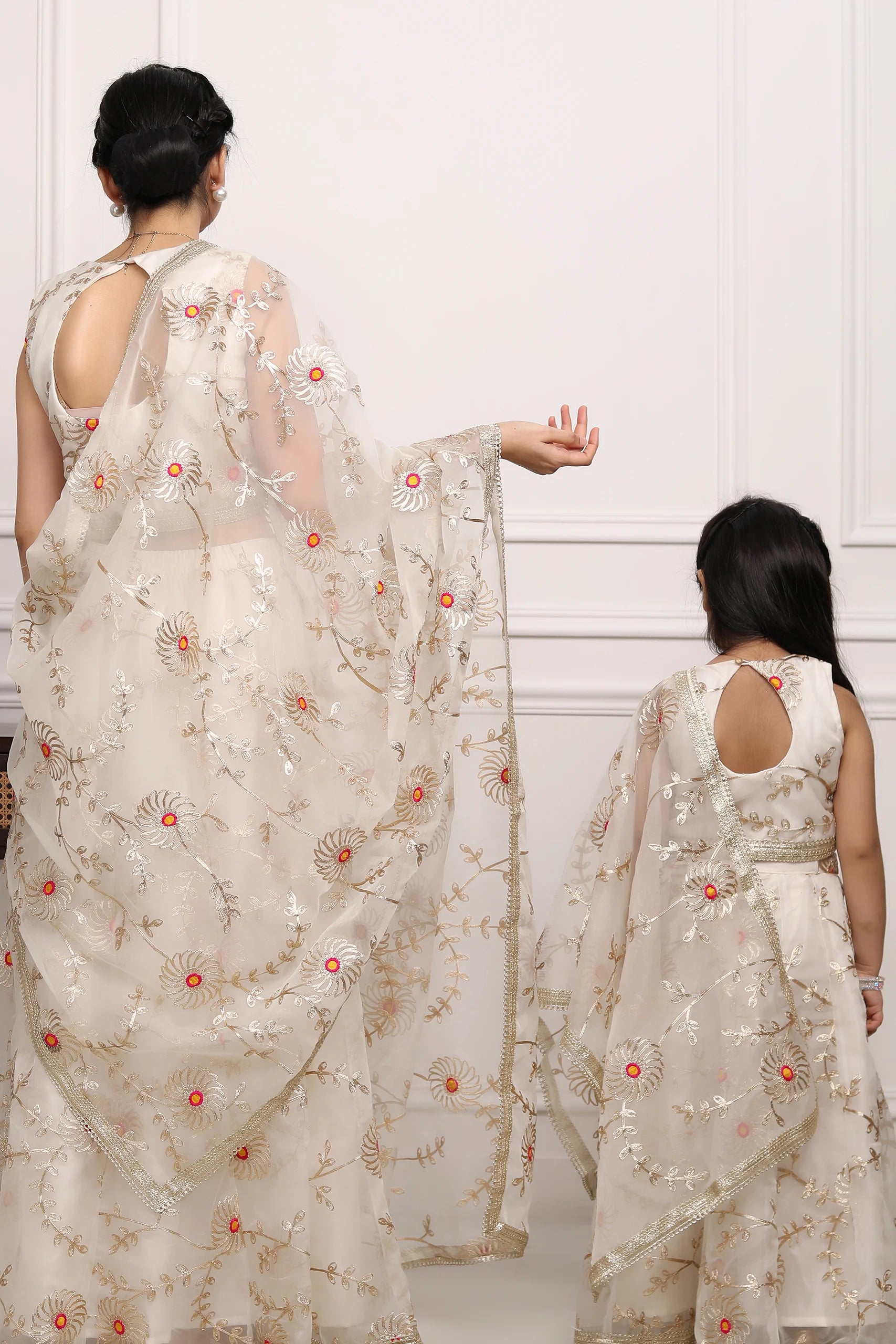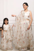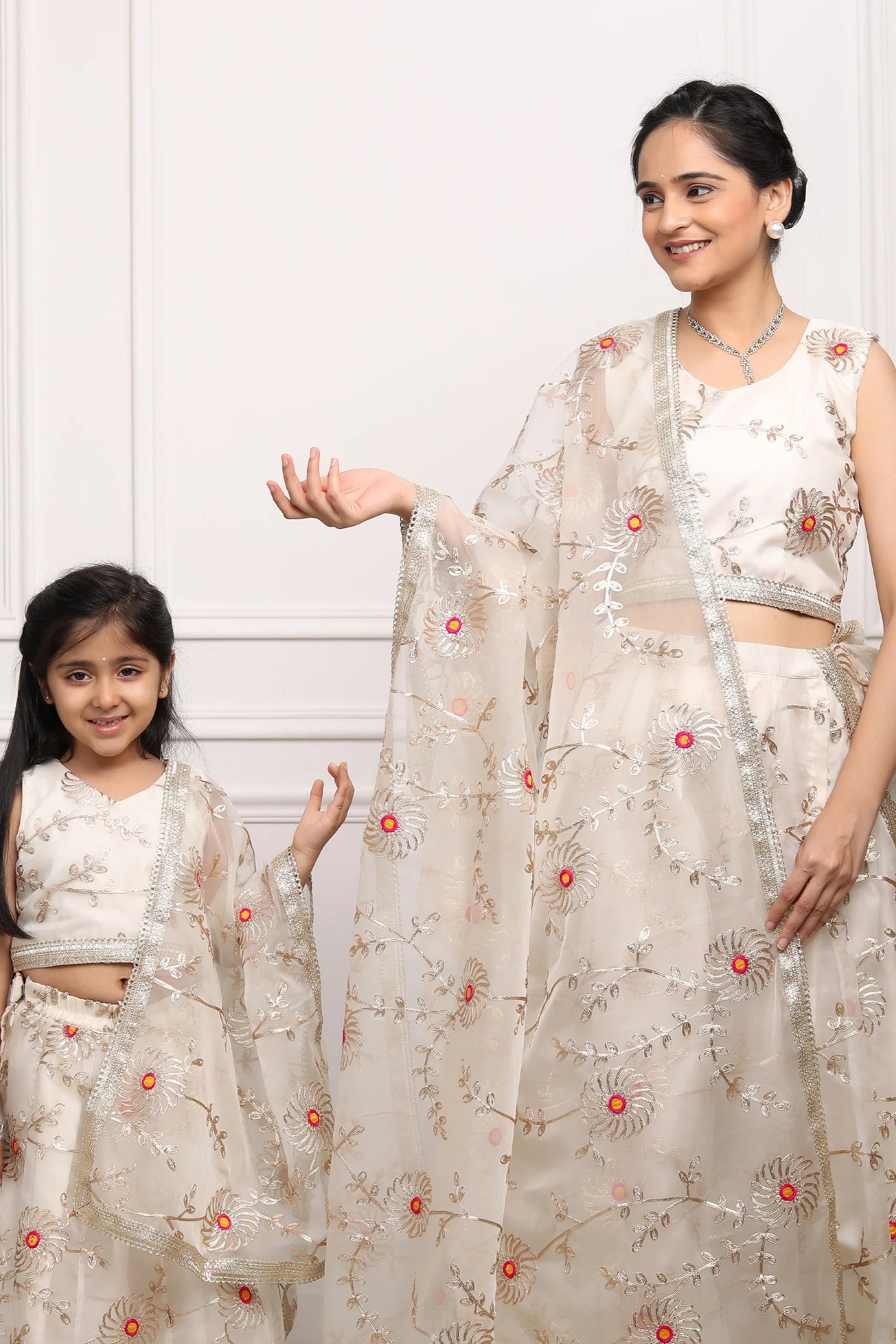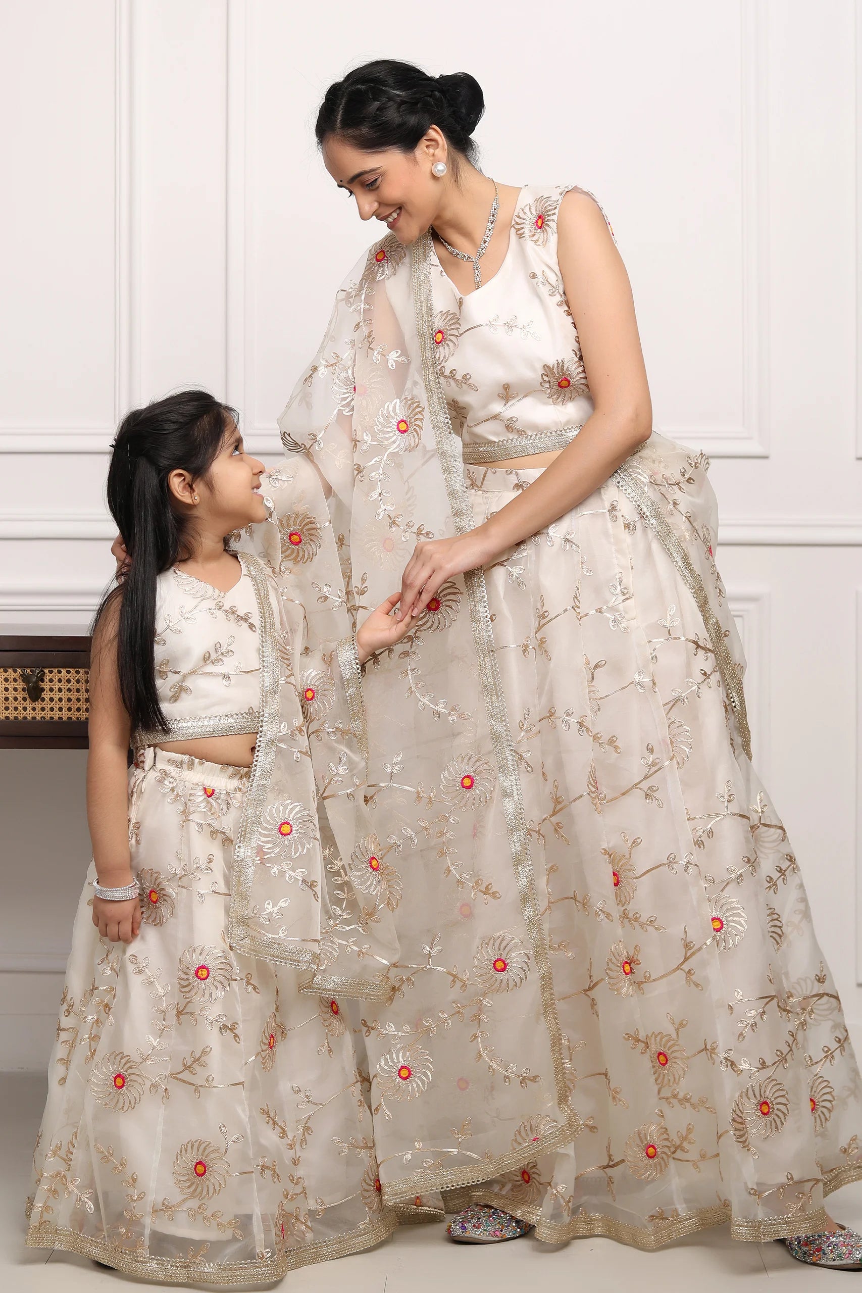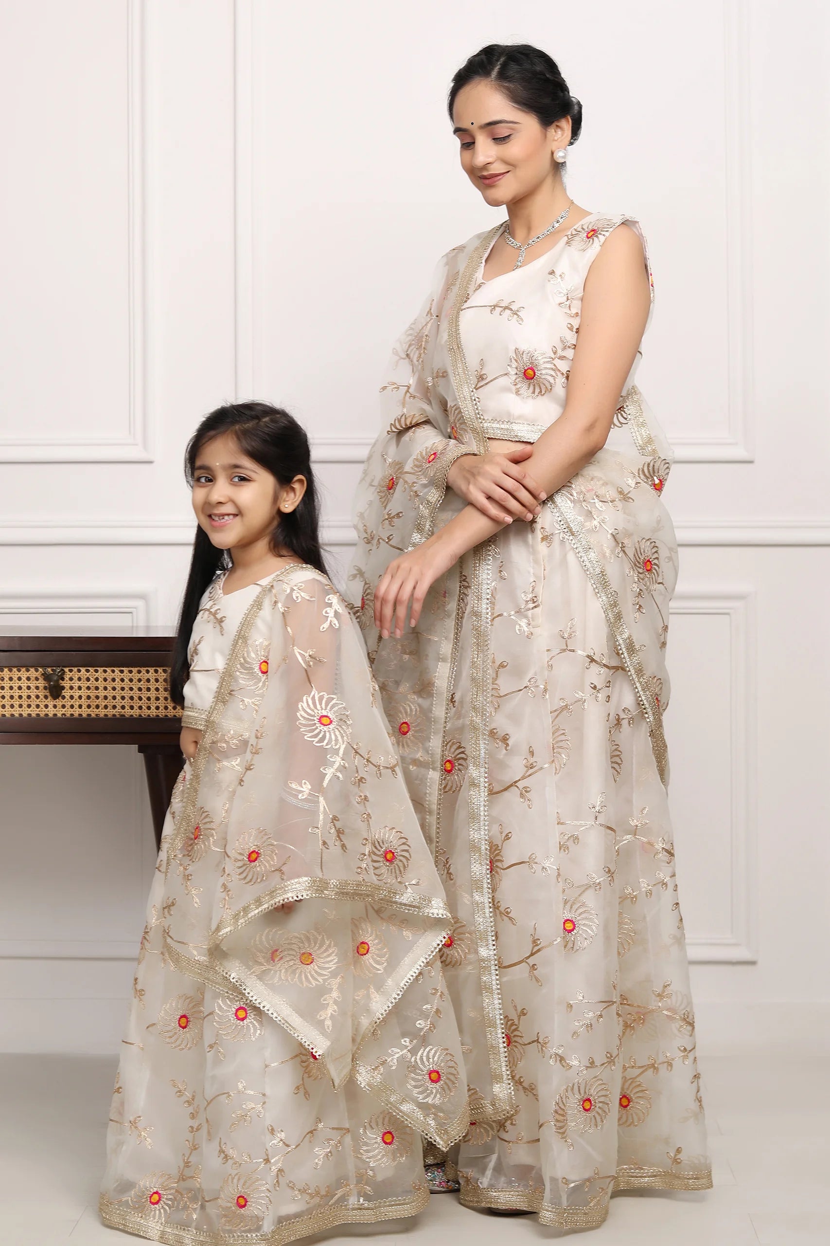 Ivory Gota Patti Lehenga Choli Set for Mom and Daughter