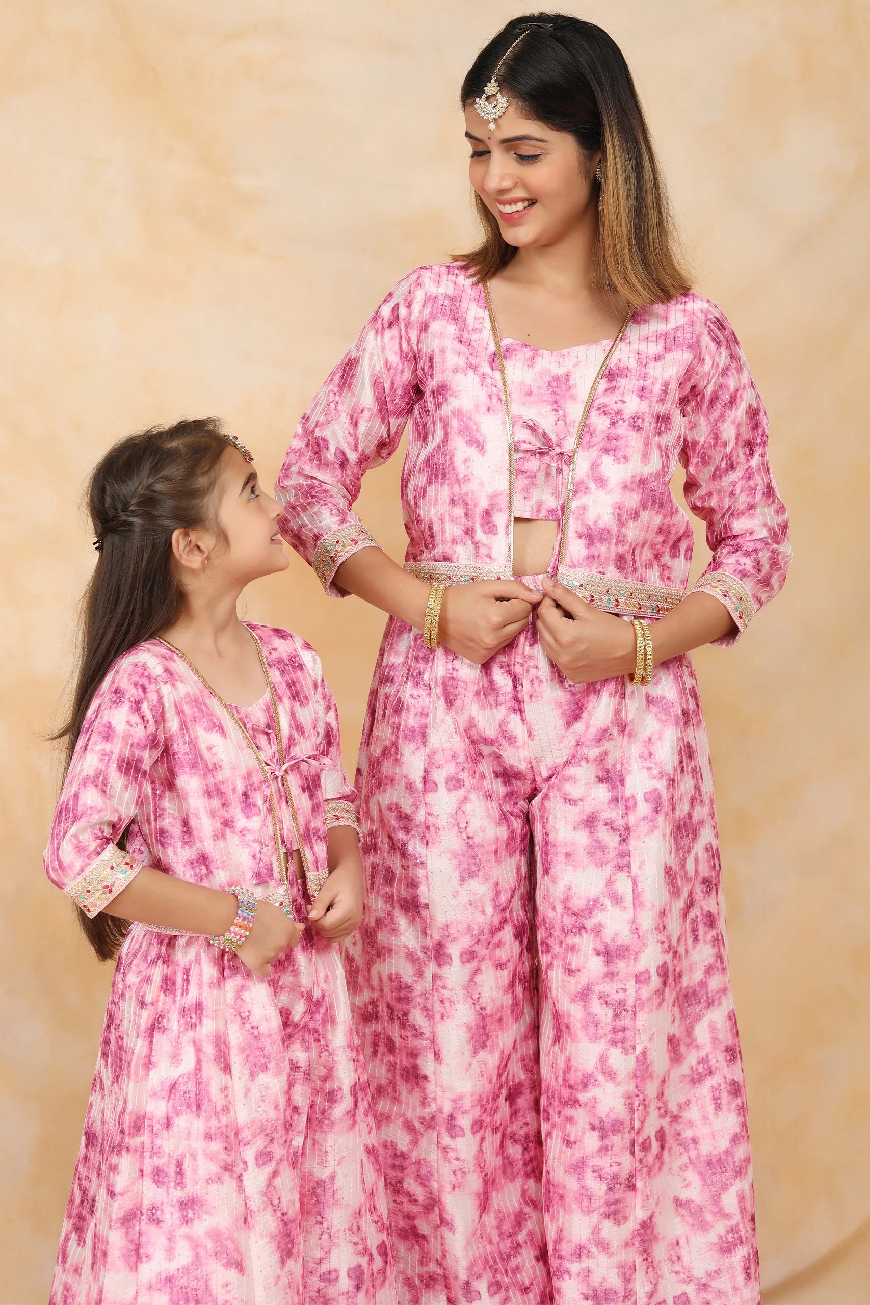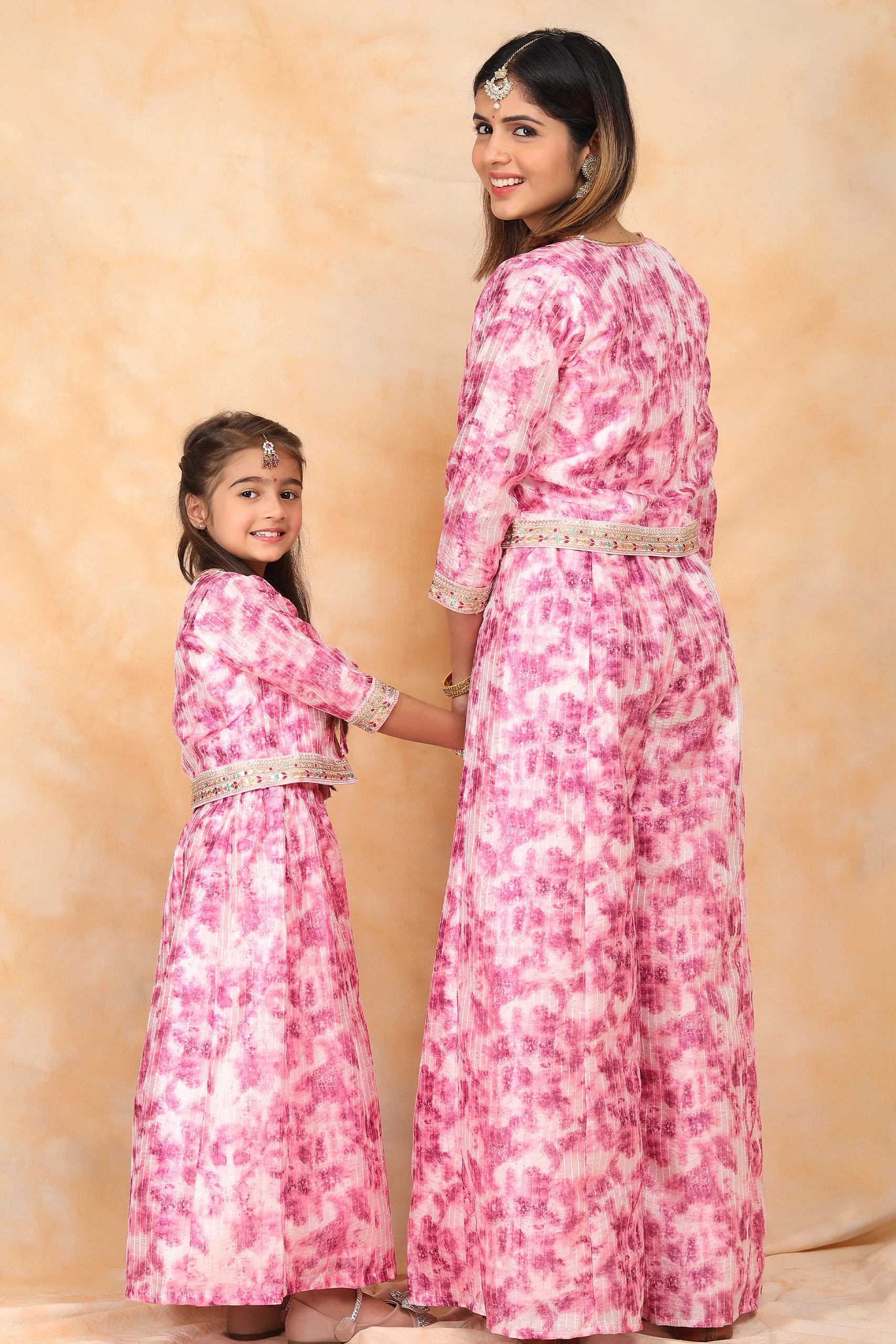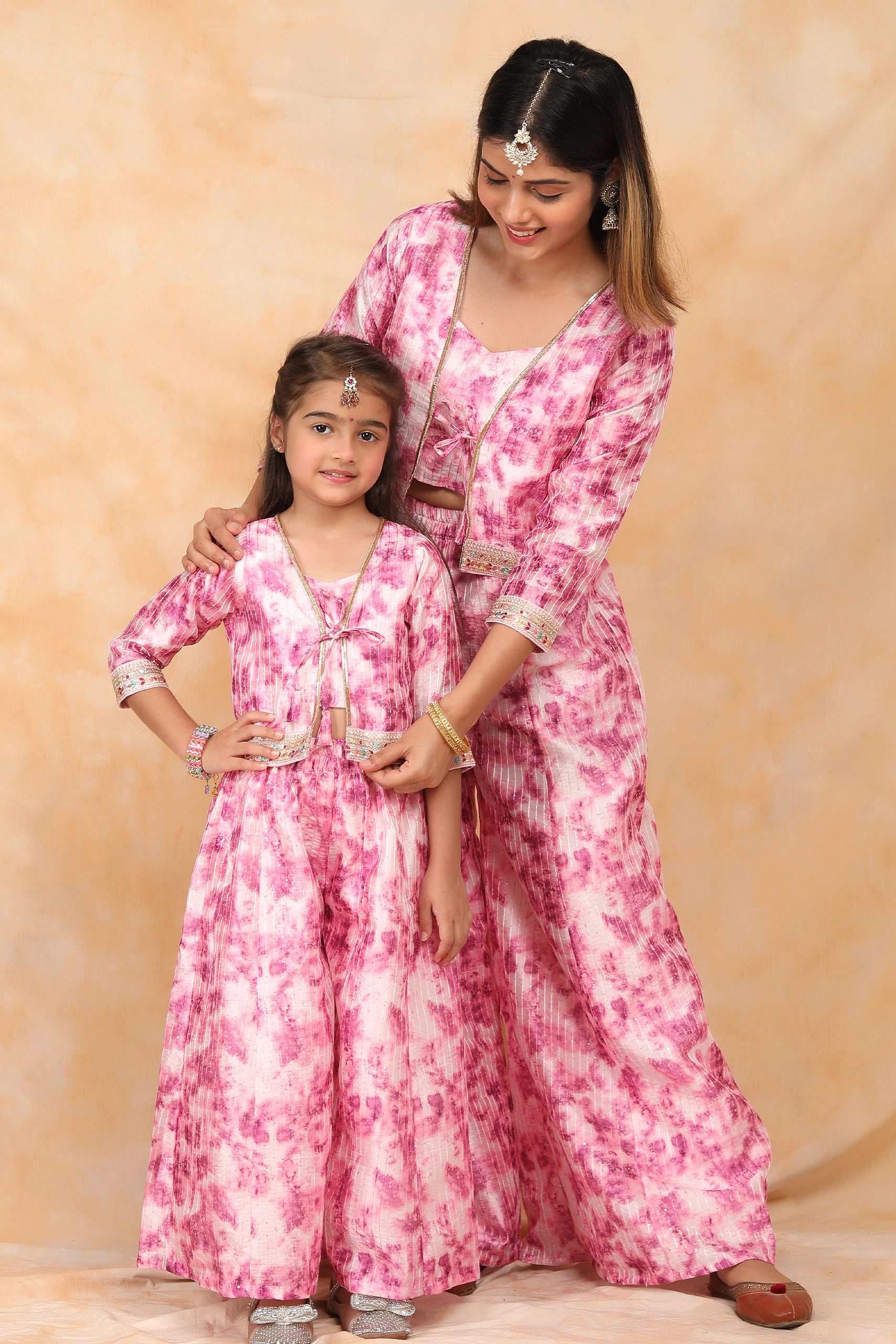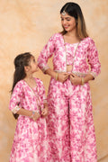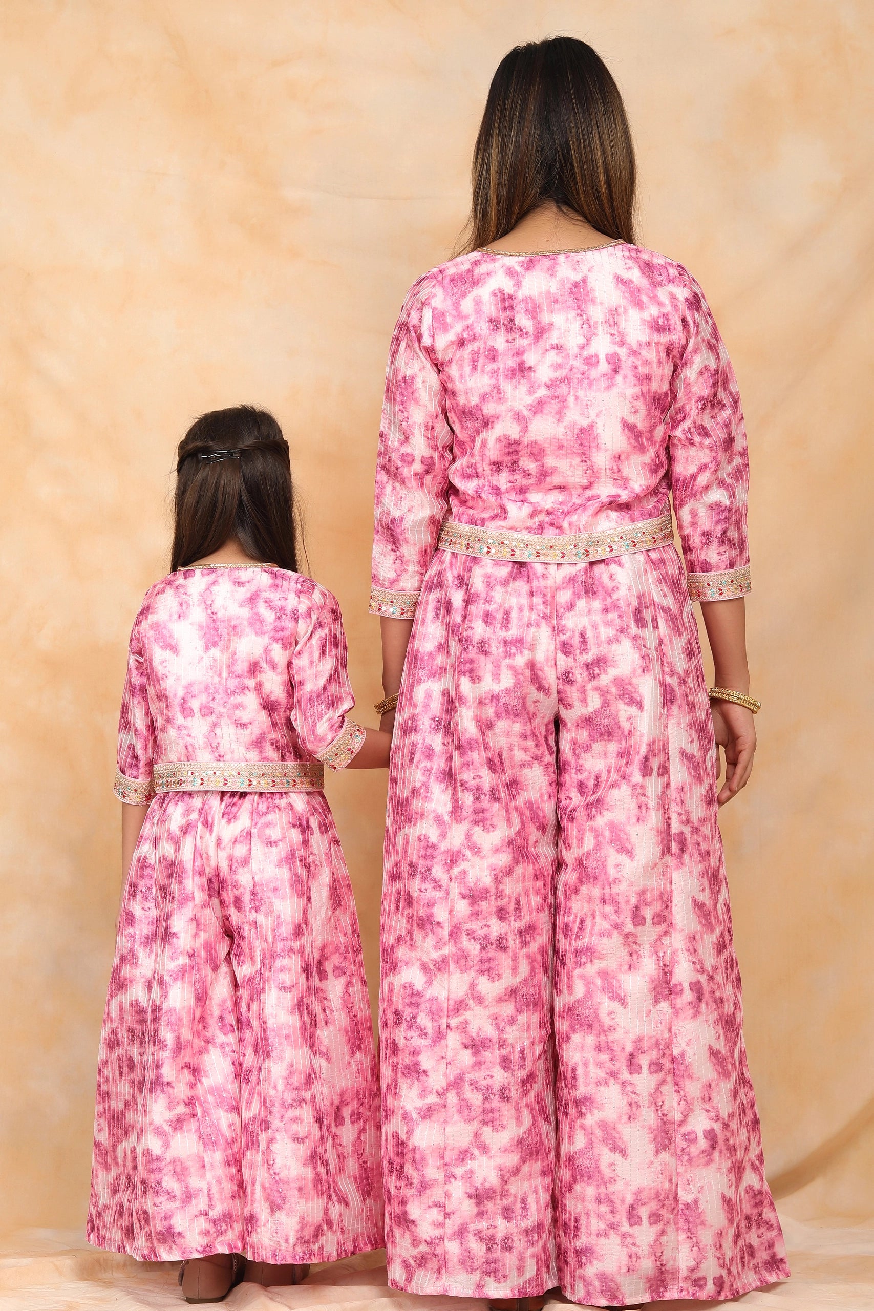 Floral Fuchsia Fiesta: Coordinated Crop Top and Palazzo Set for Stylish Mom and Daughter